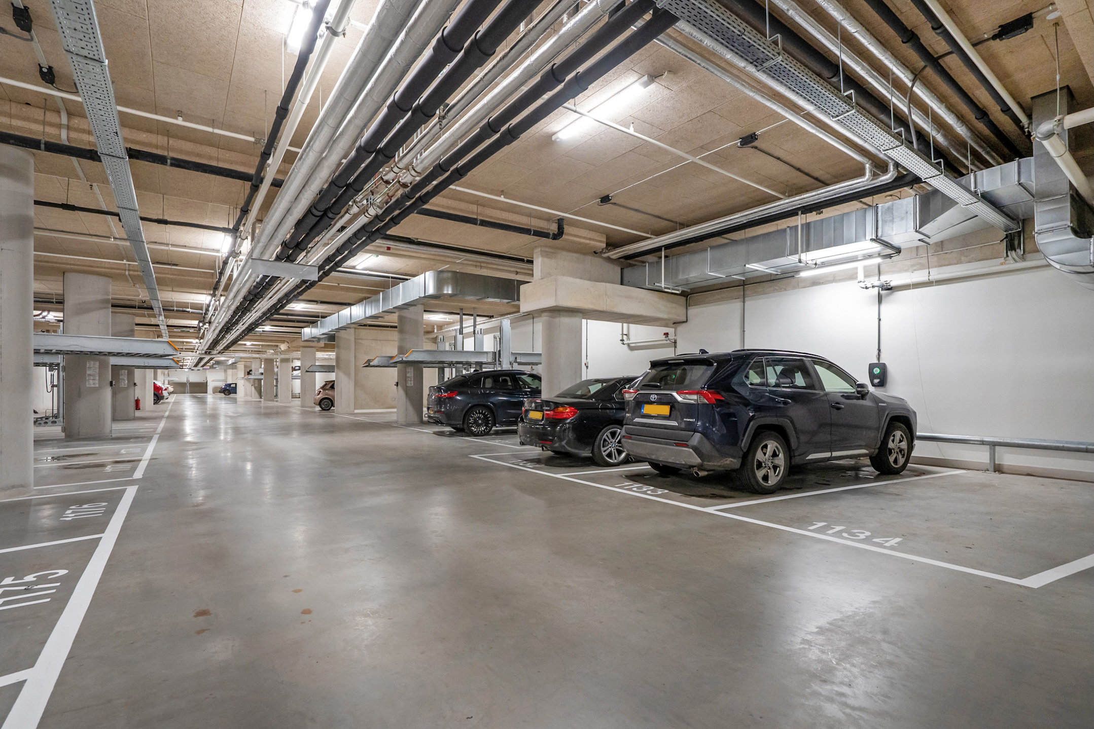 On the ground floor, you will find the well-maintained communal bicycle storage and a private parking space in the covered parking garage.