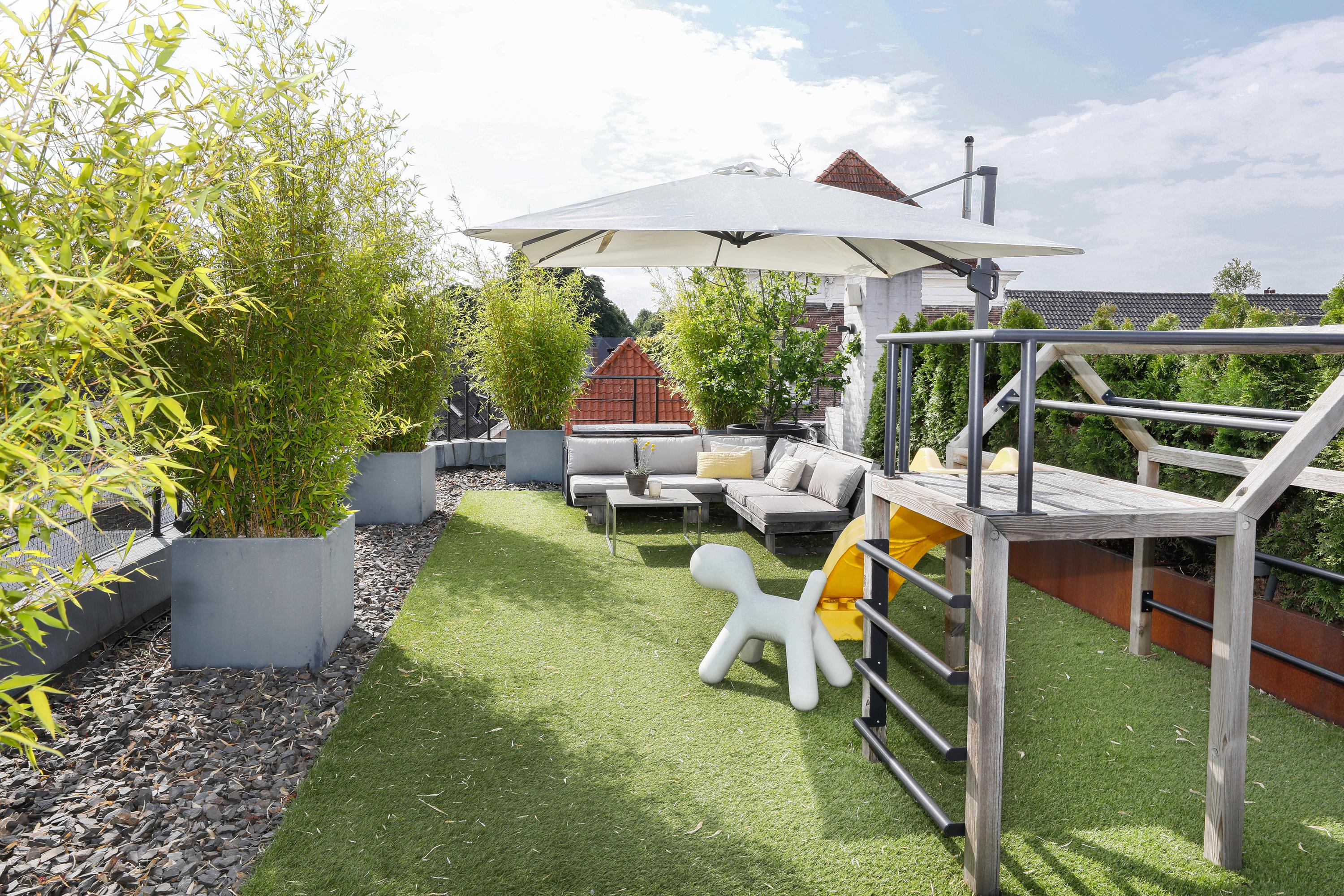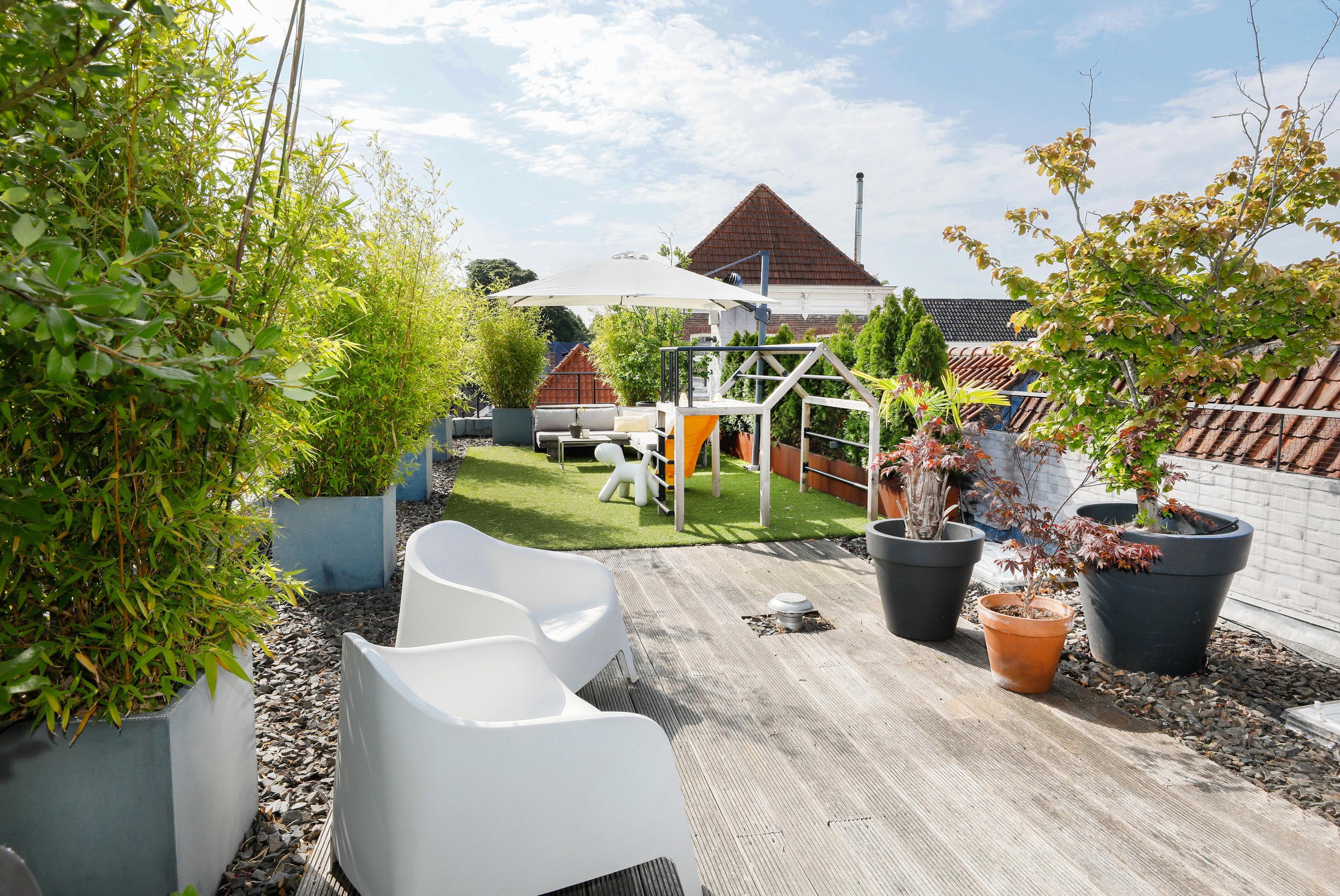 You've probably noticed this unique building while strolling along Vughterstraat. You've probably also gazed in amazement at this enormous roof terrace. On "the roof of the city," you'll find a roof garden of approximately 113 m². Not only from this terrace, but also from the apartment itself, there are expansive views and abundant natural light. In addition to the large living room with open-plan kitchen, there are four bedrooms and, of course, a luxurious bathroom. Stepping out of the front door, you enter your own hallway, which easily accommodates four bicycles. A fully equipped, tasteful, and spacious apartment, complete with that exceptional roof terrace.