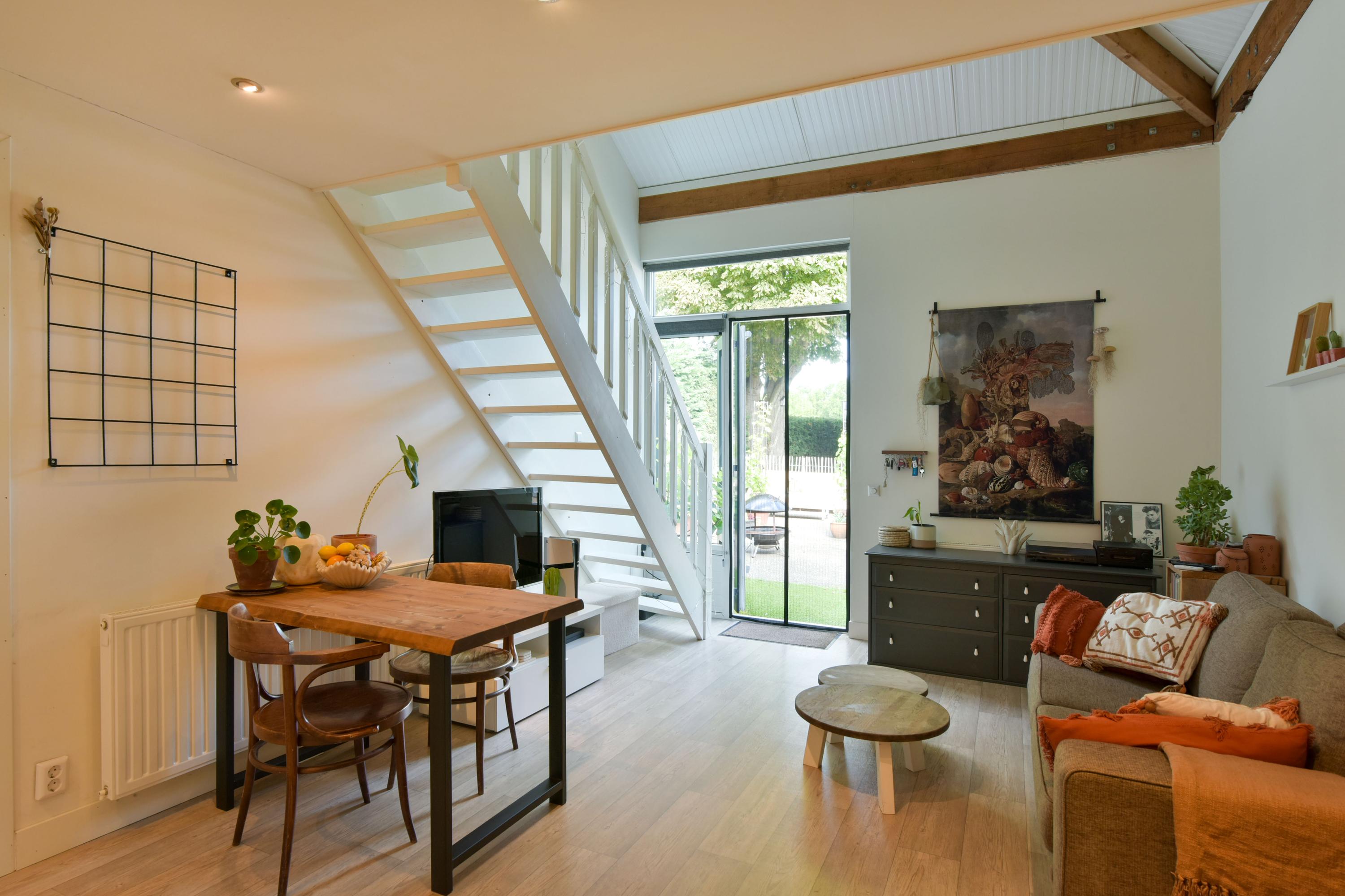 The former hay barn accommodates two independent guest residences, each with its own entrance, living room, kitchen, bathroom and sleeping loft. These units can be connected via an internal door but also function completely independently. In addition, there is a detached, fully heated studio with adjoining workshop, featuring a kitchenette, toilet and mezzanine — ideal for creative work, craftsmanship, storage or potential additional living space.