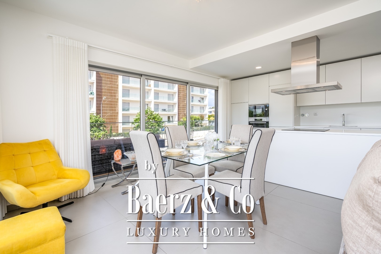 The apartment is bright and spacious, with a practical layout that connects the kitchen, living, and dining areas. Large sliding doors open onto a generous terrace, ideal for relaxed outdoor meals or simply enjoying the Algarve sun. The terrace also includes a built-in BBQ. Because this apartment is located on the corner and it has a terrace and a balcony on either side, it has the perfect sun exposure to ensure sun all day as well as always having a shaded outside area at any point of the day.