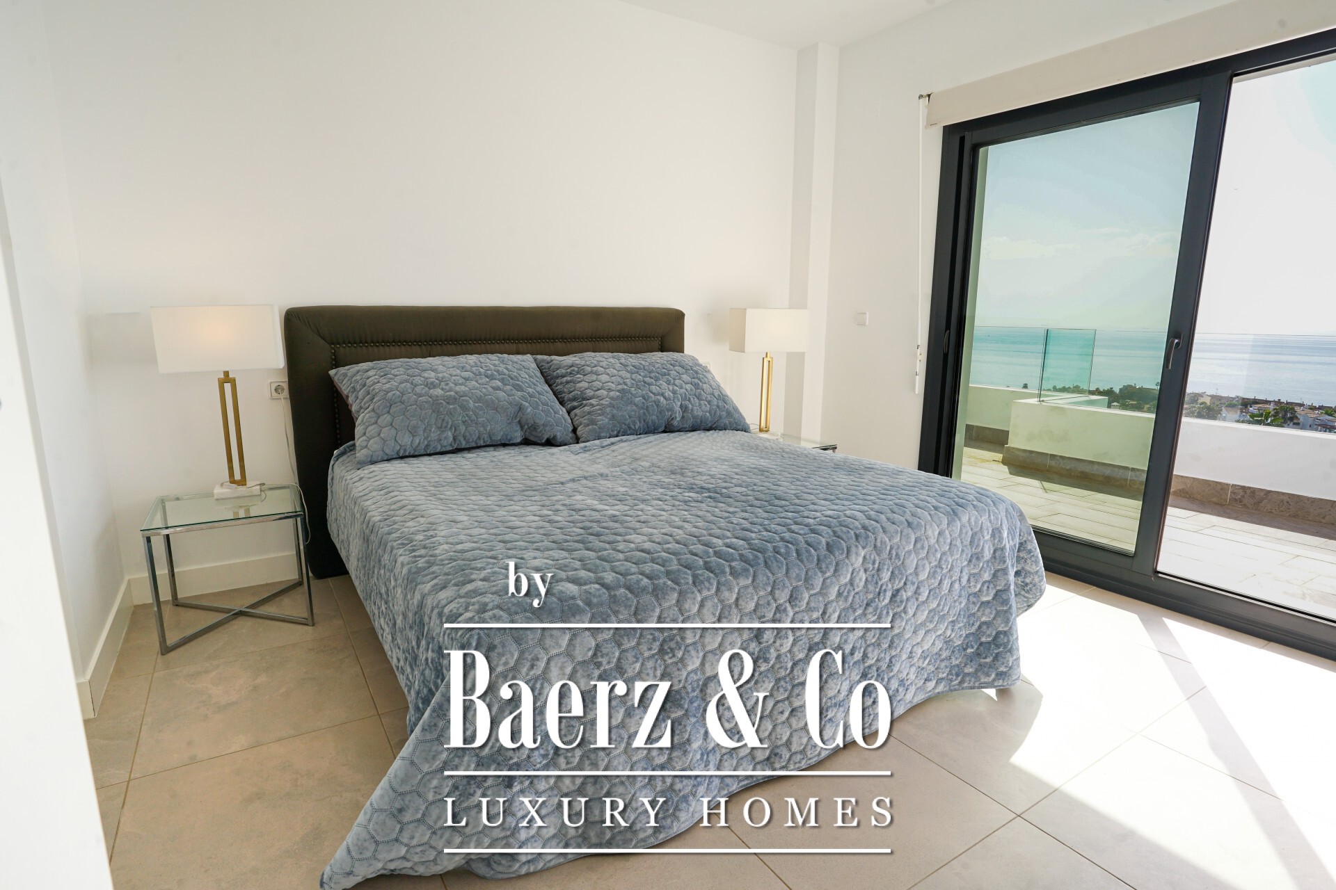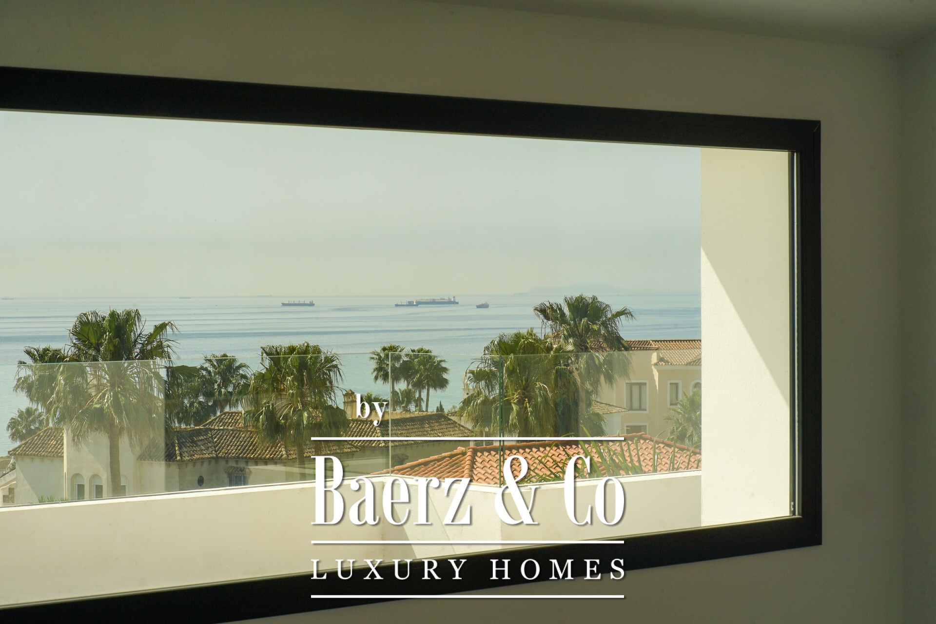 Modern villa Alcaidesa with panoramic sea views defines a rare standard of contemporary living on the Mediterranean. Completed in 2020, this residence is quietly set on a 1,200 m² elevated plot, with approximately 500 m² built across several expertly considered levels. Wide terraces of 221.91 m² open out to a landscaped garden and private pool, balancing bright indoor volumes with far-reaching views of the sea, Gibraltar, and the North African coastline.