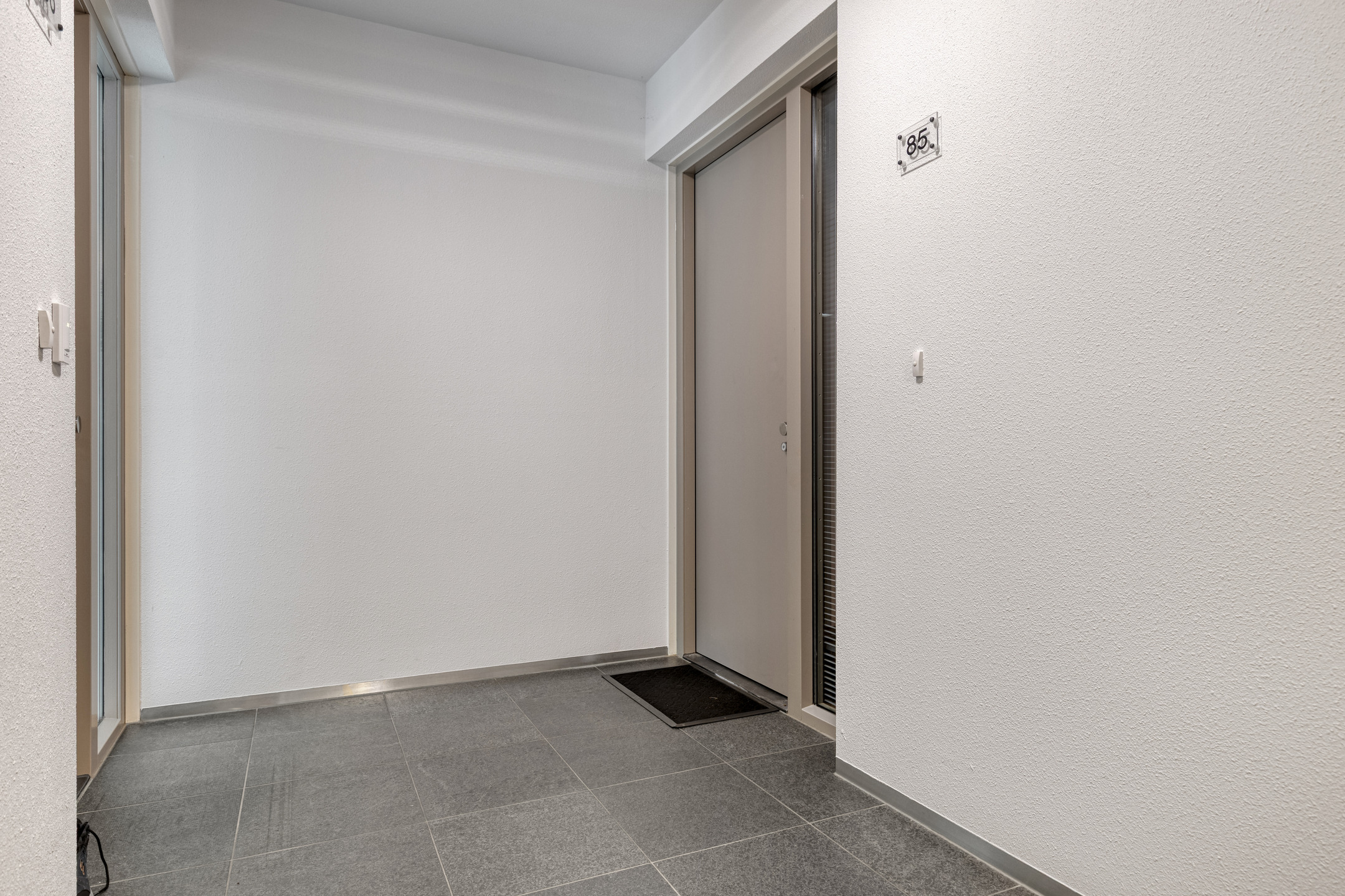 Via the central entrance with intercom system you reach the front door of the apartment. The spacious hallway provides access to all rooms. On the right-hand side is a separate toilet with washbasin. Further along the hallway, on the left, is the technical room, which houses the washing machine connection, the WKO (thermal energy storage) installation and the mechanical ventilation system. This room is also highly suitable for use as additional storage space.