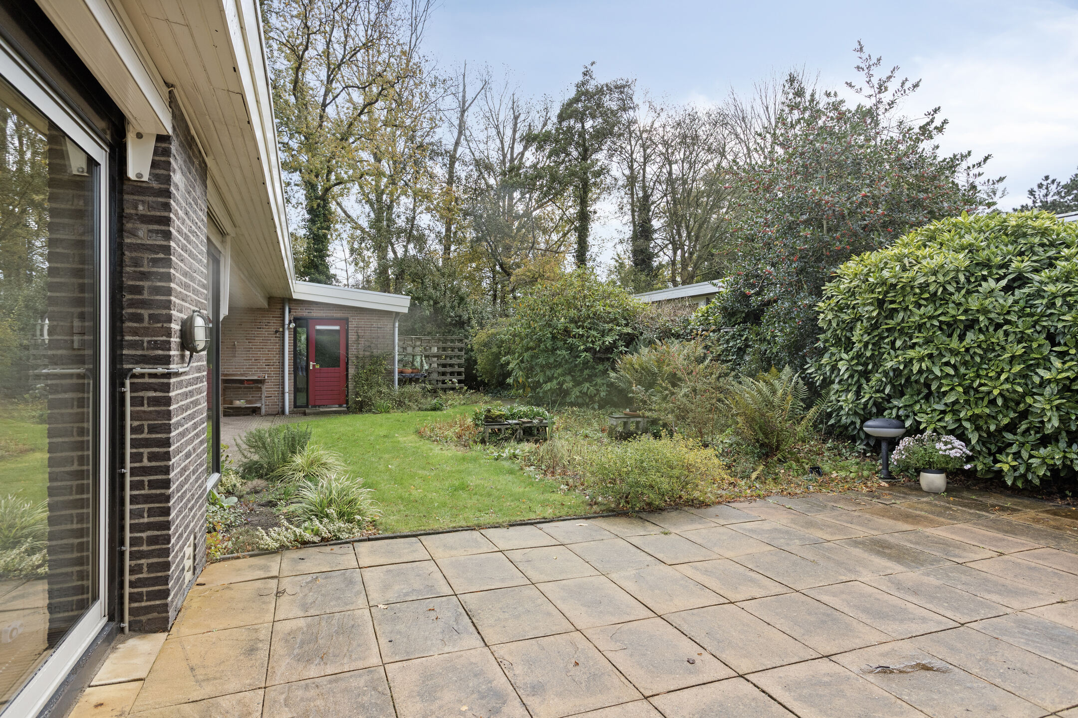 De fraai aangelegde tuin op het zuiden biedt veel privacy, groen en meerdere terrassen. Hier kunt u volop genieten van de zon, rust en ruimte. De oprit biedt ruimte voor meerdere auto’s.