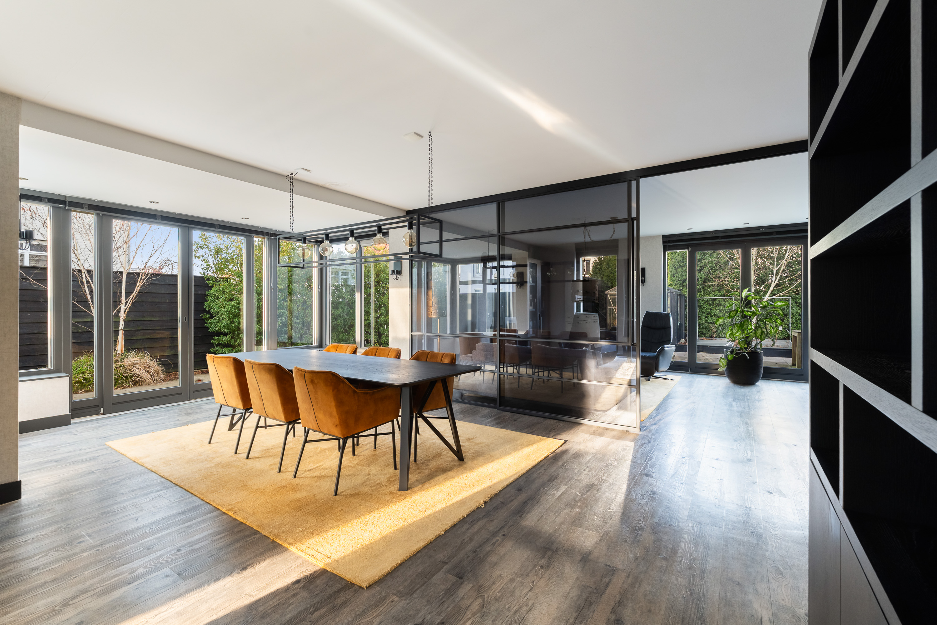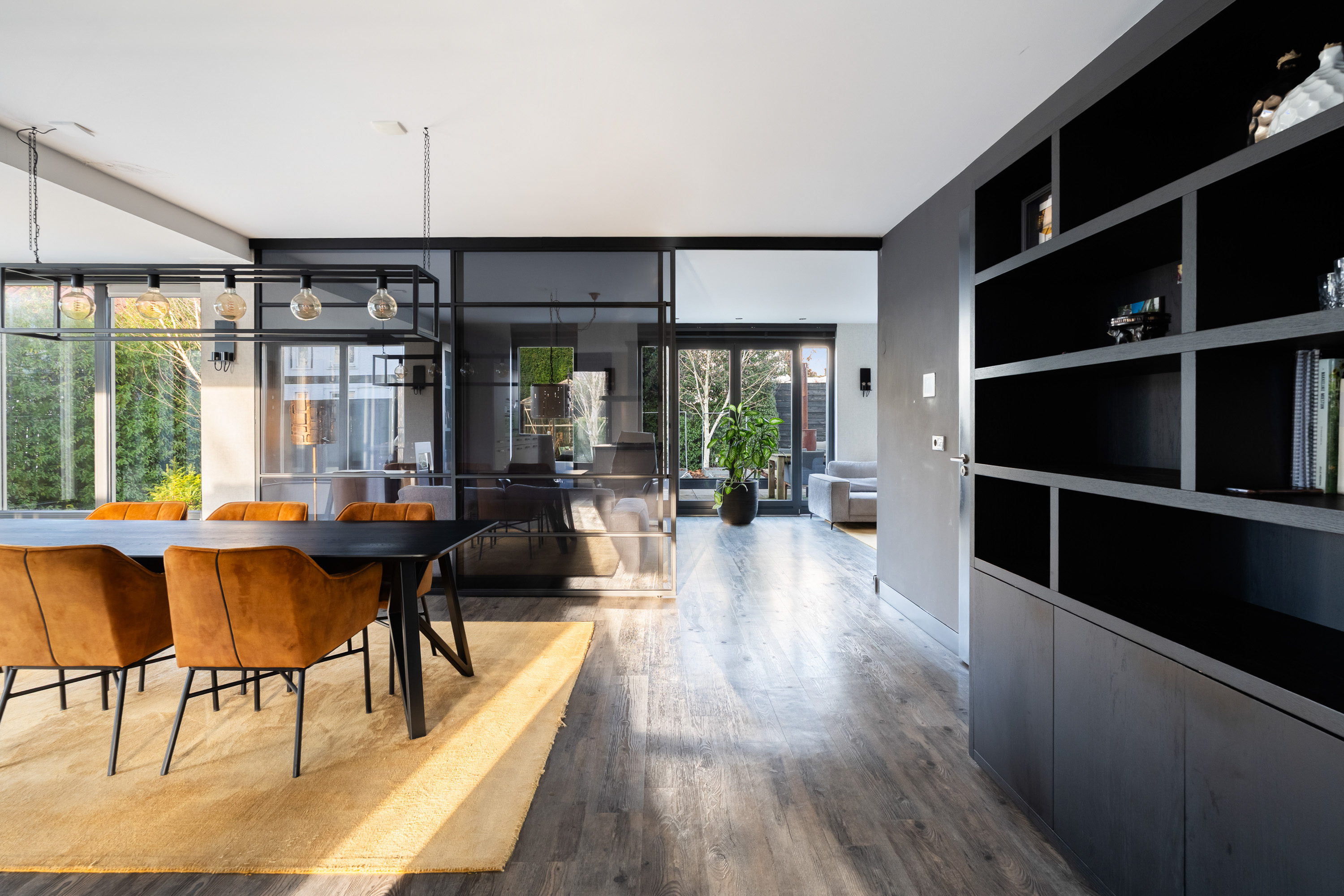The generous driveway leads you to the entrance of this detached villa. Upon entering the hall, you immediately experience the sense of space, natural light and high-quality finish that characterise the property. The staircase to the first floor is also located here. From the hall, you have access to the various living areas on the ground floor.