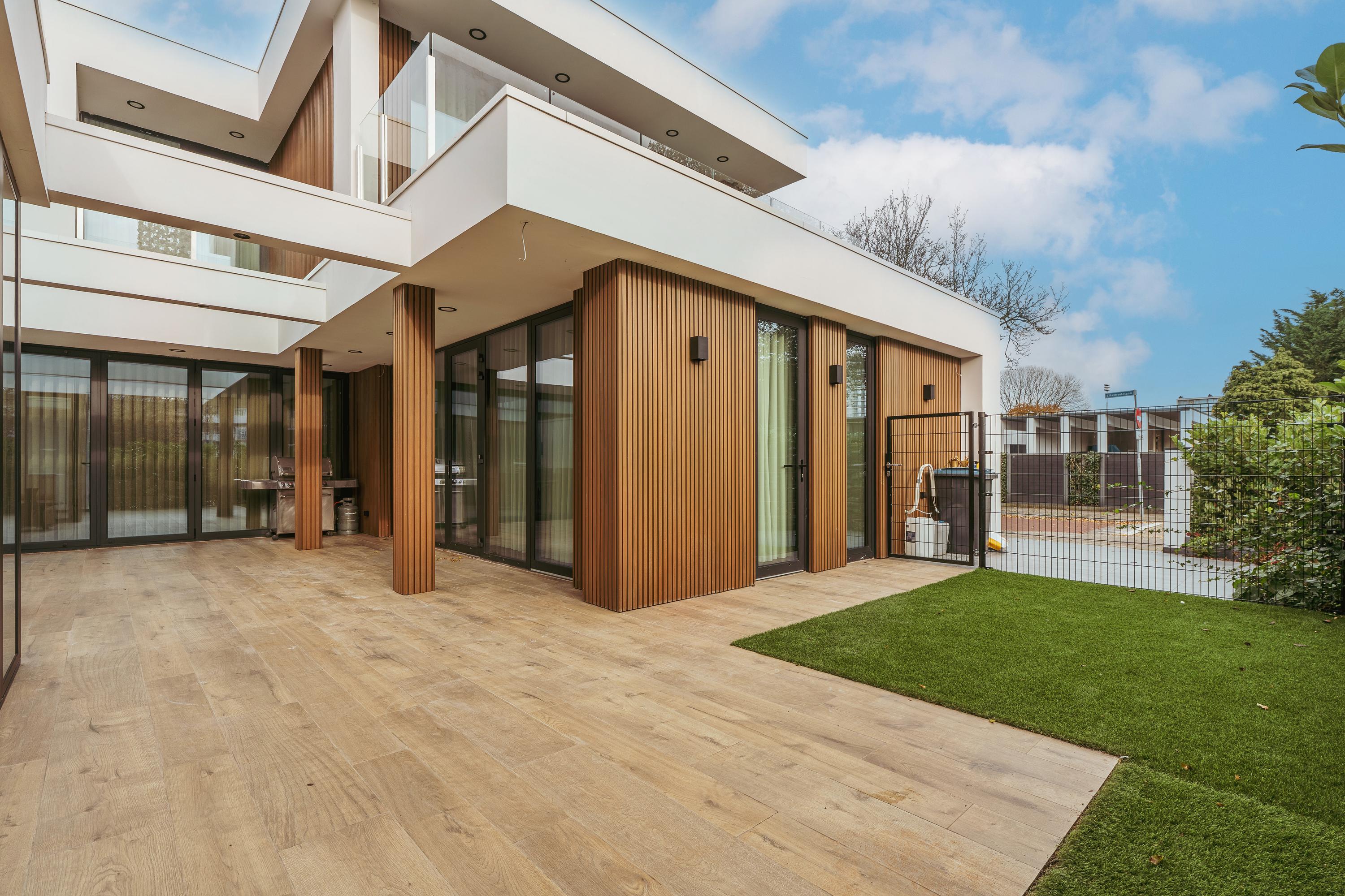 Located on the quiet and leafy Eikenrodelaan in Amstelveen, this exceptionally spacious and versatile home offers an impressive living area of no less than 240 m². The property features six generously sized bedrooms, multiple bathrooms, and a unique self-contained living unit, combining comfortable family living with luxurious amenities. With a sunny south-facing garden of approximately 177.3 m², two balconies, private on-site parking, and a convenient location close to Amsterdam, this is an ideal home for families and those seeking space, privacy, and comfort.