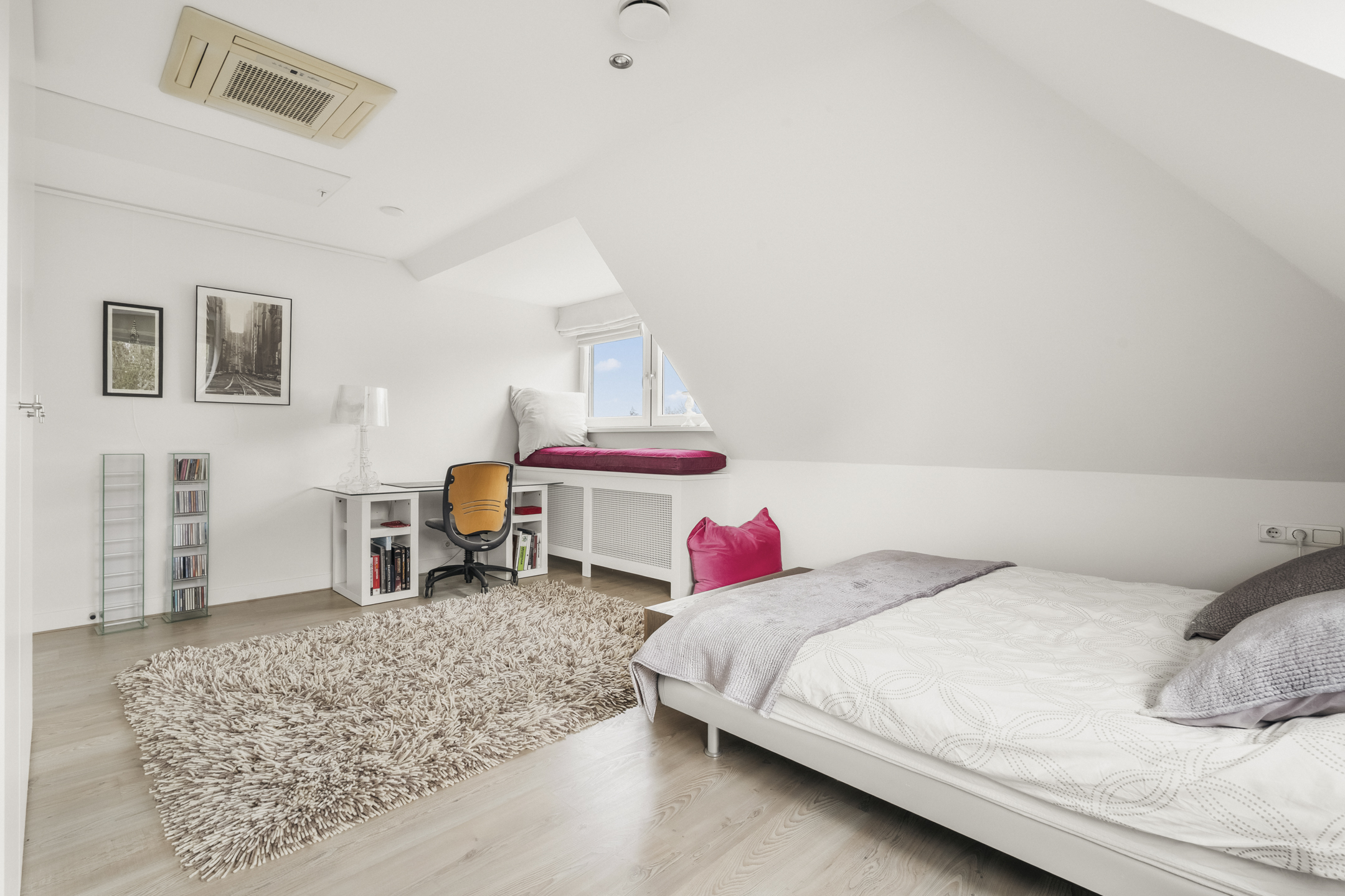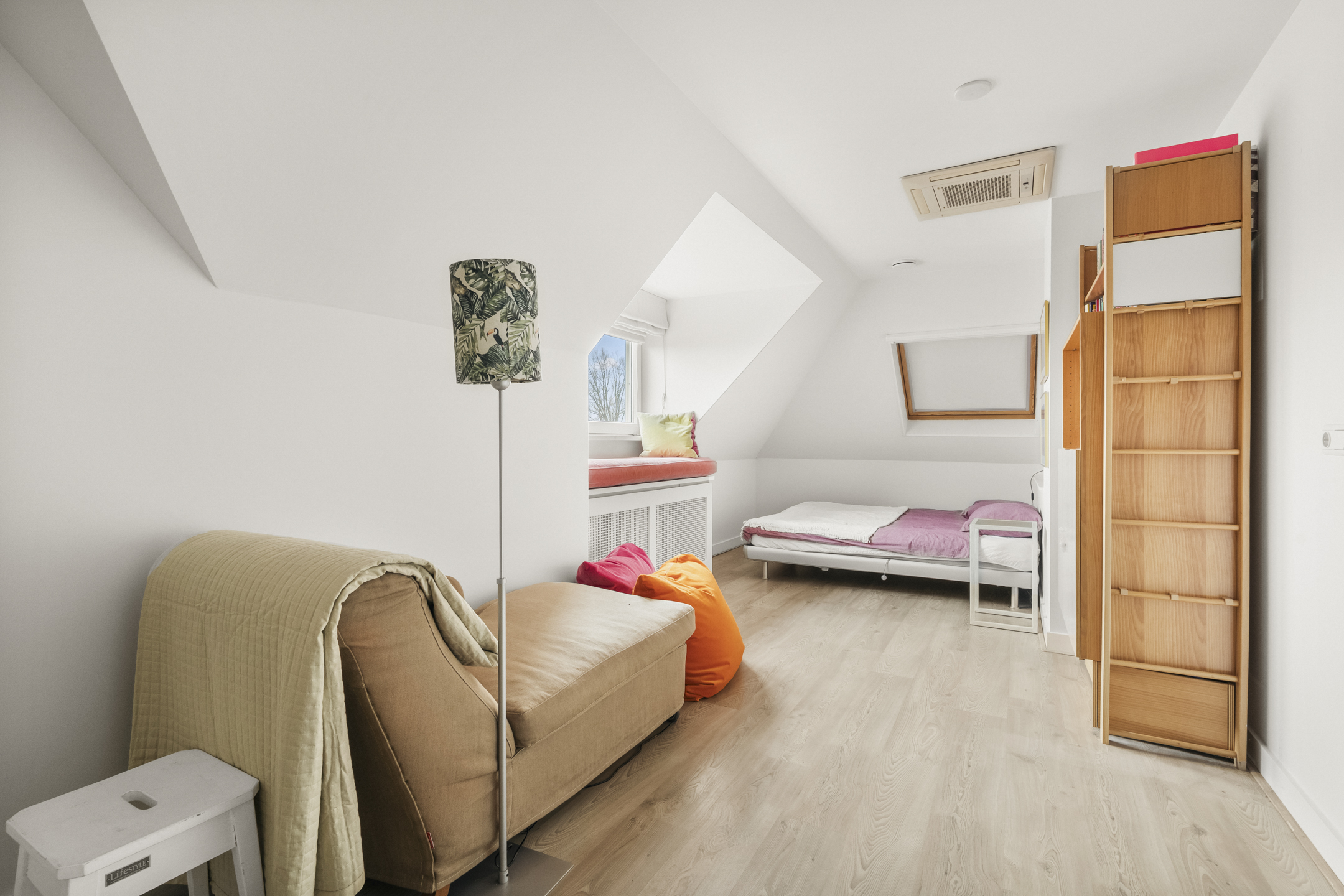 This floor also includes two generous storage rooms, ideal as walk-in wardrobes or additional storage. The third bathroom is located on this level, allowing it to function entirely independently. The bathroom is equipped with a shower, washbasin and toilet, making this floor particularly suitable for older children, guests or an au pair.