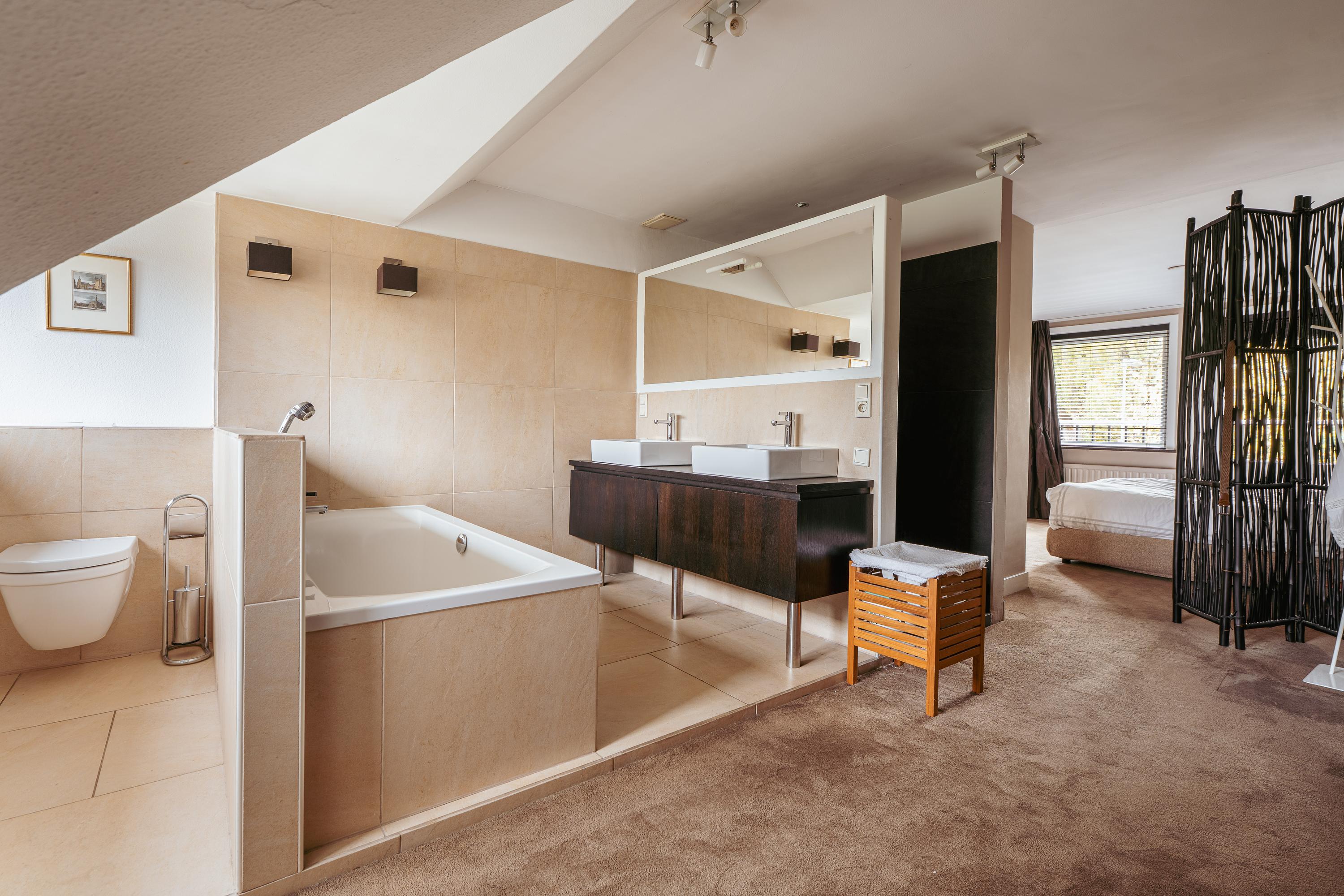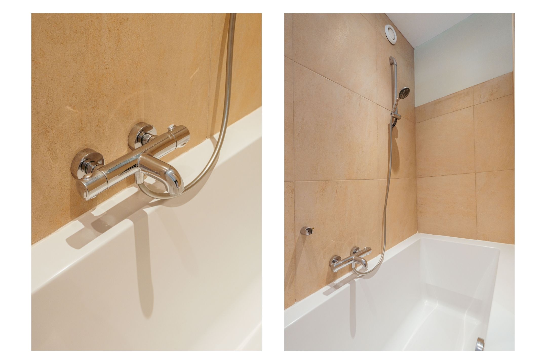 Landing with access to four well-proportioned bedrooms, the largest of which is located at the rear and features built-in wardrobes and access to the balcony. The other three rooms are perfectly suited as bedrooms, children’s rooms or home offices. Centrally on this floor is the bathroom, fitted with a bathtub with shower, double washbasin and toilet.