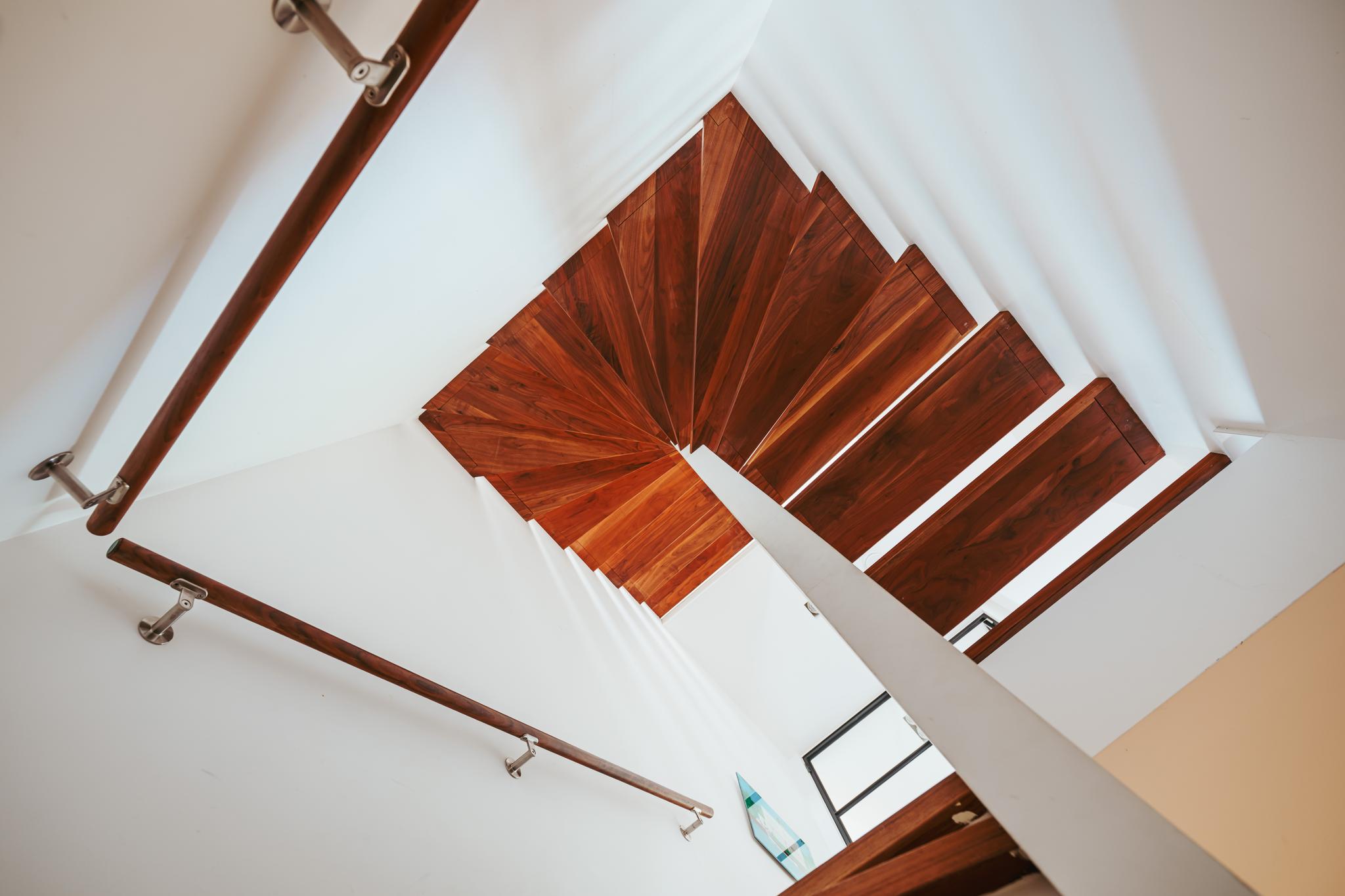 The stairs lead to a spacious landing with access to four bedrooms, two bathrooms and a separate toilet. The master bedroom is located at the rear and features a large built-in wardrobe and French doors to a balcony. It also has an en-suite bathroom with bathtub, walk-in shower, double washbasin unit and a separate toilet. Two of the other bedrooms on this floor each have their own balcony, at the front and rear of the property respectively. The fourth bedroom — currently used as a guest room — is at the front and does not have outdoor space. The second bathroom is centrally located and features a walk-in shower, bathtub and double washbasin unit.