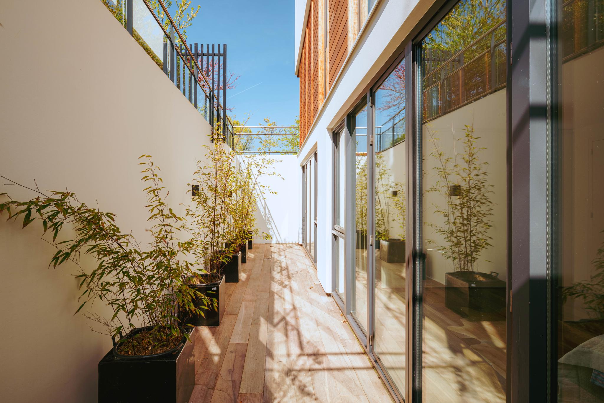 This unique villa located in Amsterdam-Zuid offers a living area of approximately 397 m², spread across three full residential floors, with multiple outdoor spaces including a private jetty, garden, balcony, and a spacious rooftop terrace.