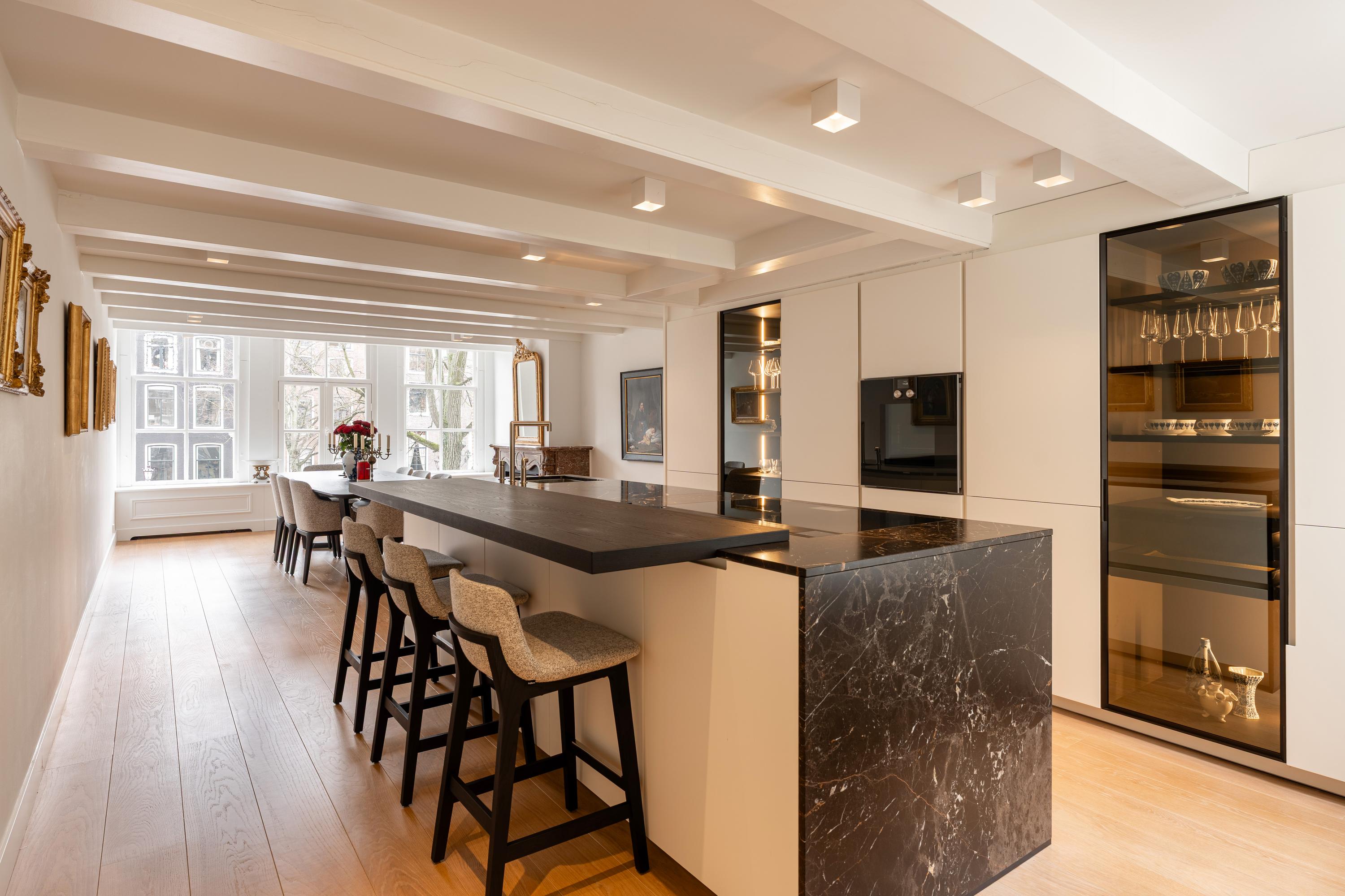 Canal house Amsterdam stands as an elegant testament to history and refined urban living along the Keizersgracht, within the UNESCO-listed canal district. This meticulously renovated canal house offers approximately 275 m² of living space distributed across six levels, blending historic character with contemporary craftsmanship. The property’s spatial rhythm flows from the distinctive souterrain wellness area—finished in Carrara marble and including a jacuzzi and sauna—to a generous rooftop terrace that captures the city’s light and intimacy.