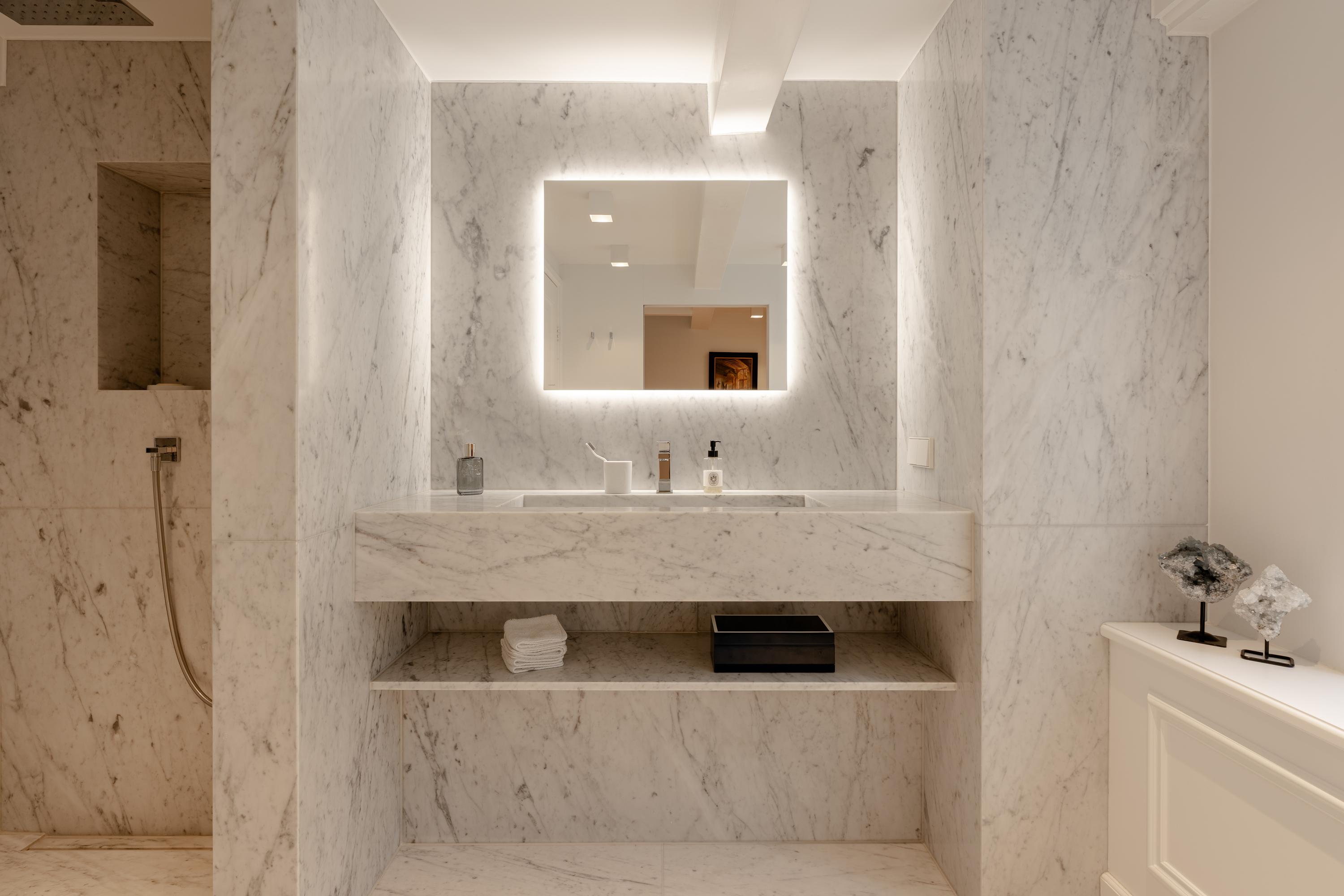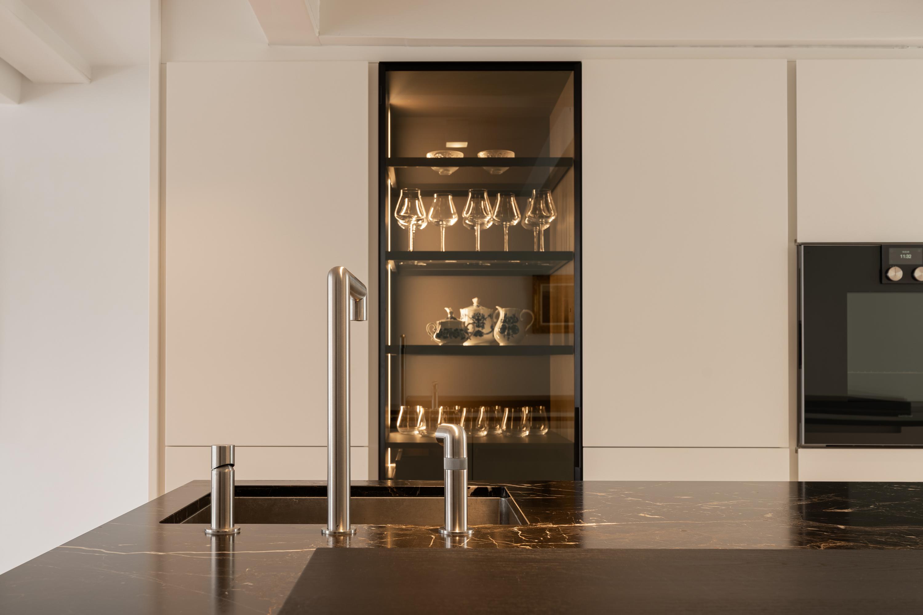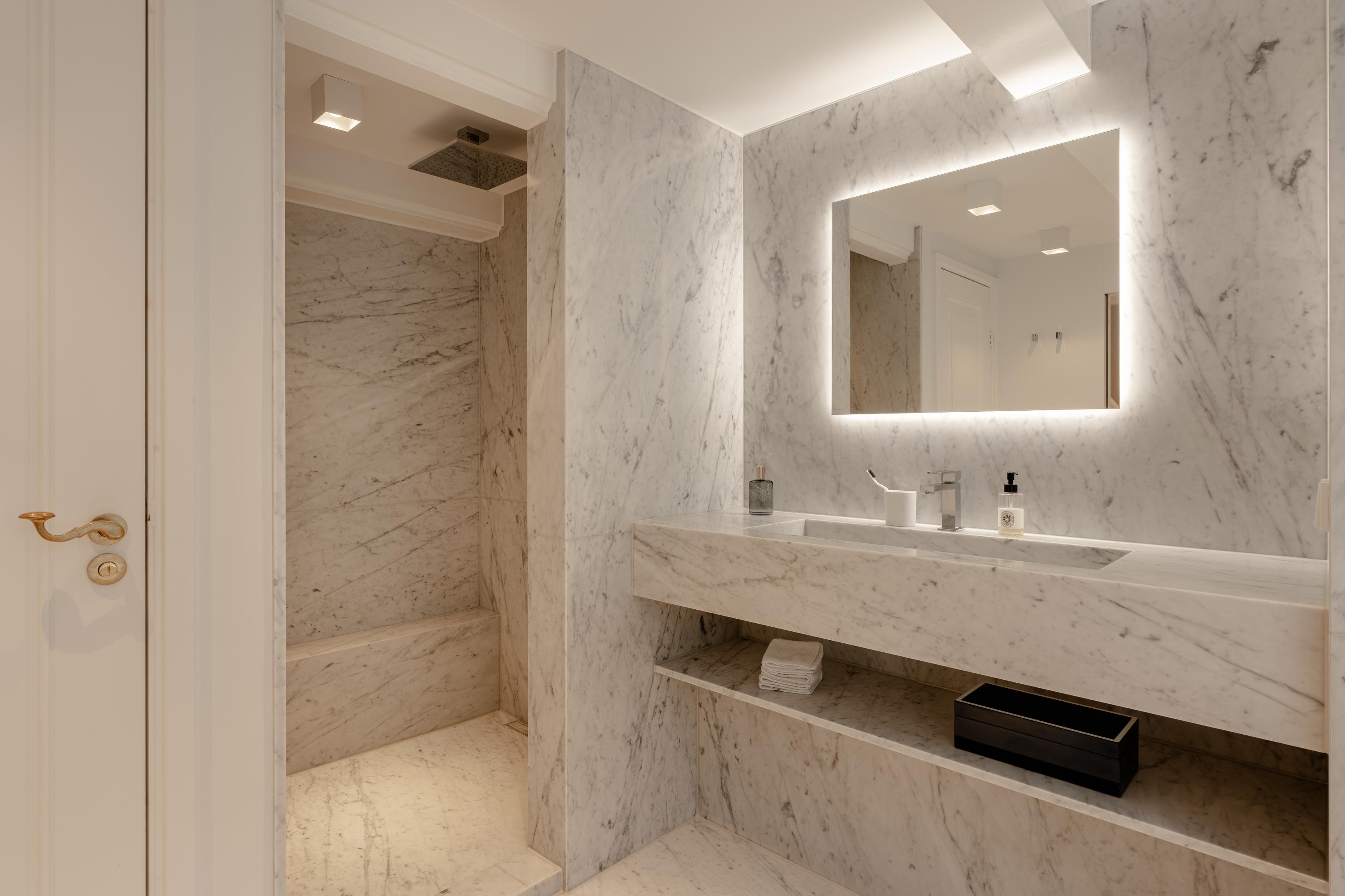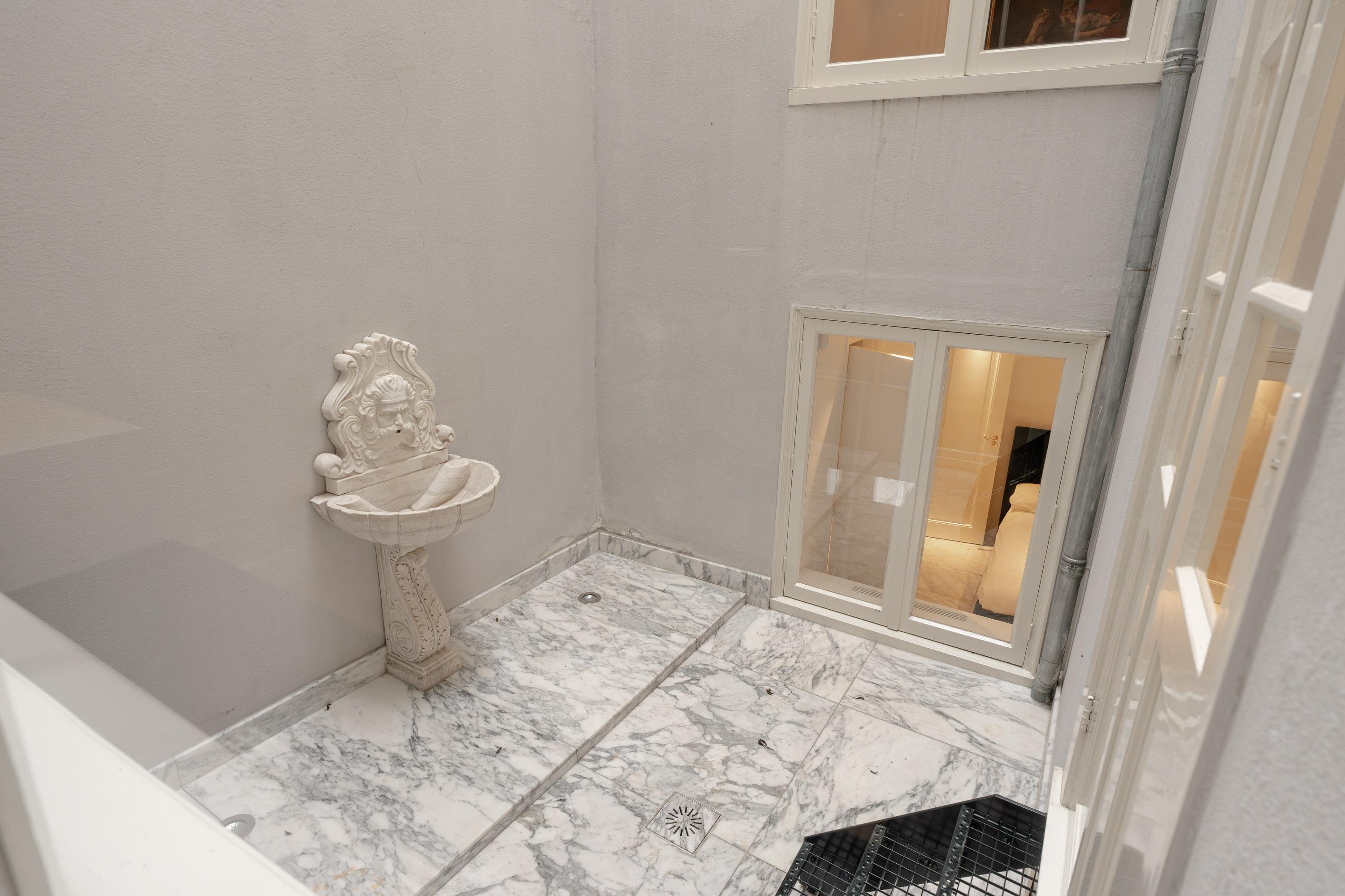 The architecture preserves original beam structures and intricate ceiling ornaments, paired with bespoke cabinetry and marbles, creating an atmosphere of calm and enduring quality. Six bedrooms and three bathrooms cater to versatile living, each space thoughtfully finished. The master suite features bespoke dark-hued wardrobes, a marble-clad bathroom, and restful canal views. Living spaces connect to the canal scenery, and the kitchen’s Saint Laurent marble and premium appliances form an elegant focal point for gathering.