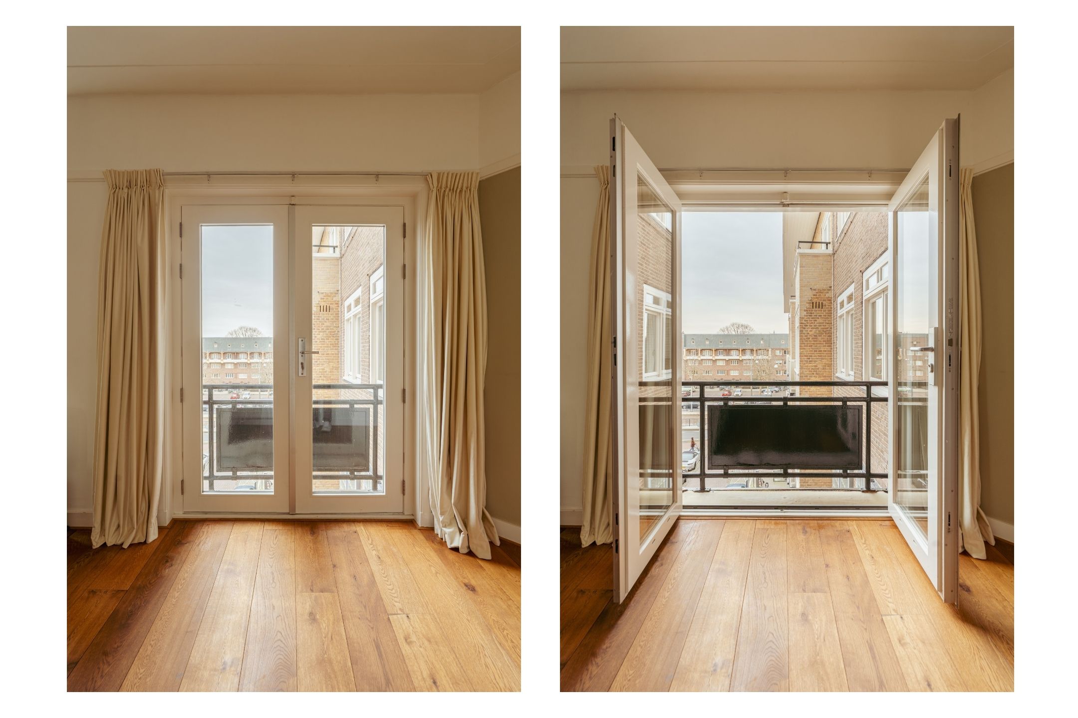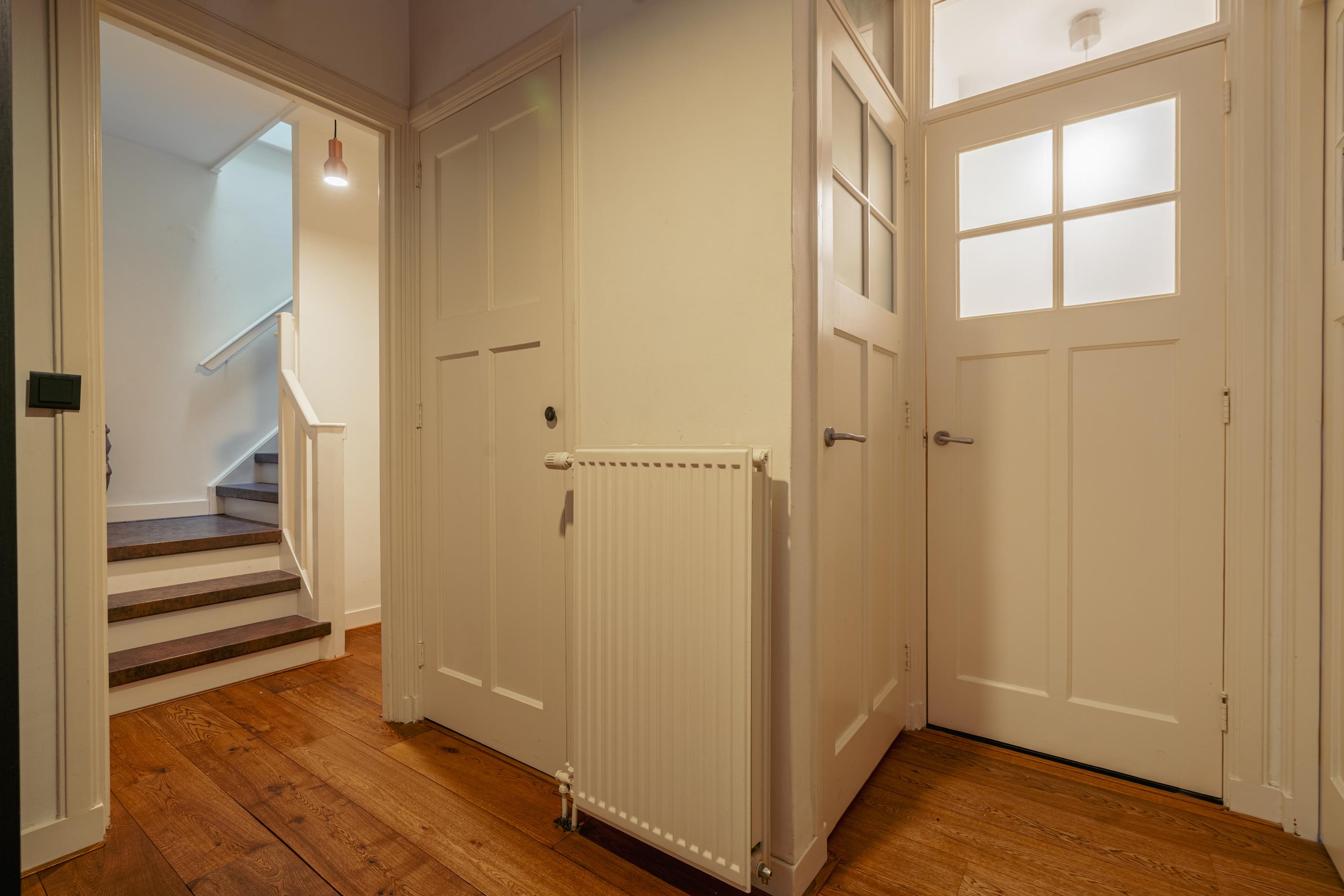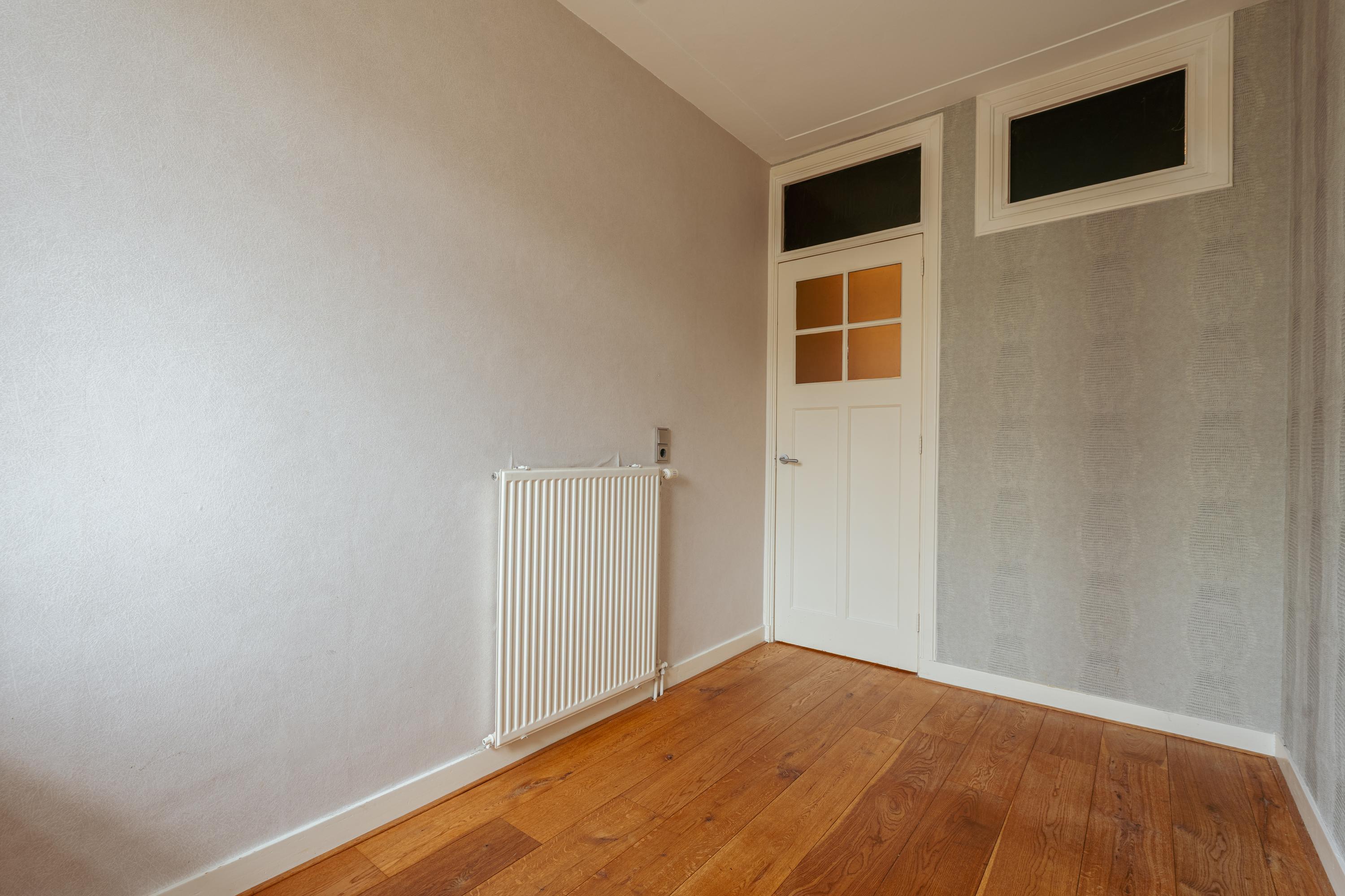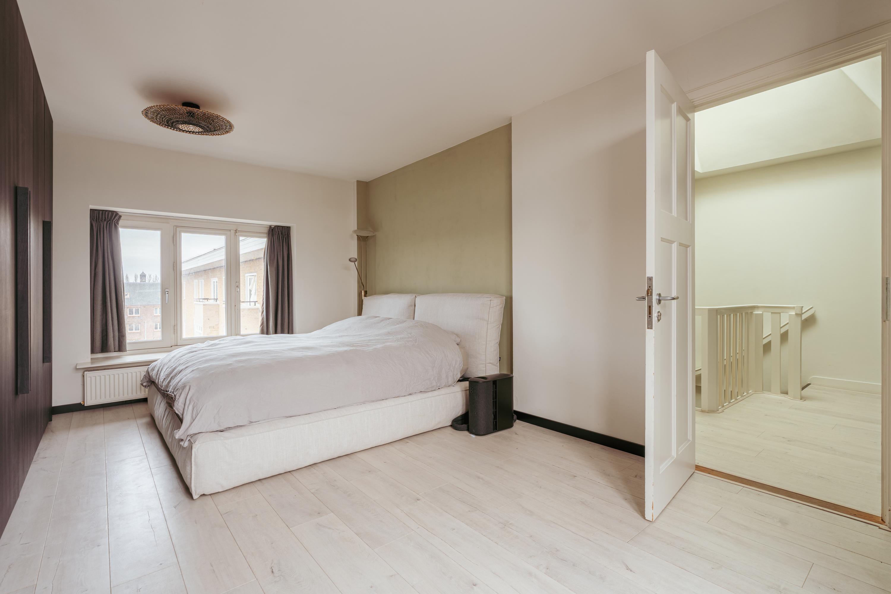 The spacious living area forms the heart of the apartment: an impressive L-shaped living room extending from the front to the rear of the property. Large windows at the front provide beautiful natural light. French doors open onto a charming balcony with open views over the lively Stadionplein. The generous layout offers various possibilities for furnishing and arrangement.