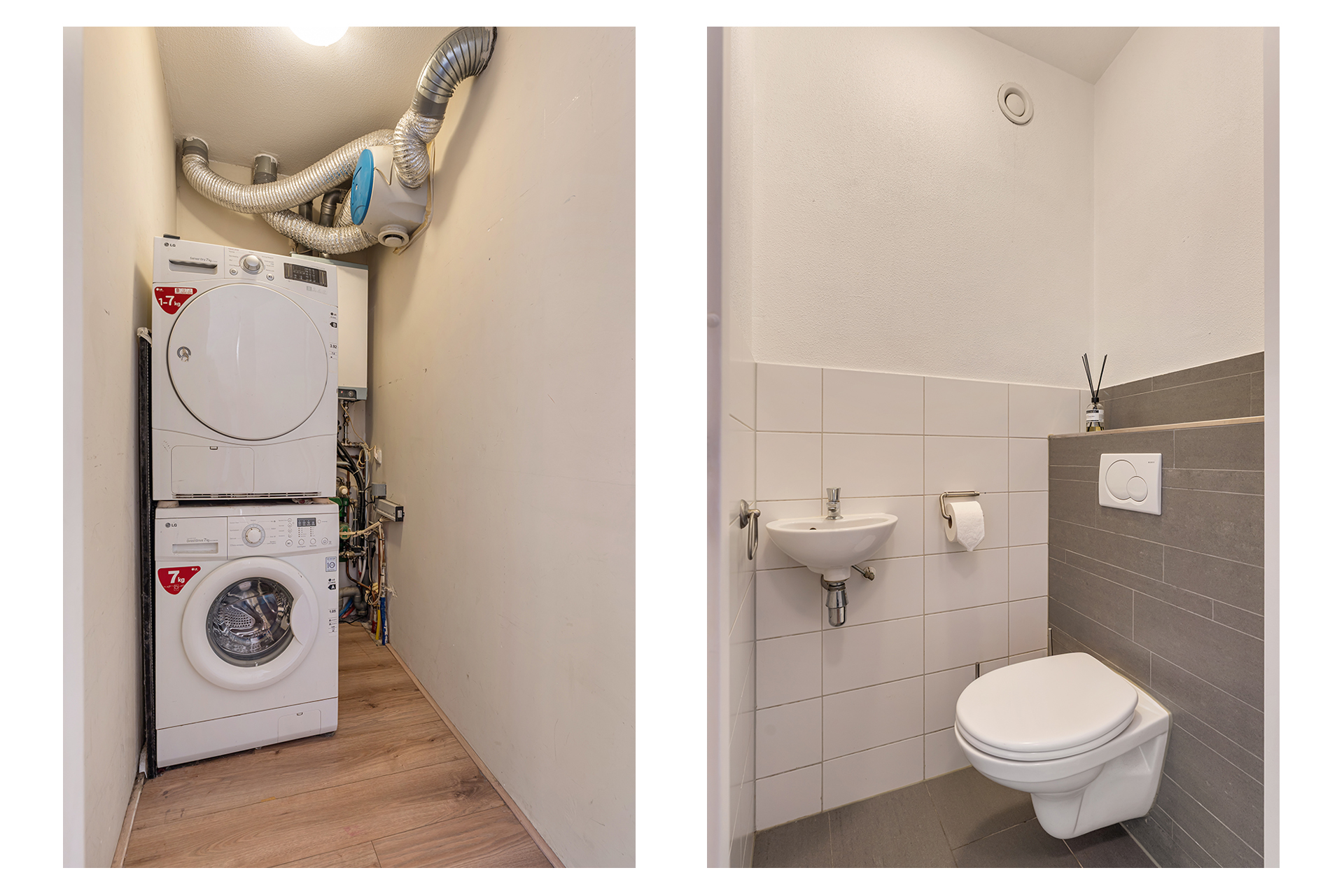 Via het goed onderhouden gemeenschappelijke trappenhuis met lift bereikt u de entree van het appartement. De ruime hal biedt toegang tot alle vertrekken en beschikt over een berging met wasmachine- en drogeraansluiting, evenals een separaat toilet met fontein.