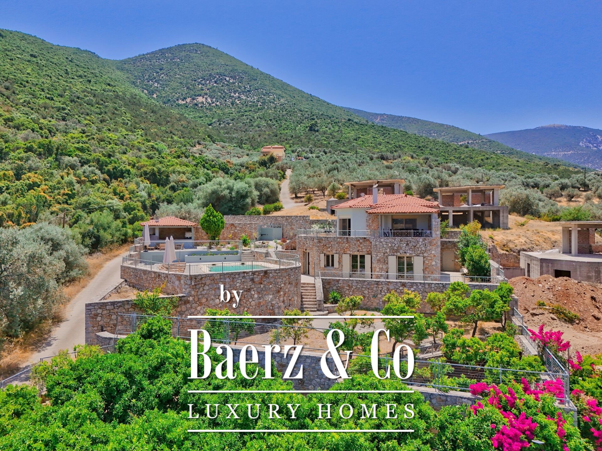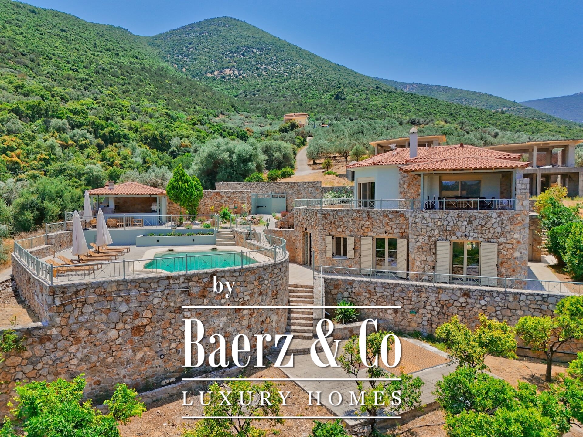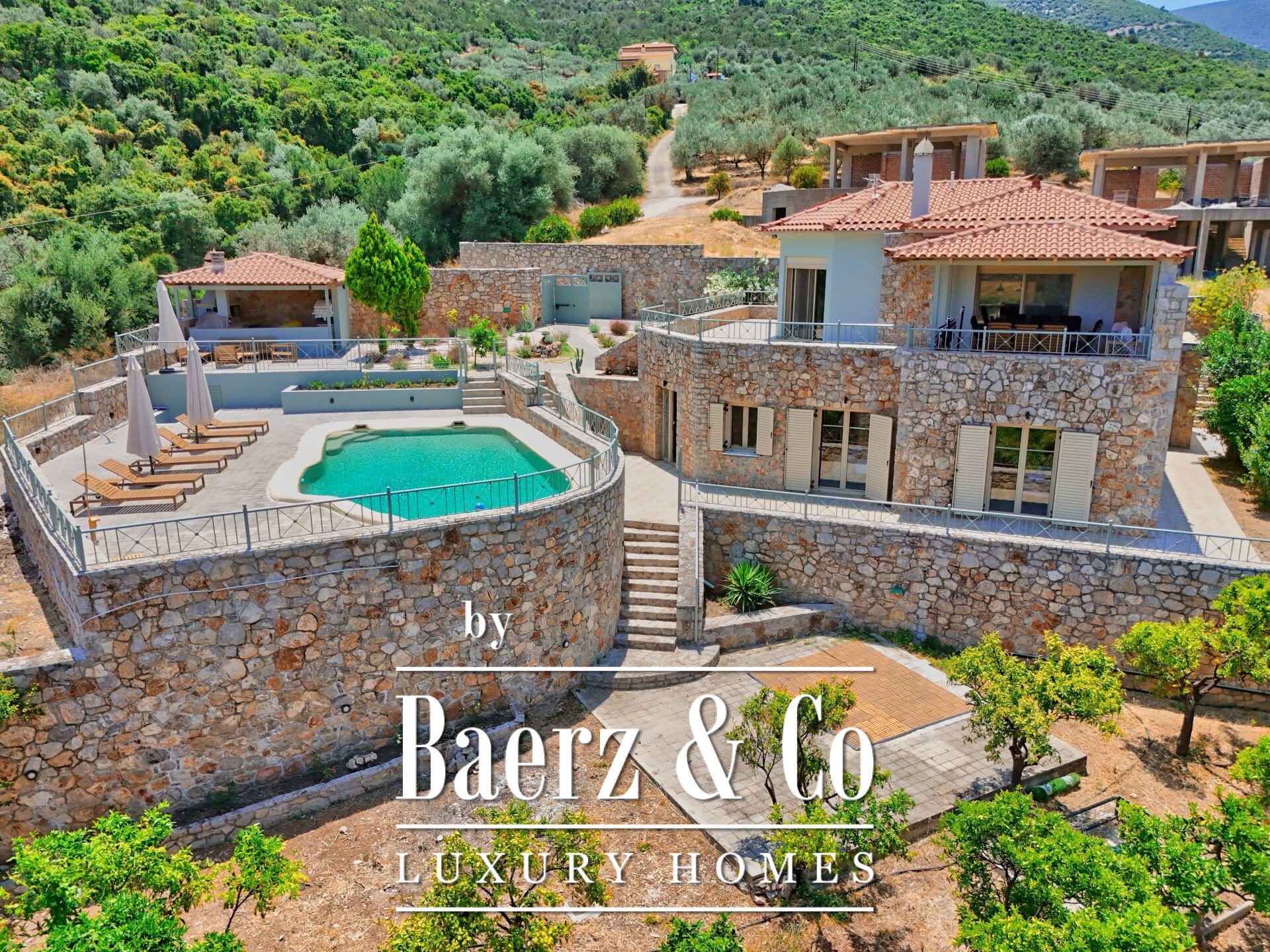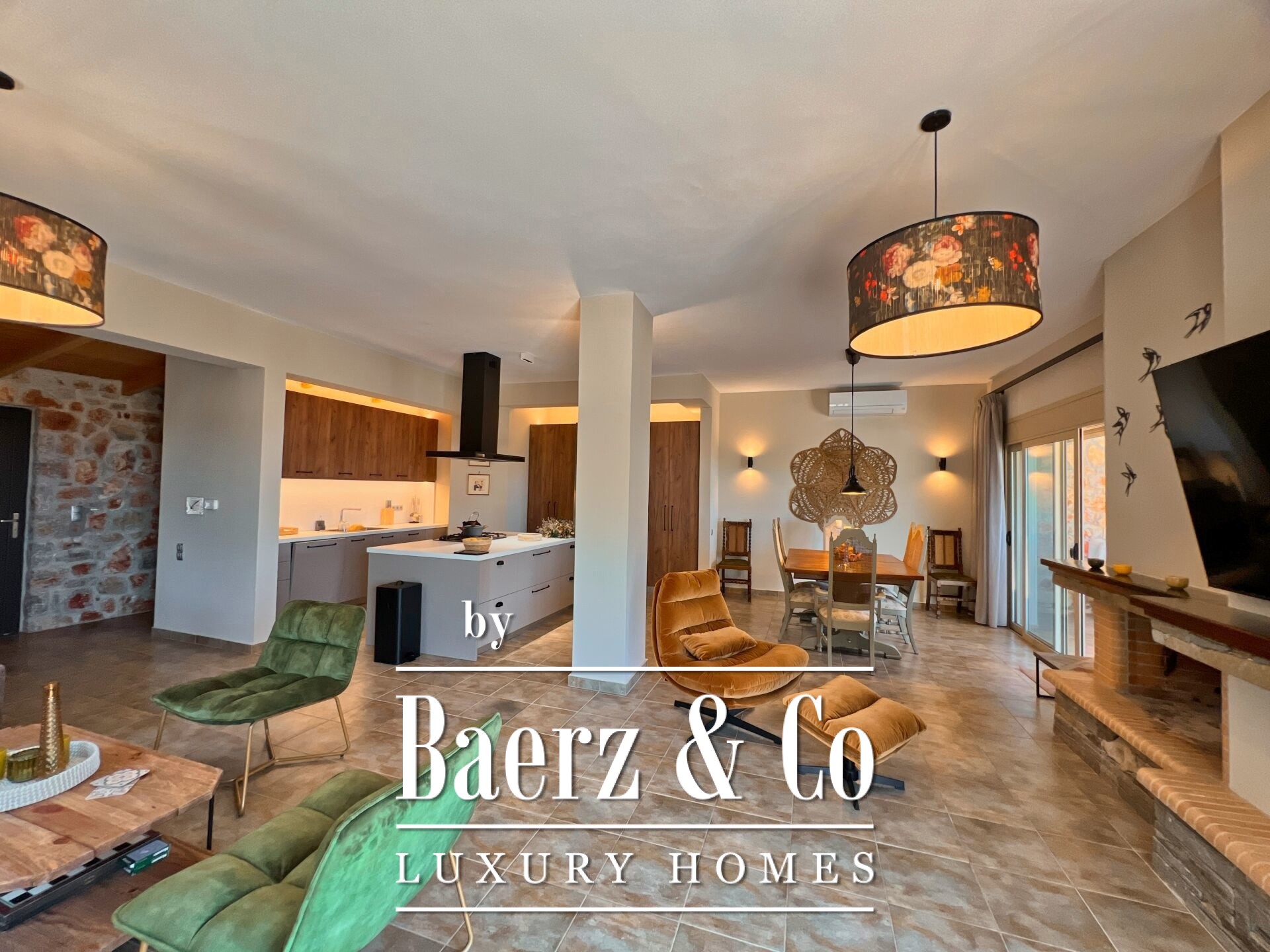 This stone villa Archaia Epidavros presents 260 m² of refined living on a private 1,345 m² plot, set quietly among olive groves and proximate to the beaches and revered ancient theater. With architecture rooted in local stone and modern techniques, the villa balances authenticity and contemporary comfort.