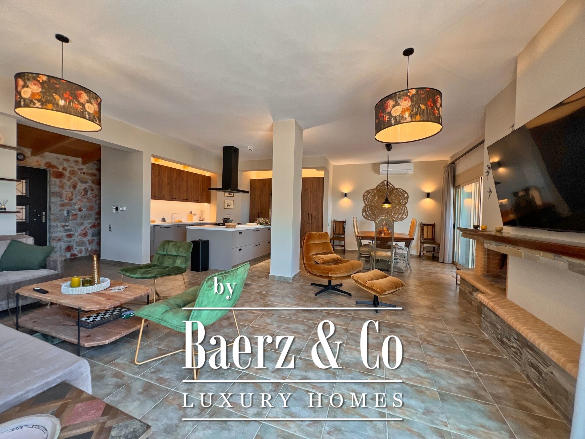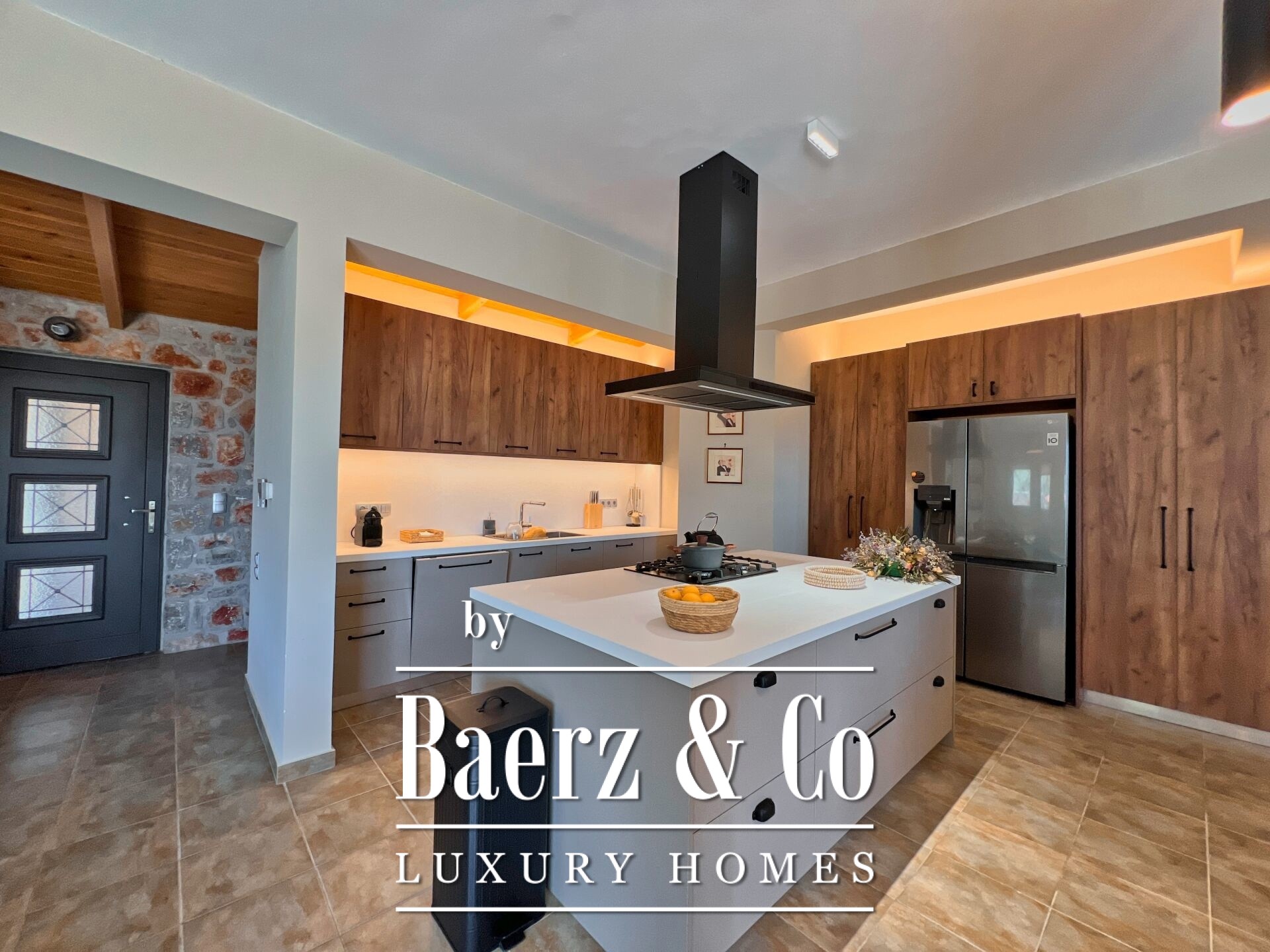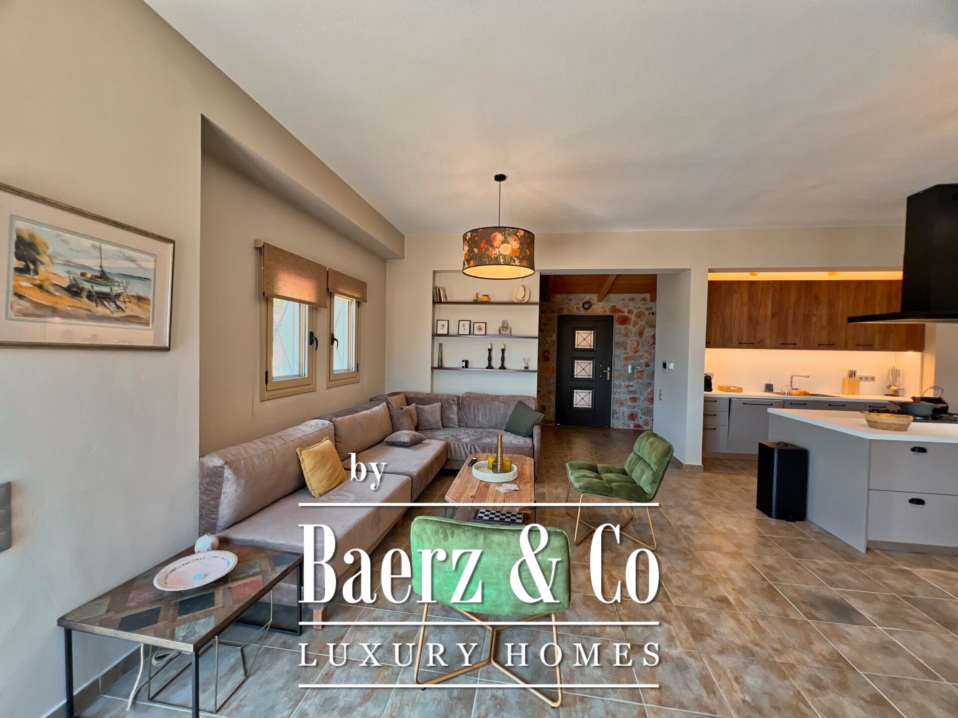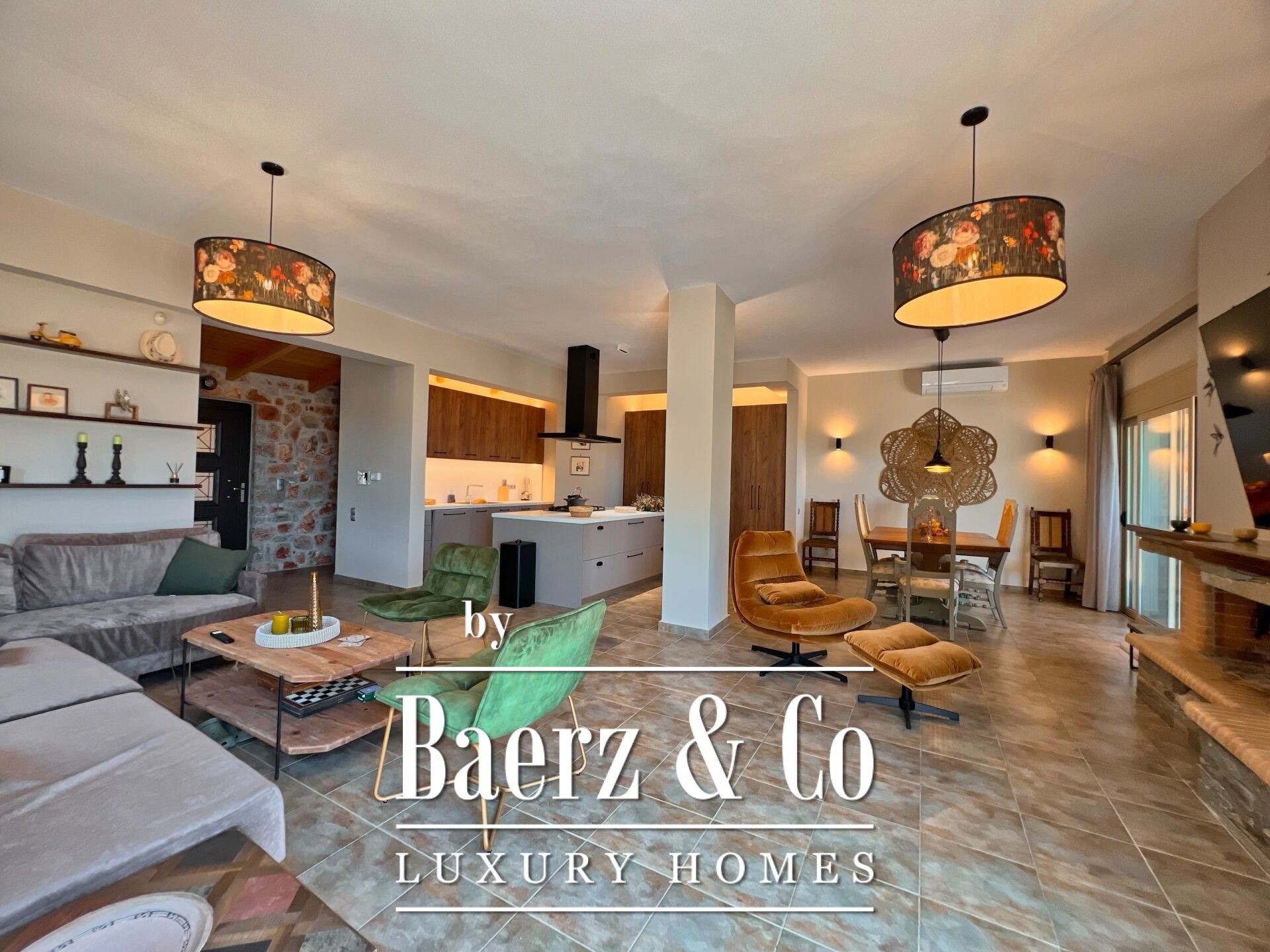 This stone villa Archaia Epidavros presents 260 m² of refined living on a private 1,345 m² plot, set quietly among olive groves and proximate to the beaches and revered ancient theater. With architecture rooted in local stone and modern techniques, the villa balances authenticity and contemporary comfort.
