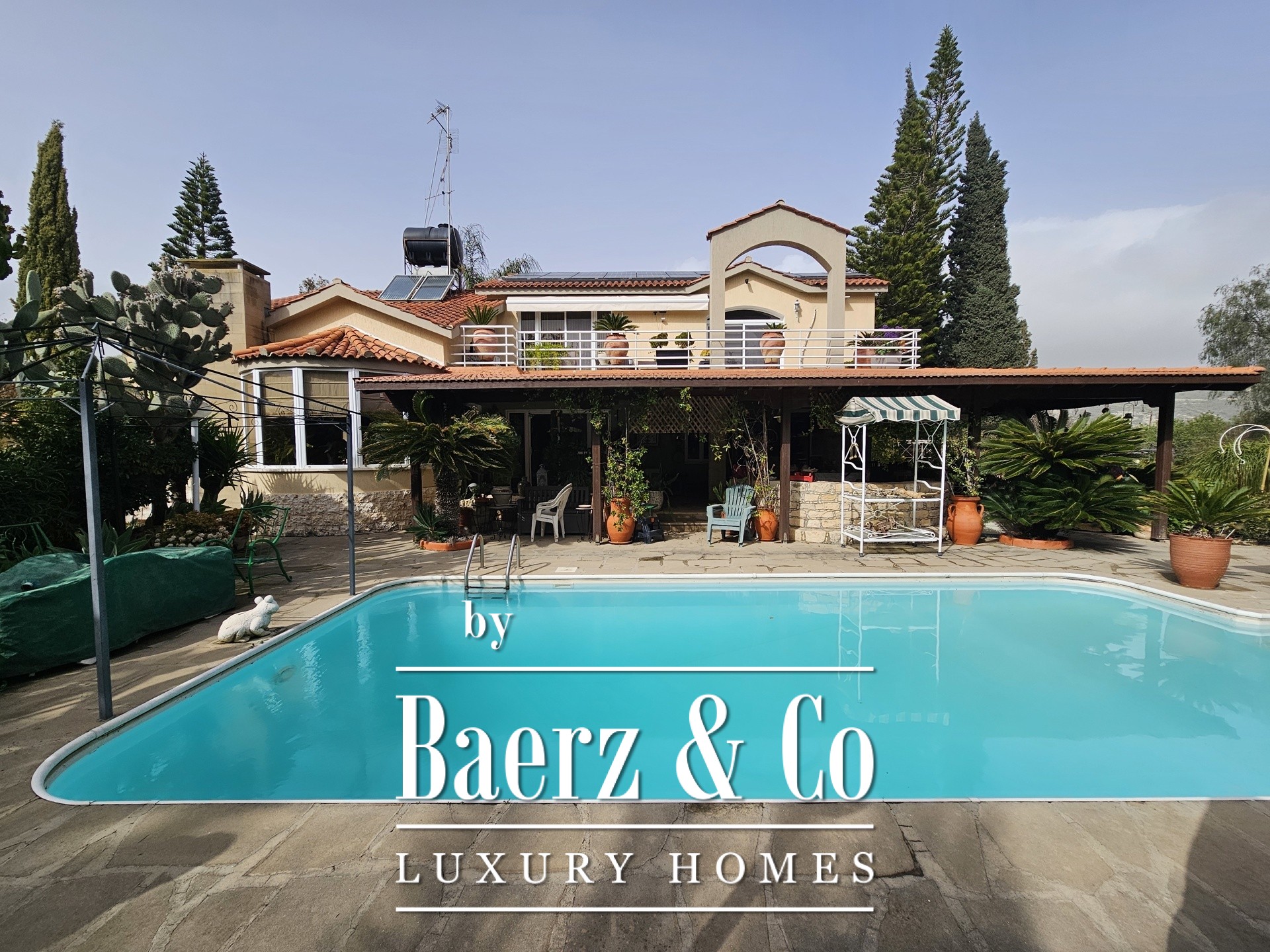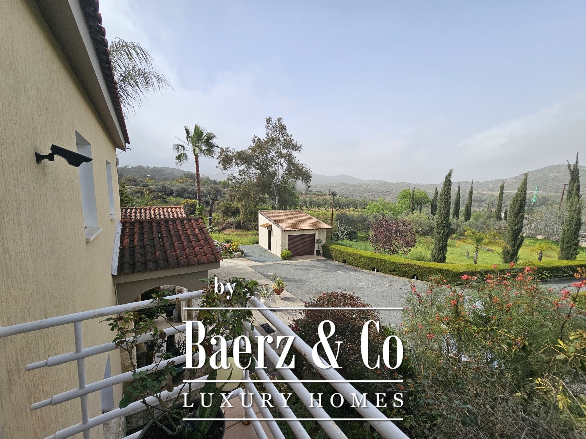 Detached villa Asgata Cyprus offers an expansive residence set within 18,025 sq.m. of quiet landscape. Elevated to command panoramic and unobstructed mountain views, this neoclassical home stands apart with a balance of timeless proportion and refined engineering. The covered area of 460 sq.m. is arranged across two levels, creating internal and external spaces for both privacy and entertaining.