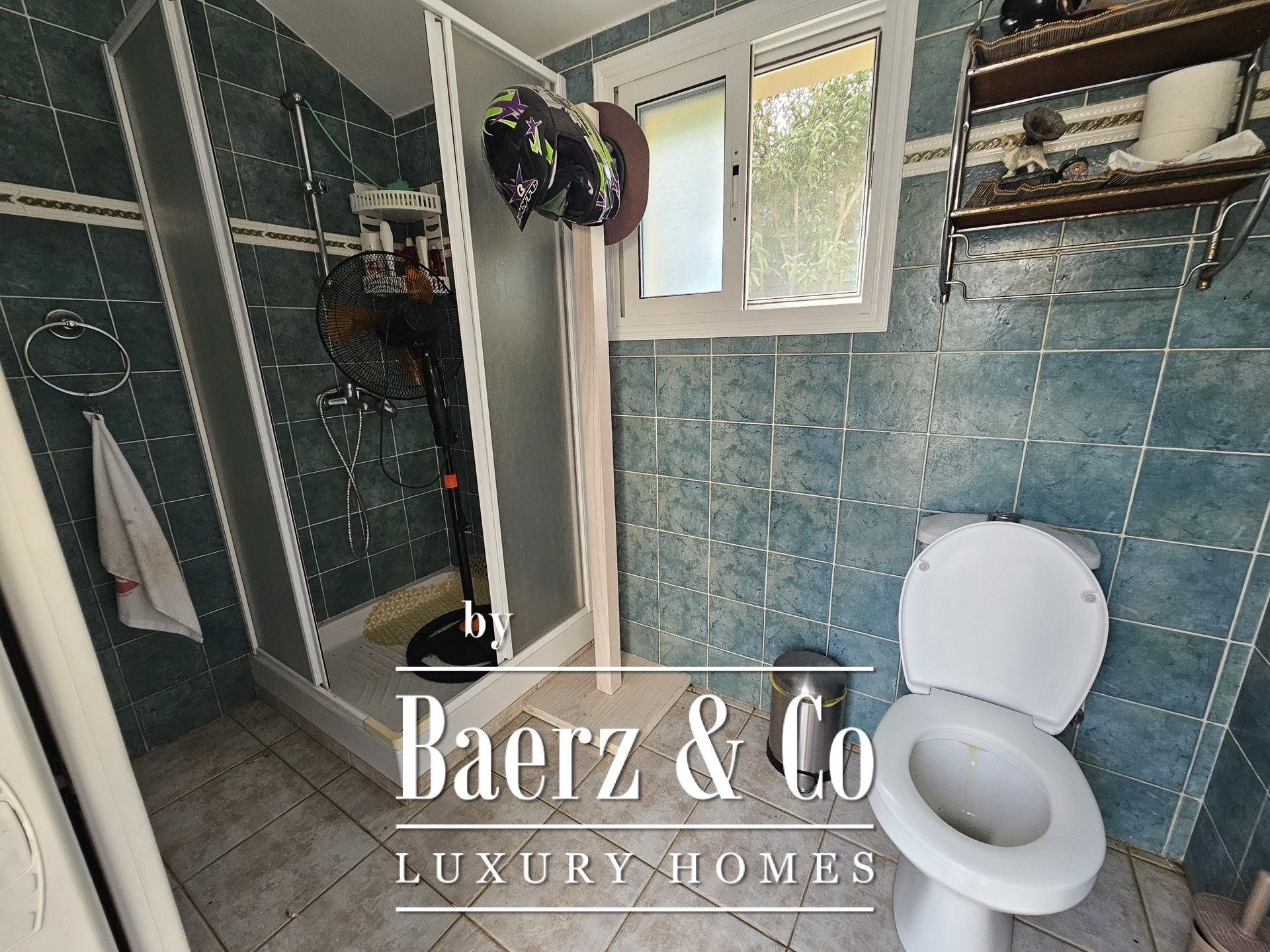 Designed with four bedrooms including a master suite, two bathrooms, and a discreet WC, the villa flows naturally from its main living room to the landscaped exterior, where a pool and pool house become central to daily rhythm and gatherings. North-west orientation ensures consistent natural light, while double-glazed aluminium windows, tiled and cement flooring, and energy class A efficiency enhance comfort throughout the year.