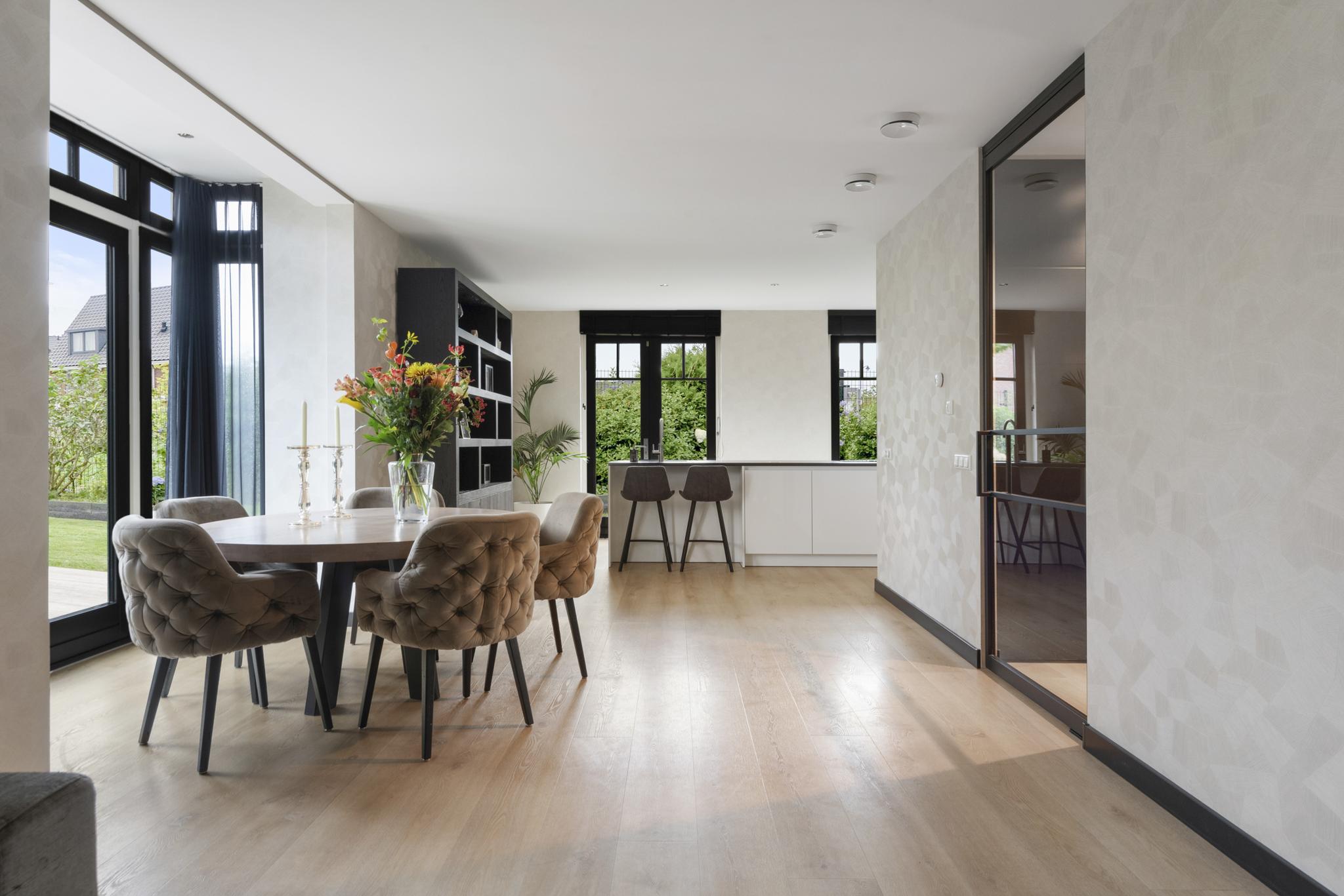 With a living area of no less than 181 m², 4 spacious bedrooms, 2 luxurious bathrooms and an attractive kitchen/diner, this is a dream home for families looking for comfort and style. The villa, built in 2020, radiates warmth and luxury and is finished in detail. The sunny southeast-facing garden offers a lot of privacy and space, so you can enjoy yourself in peace. There is also a detached canopy with lounge area and a beautiful swimming pool. The house also has a spacious garage and parking for several cars on site.
