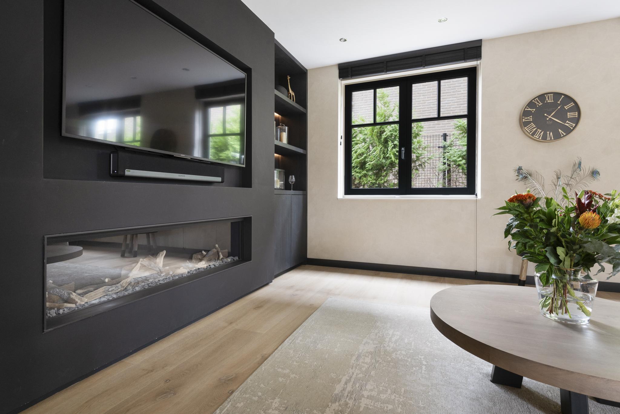 Through multiple French doors from the living room, you have access to the garden. The beautifully landscaped backyard features several lounge areas, a covered patio with a heater and access to the external garage.