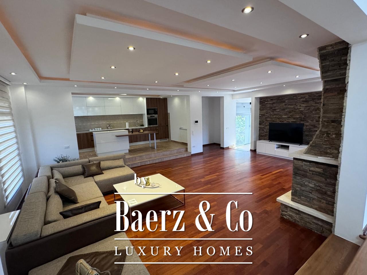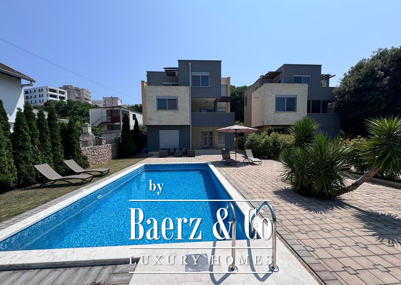 The villa has 3 levels. There is a pool in front of the villa. There are 2 parking spots that can be turned into a garage. The villa is connected by an asphalt road to the main road.