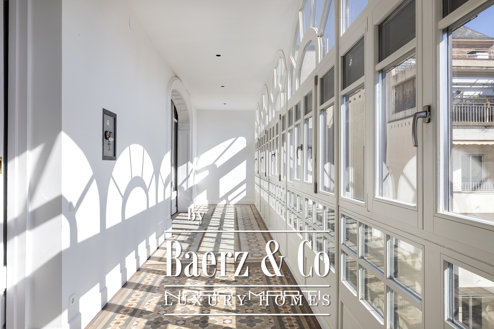 Apartment Barcelona lies at the heart of the city, offering 172 m² of refined living space where original modernist character meets a considered restoration. Entering the apartment, you encounter restored hydraulic floors and soaring ceilings of 3.5 meters, which carry a sense of volume and poise. A carefully executed light study enhances natural daylight, its impact amplified by a luminous gallery and restored windows that open onto a tranquil Eixample courtyard.