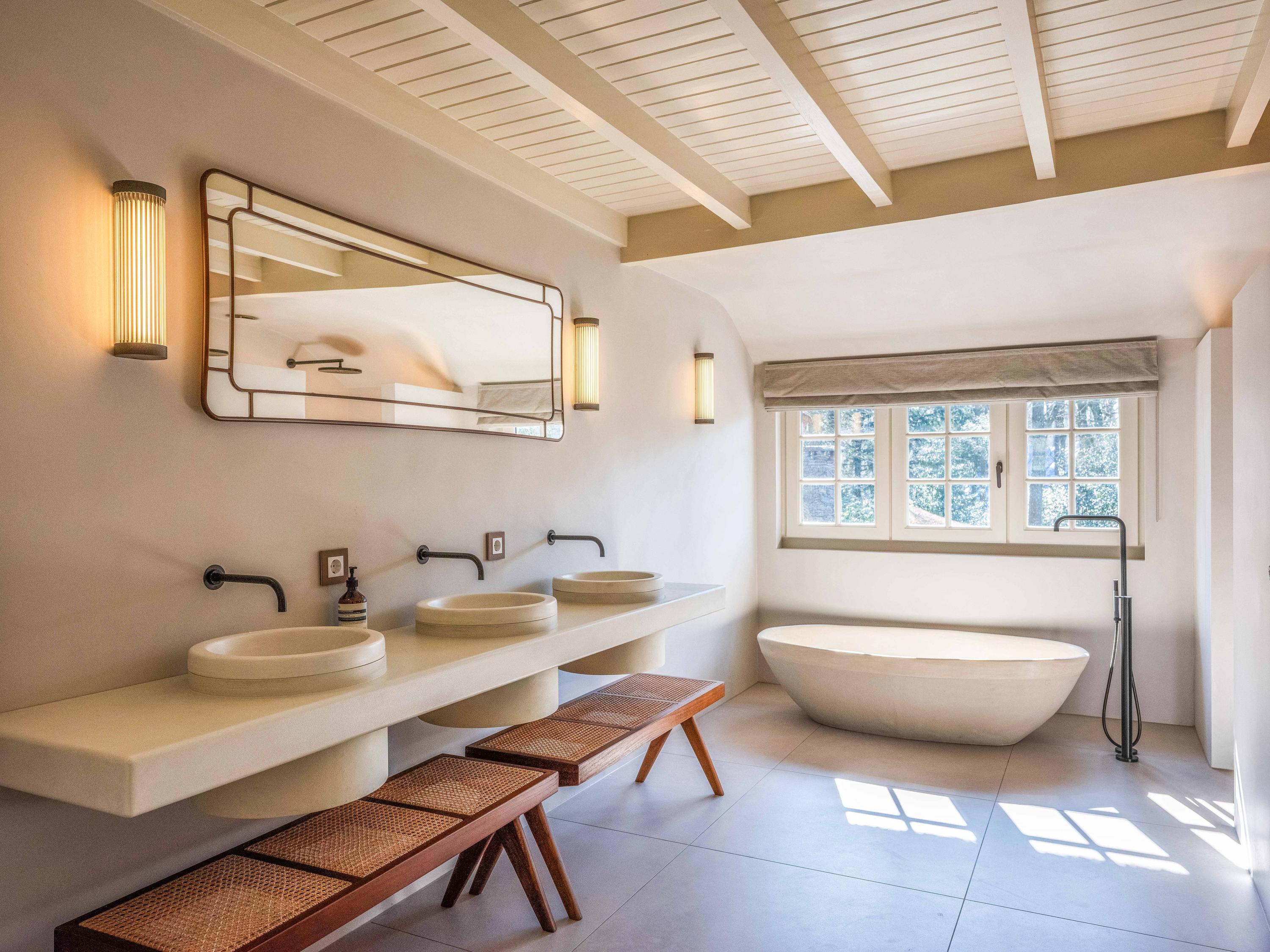 The master bedroom features air conditioning and an en-suite bathroom with a bath, walk-in shower, double washbasin and toilet. There are also several spacious bedrooms, all fitted with air conditioning. The second bathroom is luxuriously appointed and features, amongst other things, a bath, double walk-in shower and washbasins. There is an additional study/guest room with a view of the garden.