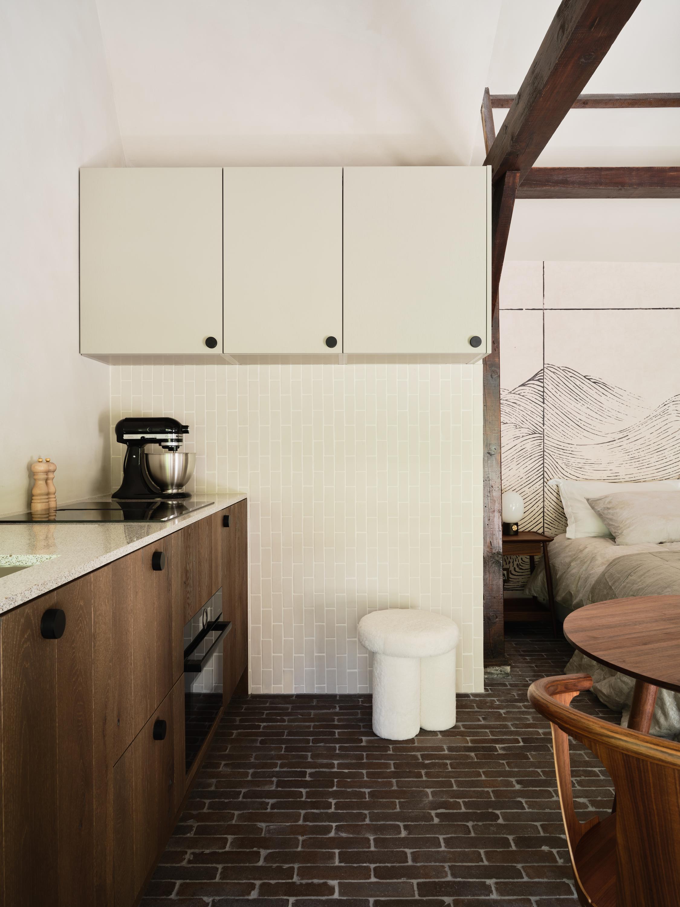The former coach house has been converted into a luxurious, self-contained guest house with recreational facilities. This stylish studio features a living/sleeping area, a modern open-plan kitchen and a bathroom with a walk-in shower and separate toilet, and is also fitted with underfloor heating, a wood-burning stove and air conditioning, ensuring extra comfort.