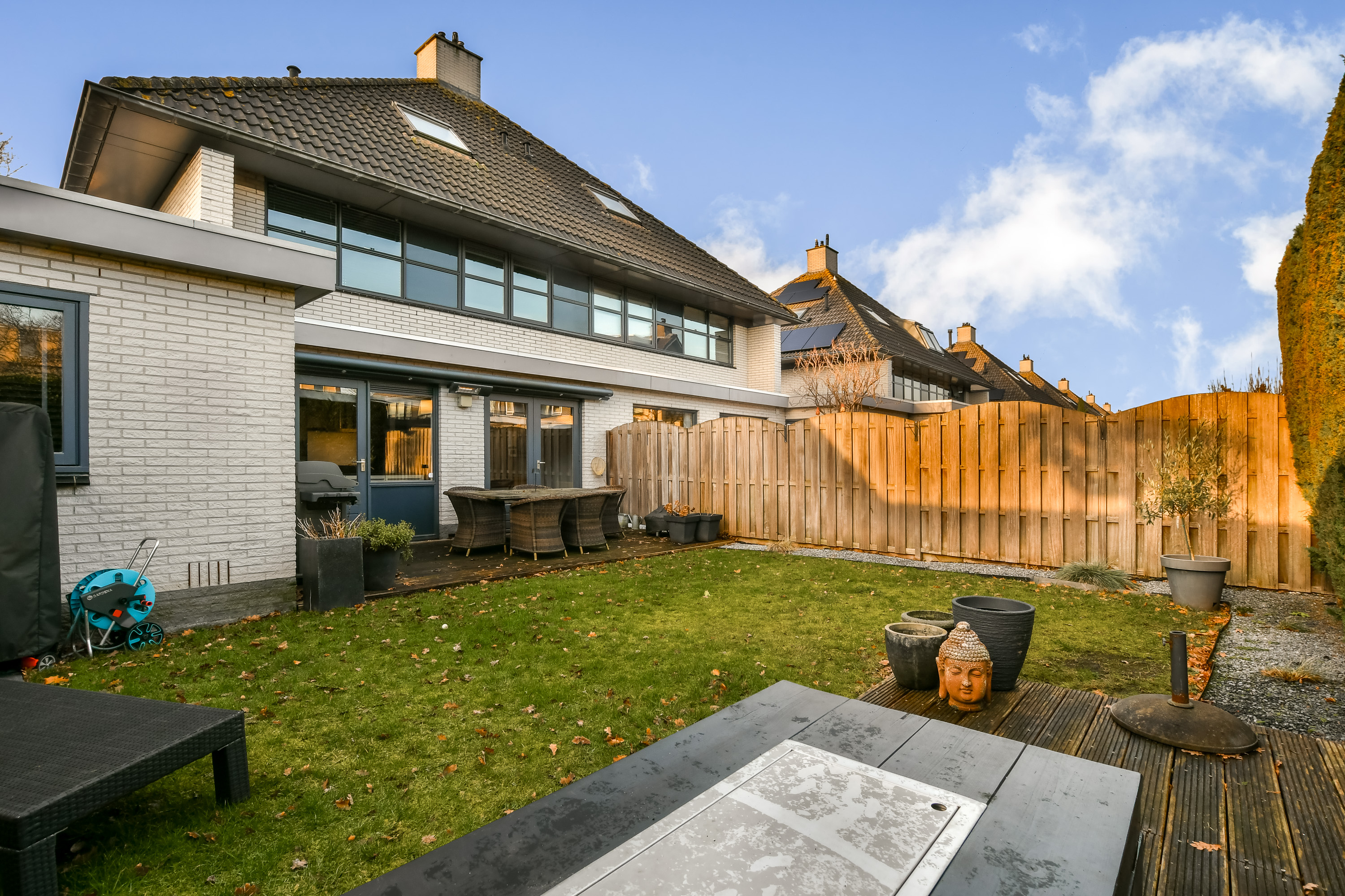Upstairs, bedrooms offer flexibility and comfort, including one with a balcony overlooking the singel. The bathroom is appointed with a bath, shower, toilet, and double basins. Further, insulation features include roof, wall, and floor insulation, and double glazing. Modern facilities such as mechanical ventilation, fibre optic cable, awnings, sliding doors, and a skylight complement energy class B and central heating. This two family house in Bergschenhoek balances privacy, accessibility, and family lifestyle.