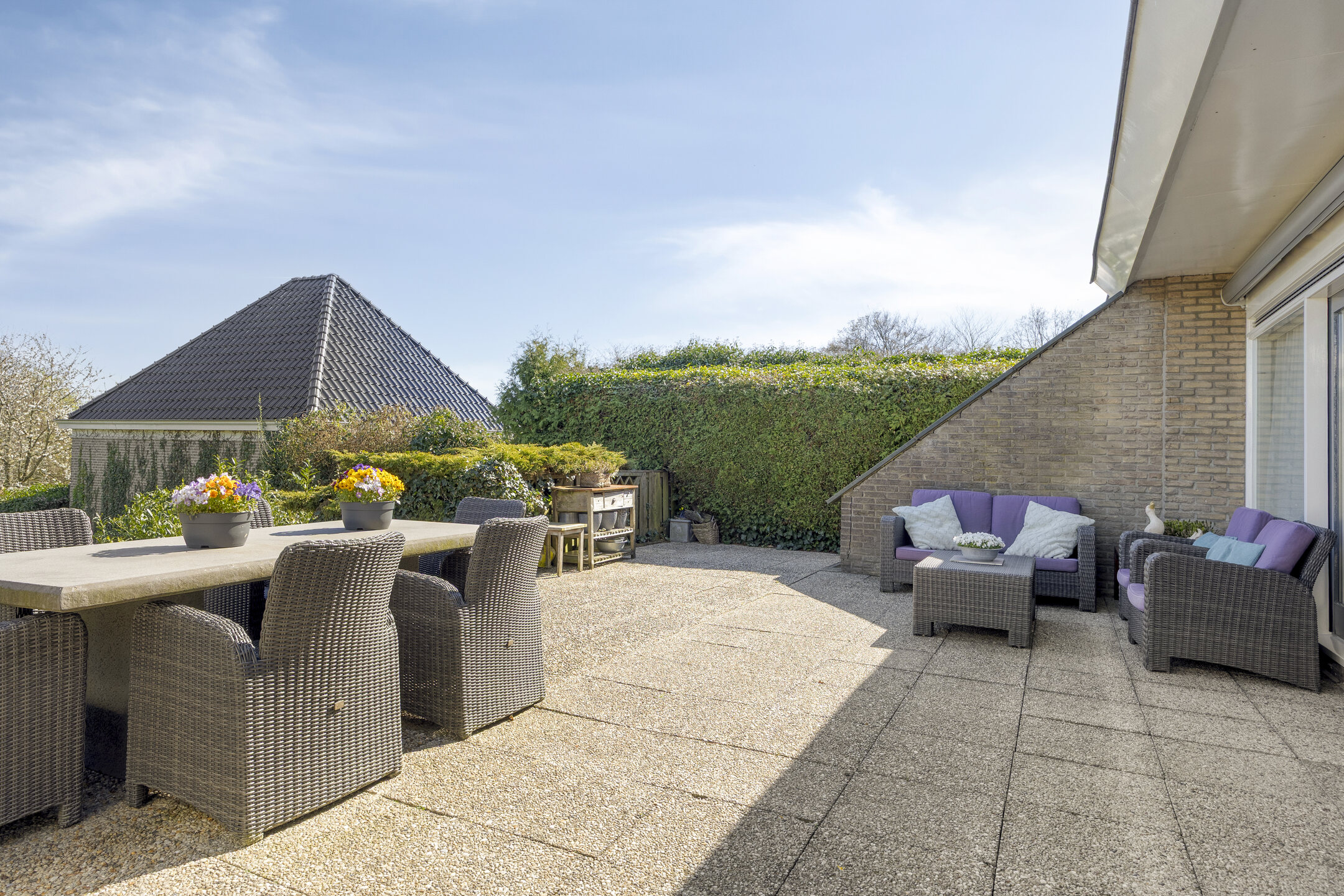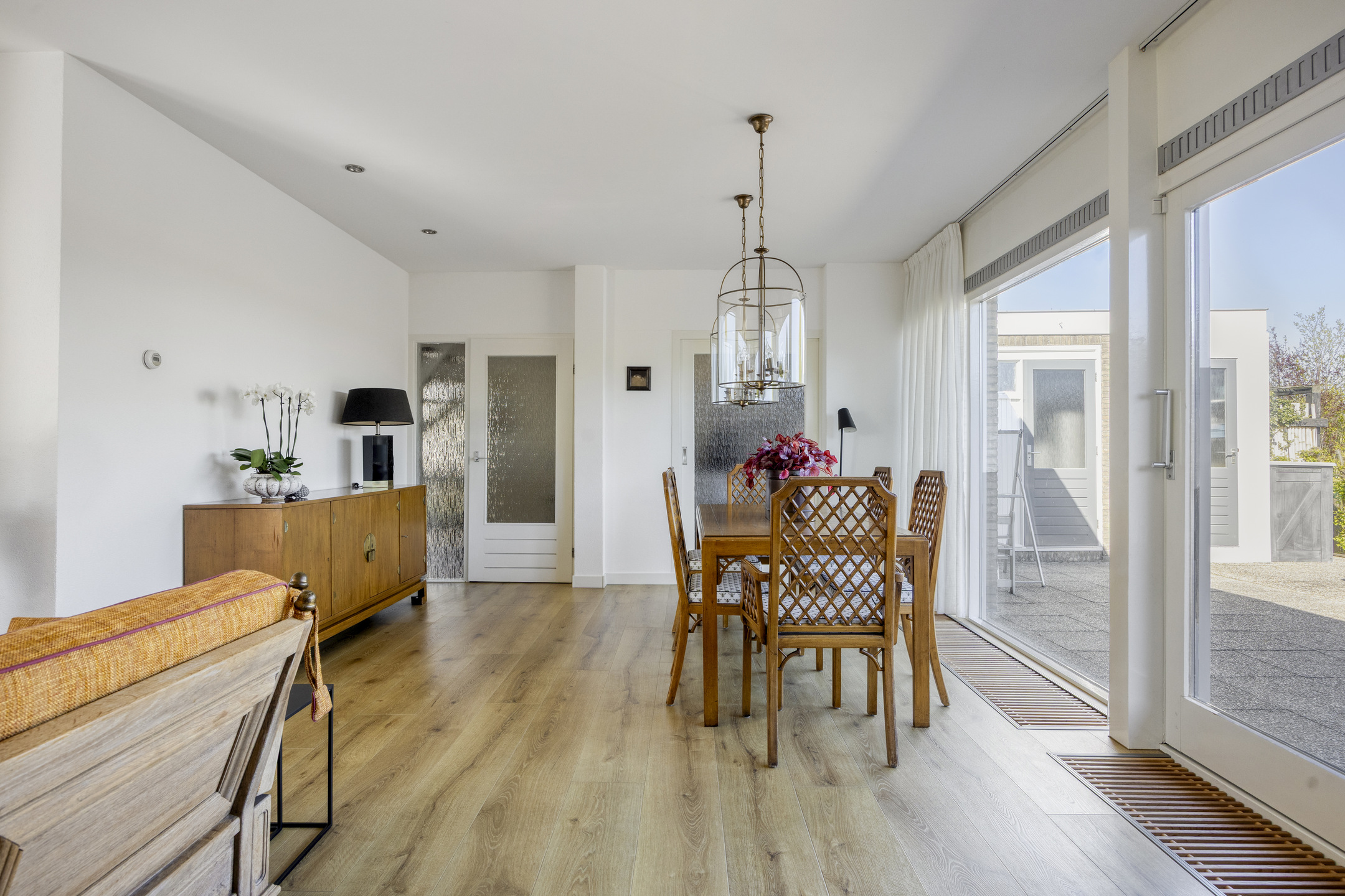 Outdoors, the garden, set across 830 m², is composed for privacy and a sense of natural retreat. Wide sliding doors unite the main living spaces with a deep, sunlit terrace, while automated awnings provide shade as needed. The setting is discreet yet within reach of local amenities, making this detached house Bleiswijk a rare opportunity for those who value space, sunlight, and village access.