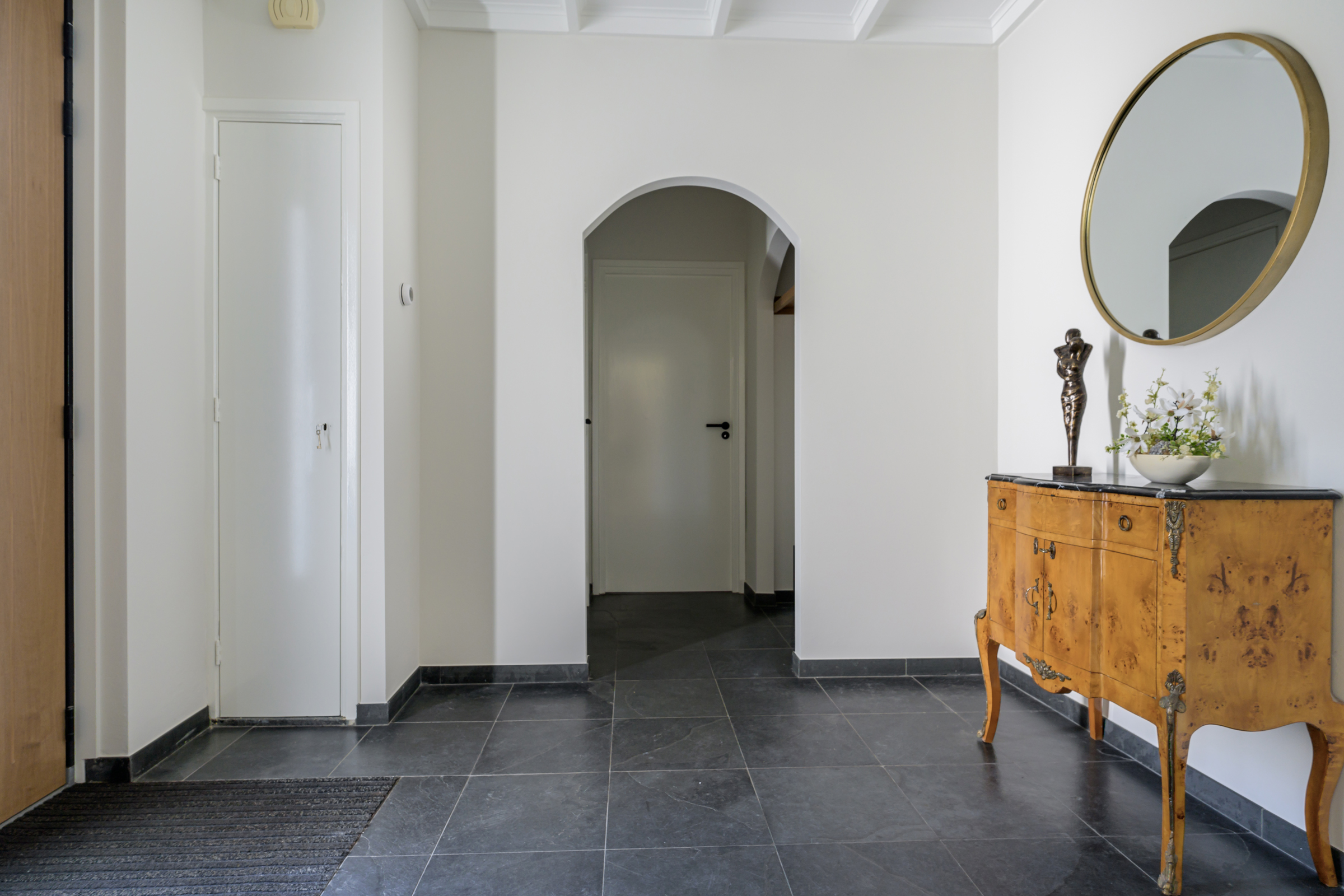 You enter the house through the spacious entrance, which features a slate tile floor. In the hall, you will find the meter cupboard (16 groups + 2 residual current circuit breakers and provisions for an electric car) and the wardrobe.