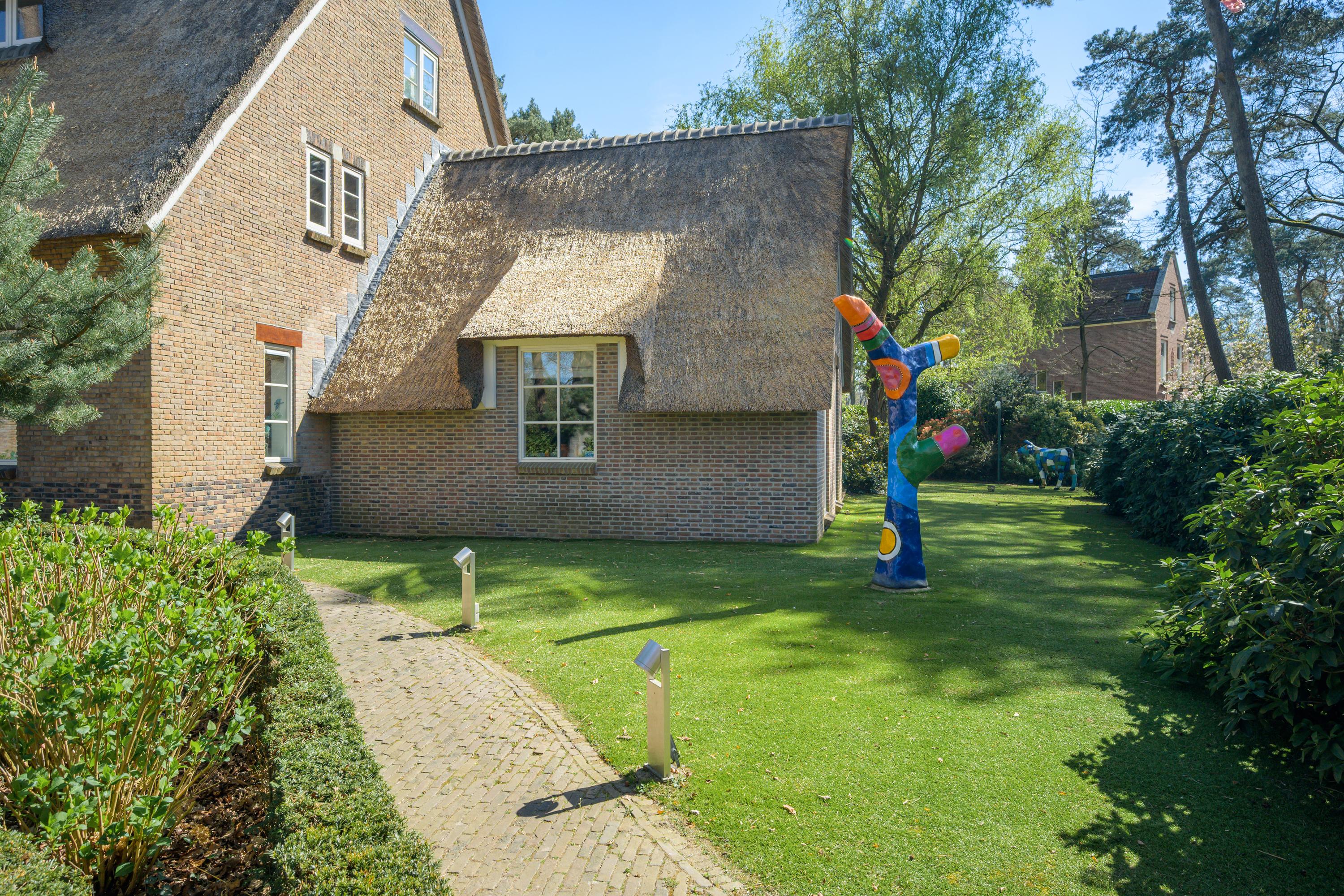Very unique, perfectly maintained, thatched country house with, among other things, a luxurious wellness area with indoor swimming pool and fantastic outdoor space, situated at a prominent point in the middle of the popular and stately residential area "Ruitersbos" with its beautiful trees and within walking distance of the Mastbos.