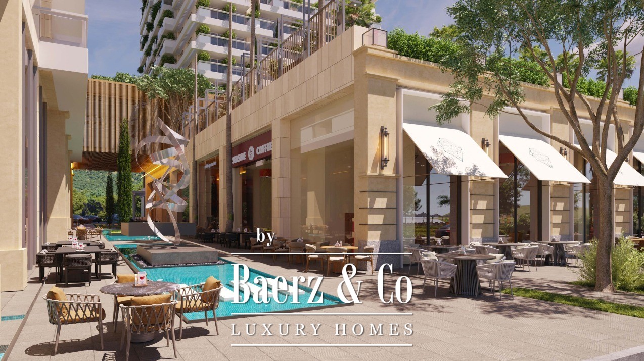 Within the project, residents access an elevated amenity suite: an infinity pool with bar, rooftop venues, private beach and beach bar, wellness centre, gym, concierge, and secure indoor parking. The on-site shopping mall and curated dining complement daily life with subtle luxury.