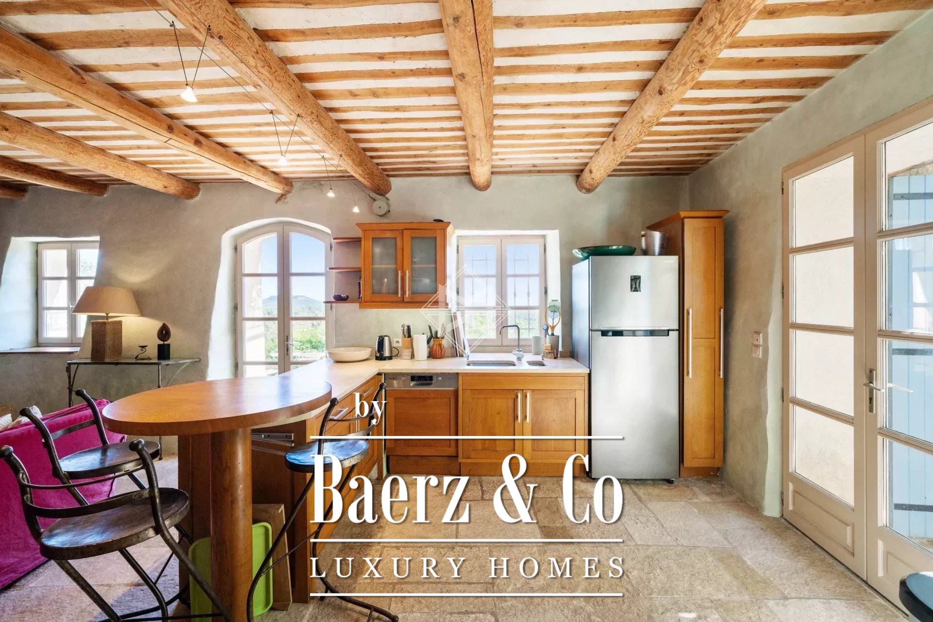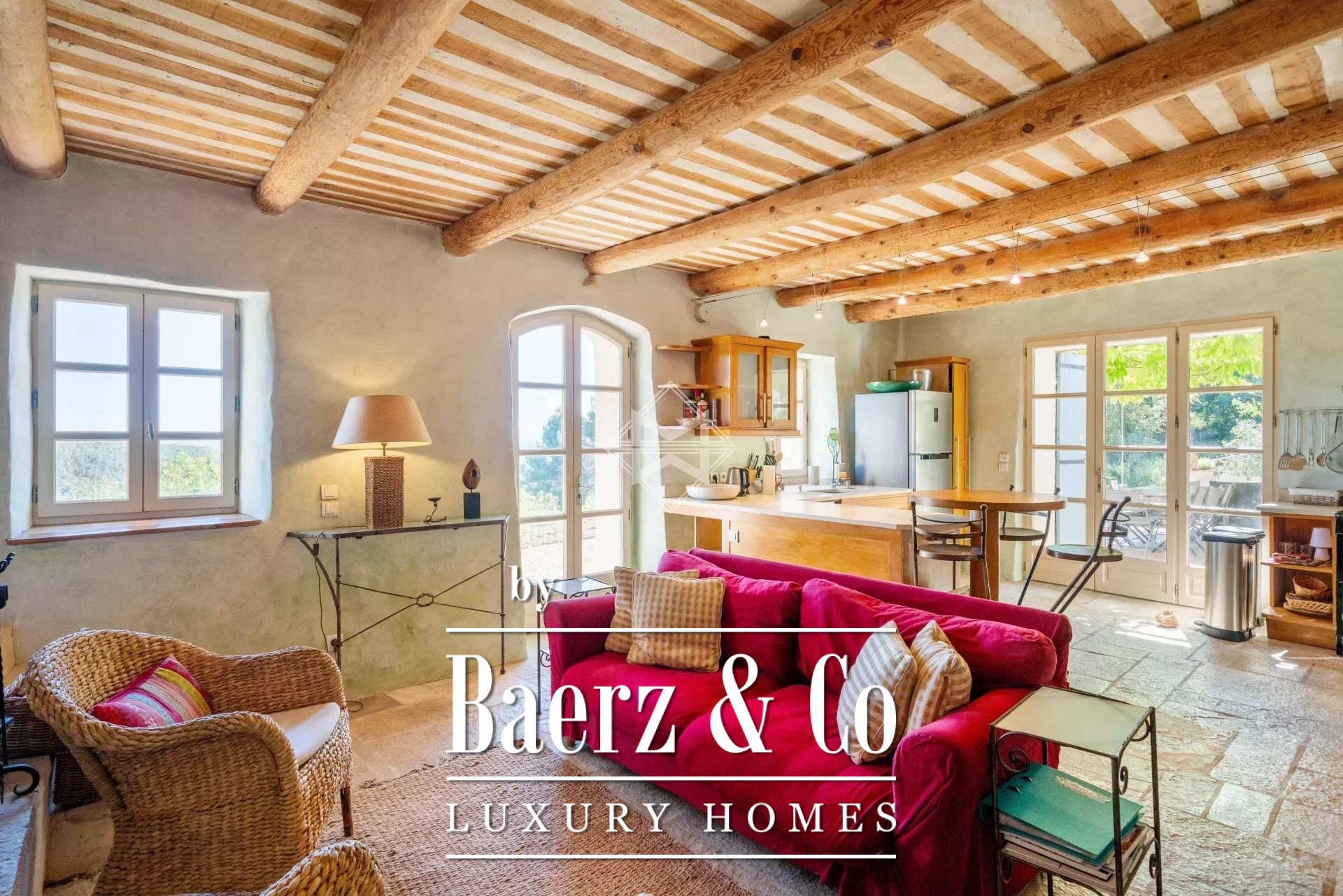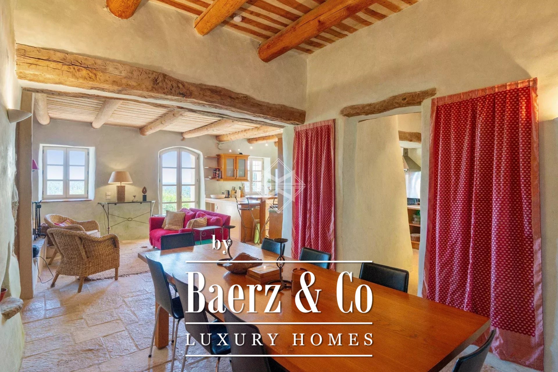 Mas Callas with panoramic countryside views unfolds across 270 m², where a carefully preserved 19th-century mas anchors a privileged and private setting in the heart of nature. This mas Callas property pairs exposed stone walls and wooden beams with considered, contemporary comforts, maintaining a sense of timelessness throughout every space.