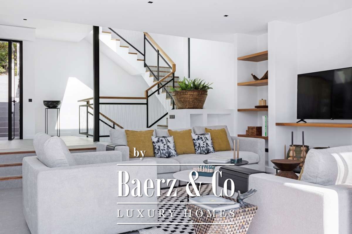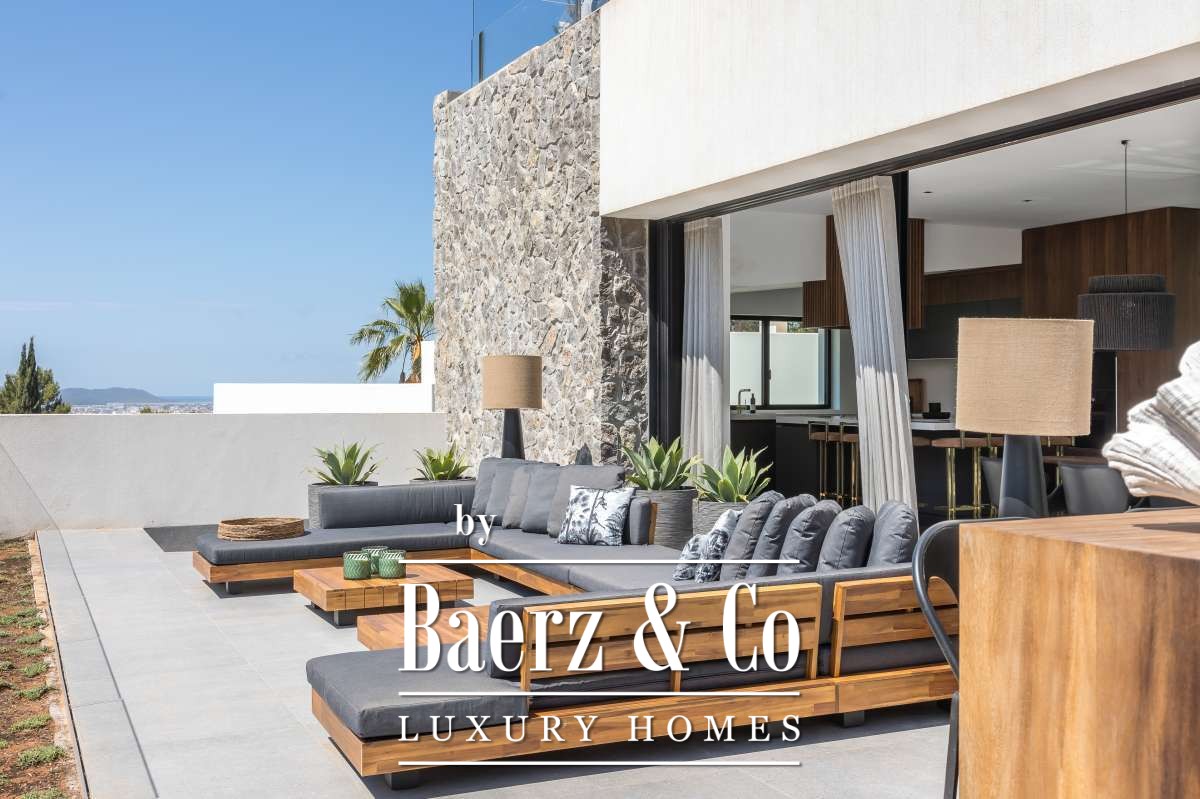 Modern villa Can Furnet invites refined living in one of Ibiza’s most coveted residential enclaves. This elevated home with 426m² of living space, thoughtfully designed by Blakstad, commands spectacular views over Dalt Vila. Set within a tranquil 1,404m² plot, it offers a rare combination of privacy and immediate access to the cultural pulse of Ibiza Town, the fashionable marina of Botafoch, and the sandy stretch of Talamanca Beach, each within minutes’ reach.