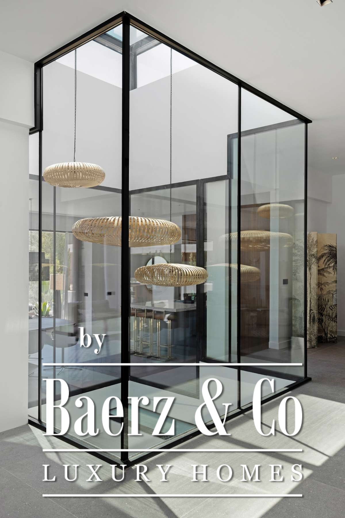 Five generously proportioned en suite bedrooms, all on the lower level, open onto private balconies and terraces, each offering a vantage point over the expansive tropical gardens and the pool. The master suites benefit from tranquil garden views and direct access to the serene pool terrace. Throughout, underfloor heating, air conditioning, double glazing, and a full alarm system ensure comfort and peace of mind.