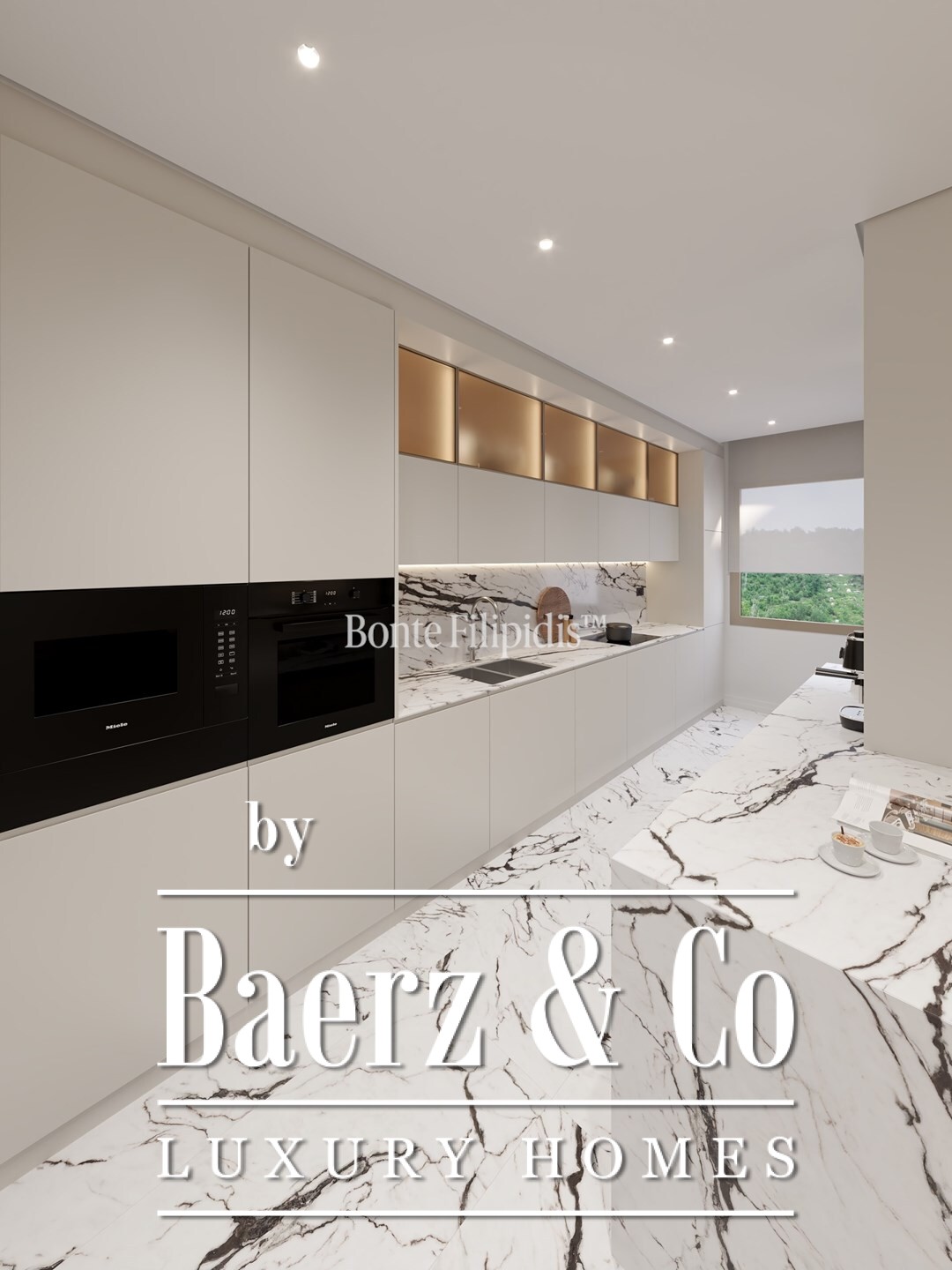 Inside, the apartment unfolds with a clarity of spatial arrangement, dividing social and private zones. The generous living and dining area is bathed in natural light, opening to the balcony for an uninterrupted connection to the cityscape. Marble and bespoke cabinetry define the fully equipped kitchen, lending sophistication to daily rituals.
