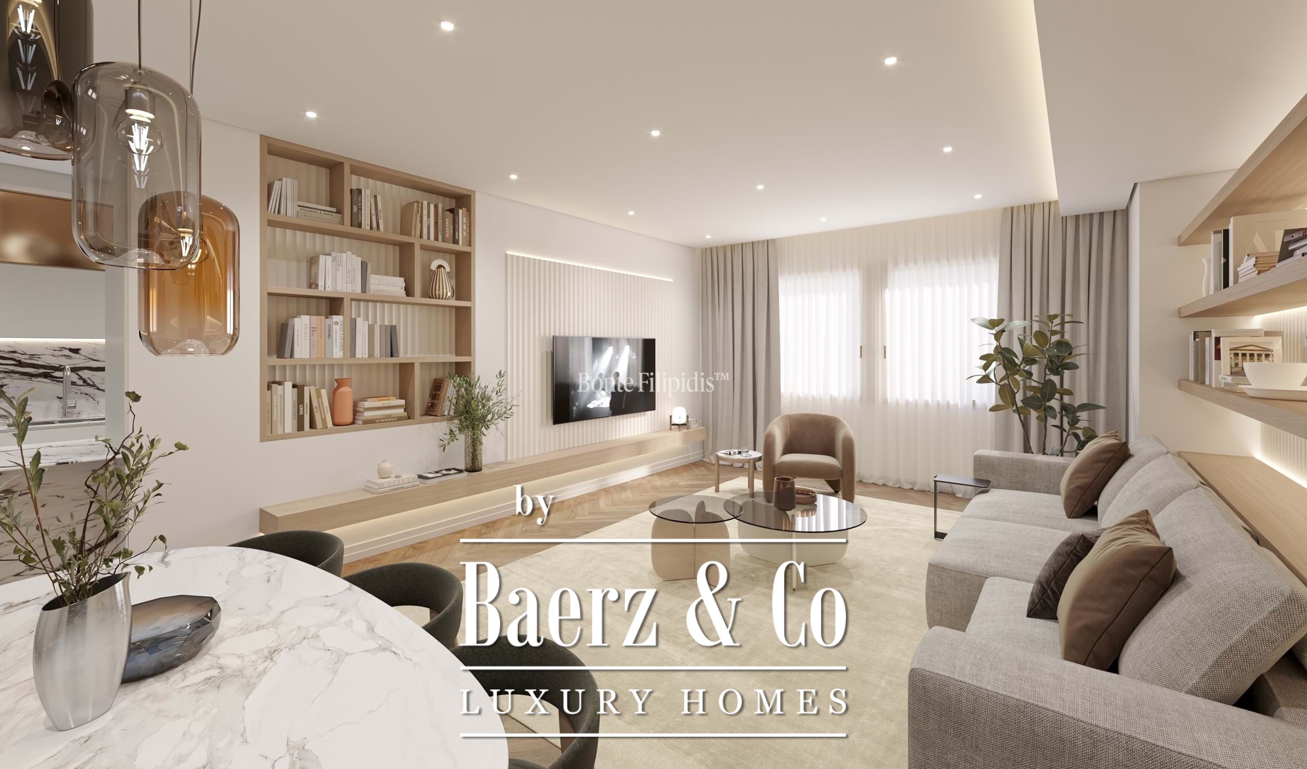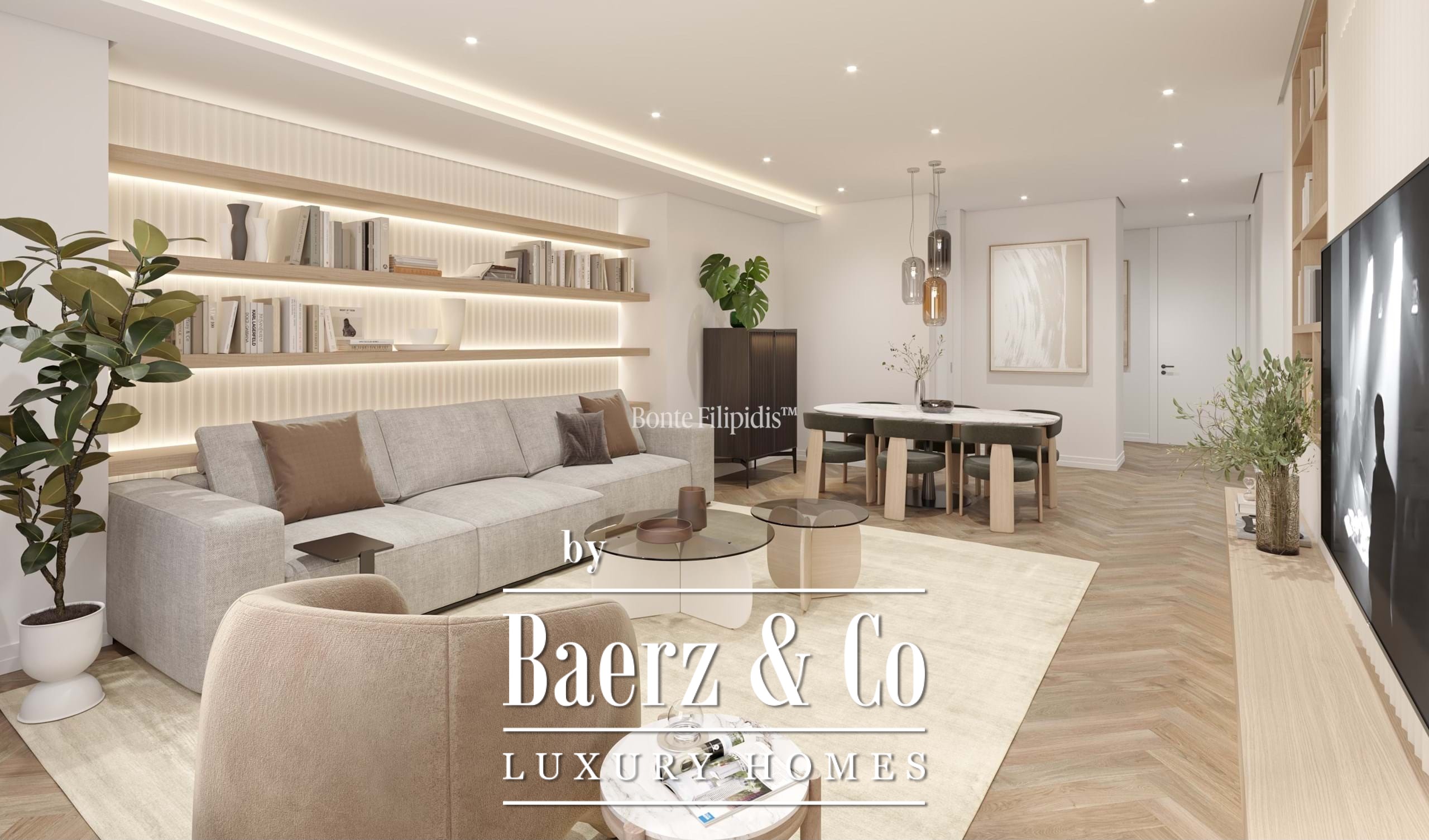 Apartment Cascais in Lighthouse Cascais is a first-floor, two-bedroom residence of 134.01 m² with an 8.3 m² balcony, directly facing Jardim Visconde da Luz. This boutique development offers only eight homes, securing privacy and an understated sense of community in the historic centre of Cascais.