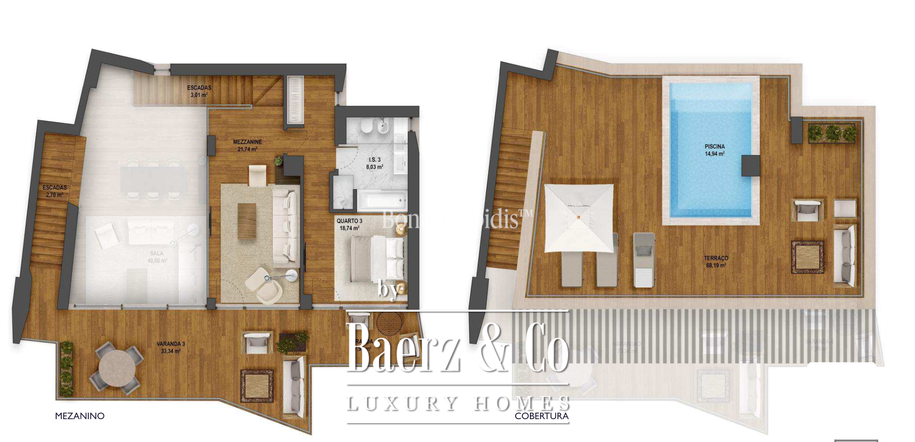 The exclusive rooftop features a spacious deck with a private pool and stunning sea views. The penthouse also includes three parking spaces and a storage room for added convenience. With its central location, this is a rare opportunity to live with all the comforts in the heart of Cascais.