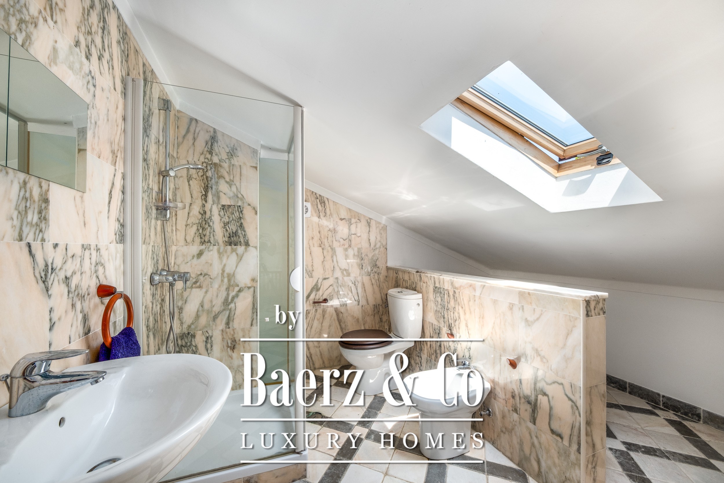 Welcome to this unique historic villa in Parede!Nestled in the heart of Parede – once a quiet fishing village, now a vibrant coastal community between Lisbon and Cascais – this exceptional end of 19th-century residence offers a blend of heritage charm and modern comfort.Meticulously refurbished from the ground up, the home boasts distinctive architectural features and luxurious finishes, bringing character to every corner of the house.As you enter, you’re welcomed by a hall with a staircase leading to the upper floors. To the left, a spacious 30 m² dining room also features a private entrance. It can easily be used as an office/therapy room, allowing clients to be received without disturbing the rest of the home.On the same level, the expansive 70 m² living room invites peaceful evenings by the fireplace or serves as an elegant space for social gatherings. Custom-made mahogany double-glazed windows and underfloor heating beneath beautiful Azul Cascais and Estremoz marble floors ensure comfort during the cooler winter months.The fully equipped kitchen includes a small breakfast nook and opens onto a quiet outdoor dining area.Upstairs on the first floor, you'll find two large bedrooms. The master suite includes a walk-in closet and a private ensuite bathroom. The second bedroom, spacious enough to accommodate its own bathroom and dressing room, also opens onto a generous terrace.The second floor offers three additional