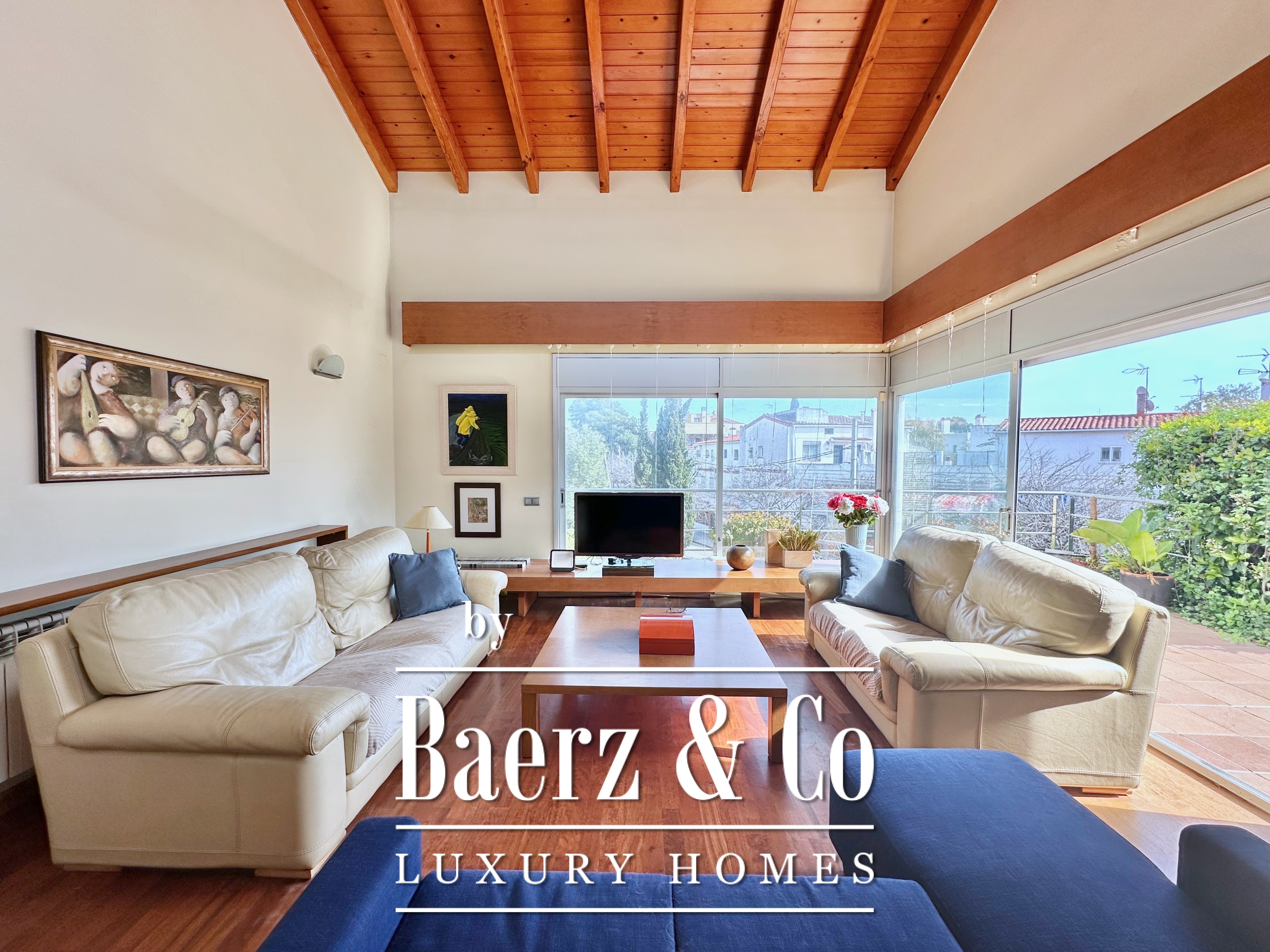 This detached house Castelldefels offers a refined balance of design, light, and privacy. Positioned a short walk from both the town centre and the Mediterranean shore, the property unfolds across a 739 m² corner plot, providing space and seclusion. The residence, built in 2002, encompasses 302 m² distributed over two well-connected levels, each with independent access for versatile living.
