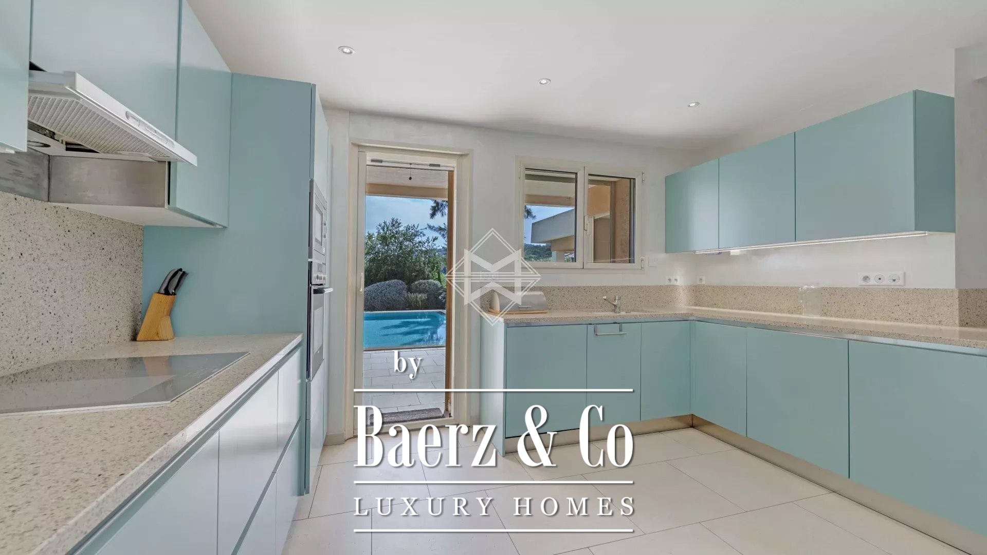 Villa Cavalaire-sur-Mer is set in a discreet and privileged enclave, offering an understated synthesis of architectural clarity and Mediterranean light. An architect-designed residence built in 2013, the villa occupies a level plot of 1,600m² within a secure gated estate, close to the beach yet set apart for privacy. Its 300m² of interior space capture sweeping vistas over the hills and glimpses of the sea, embraced by luminous volumes and soaring ceilings in the main living and dining areas.