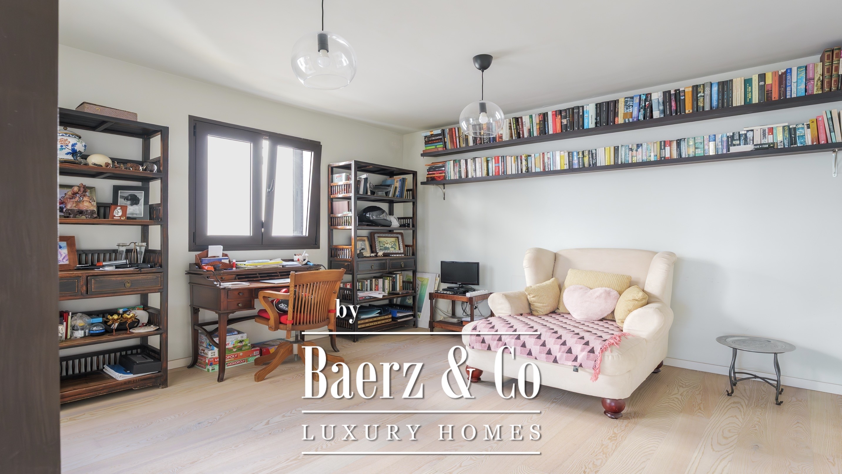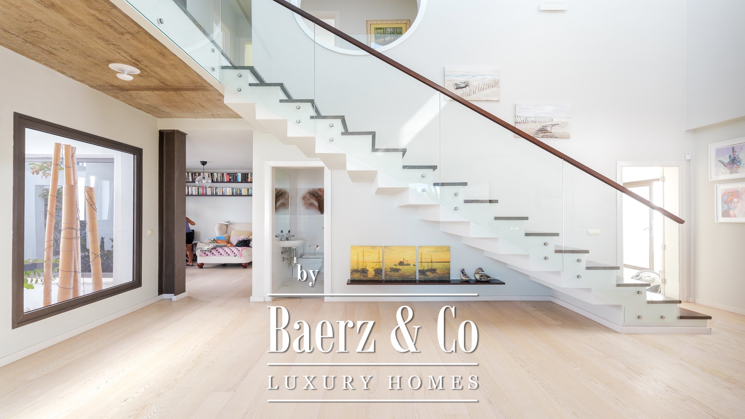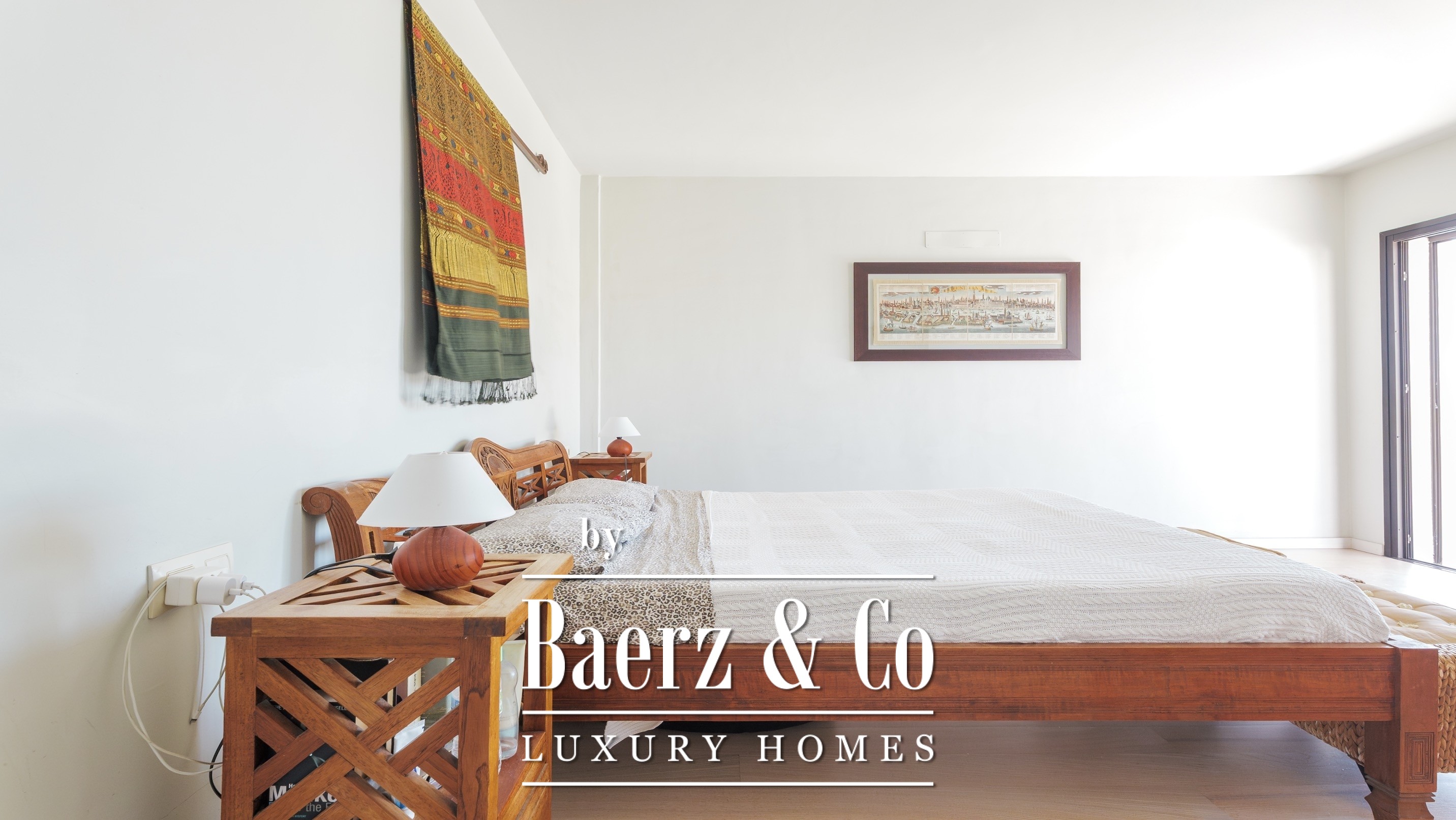 The main level welcomes with a sweeping living room, office, and guest facilities, each space capturing the quality of light and landscape. A fully equipped kitchen extends onto a broad terrace and patio, ideal for quiet gatherings or family moments. Upstairs, four bedrooms benefit from en-suite bathrooms, fitted wardrobes, and their own perspectives on the sea, with the principal suite enjoying a dressing room, large bathroom, and private balcony.