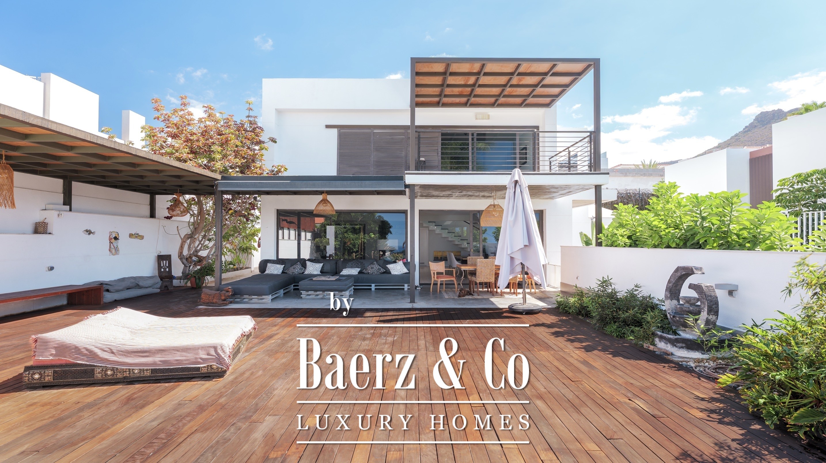 On the lower level, a versatile lounge, laundry, and generous garage provide space for leisure and utility. Located minutes from Costa Adeje International School, X-Sur Shopping Centre, and the Aqua Club Thermal Spa, this property balances refined privacy, access, and lasting value. For those seeking a luxury villa for sale in Costa Adeje, the villa offers an elevated living experience, attentive to every detail.