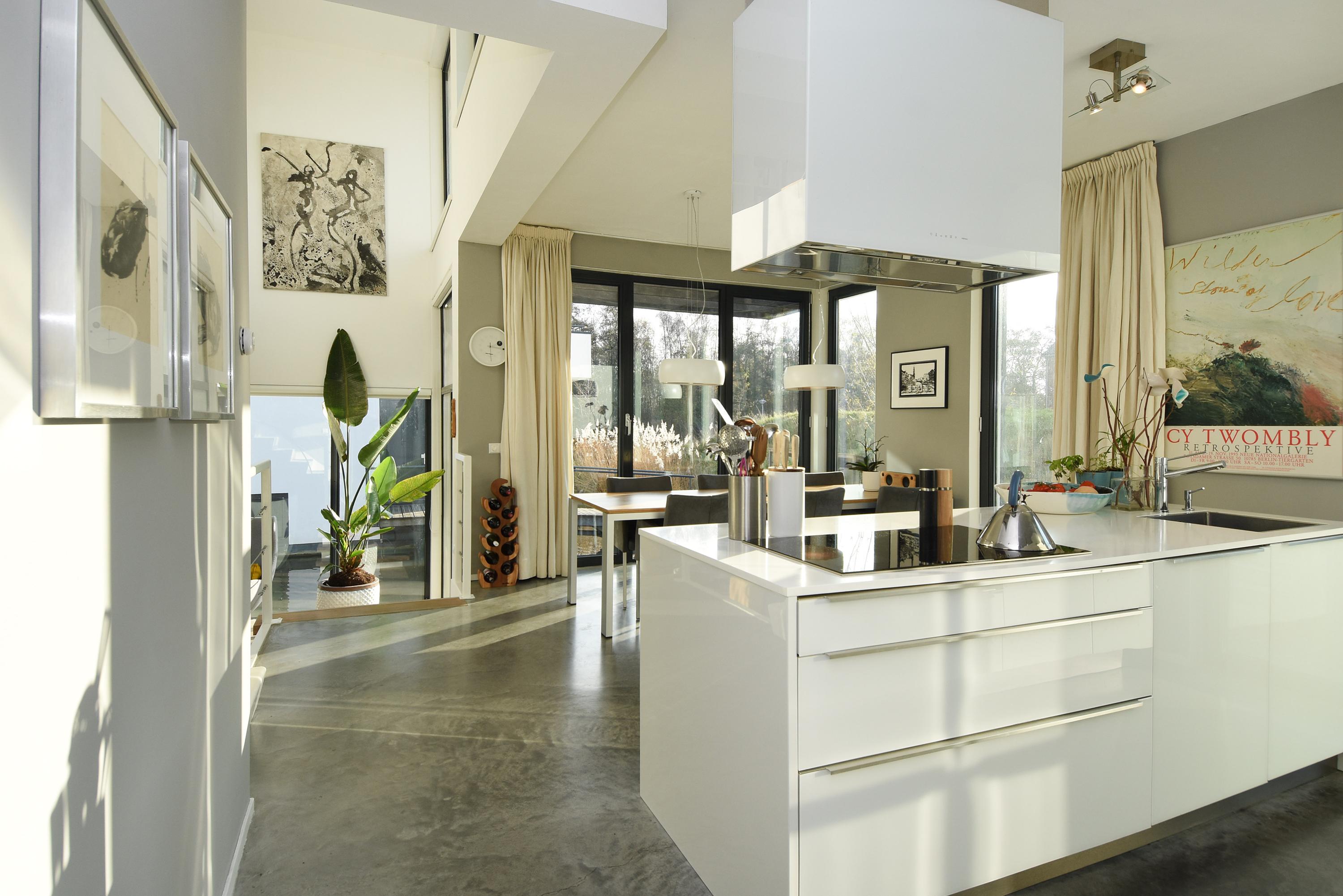 Upon entering this split-level home, you will be completely surprised by the playful layout, the amount of space and the abundant light pouring in through the large, tall windows. The comfortable and stylish kitchen is fully equipped with a cooking island, various built-in appliances and an ideal space for a generous dining area. From here, a short staircase leads down to a bright, cosy and spacious living room with a unique, unobstructed view of the water. Adjacent to the living room, you step directly onto a wonderful sunny floating terrace with an outdoor rain shower and swimming ladder, where you can enjoy the peace, freedom and sun for hours.