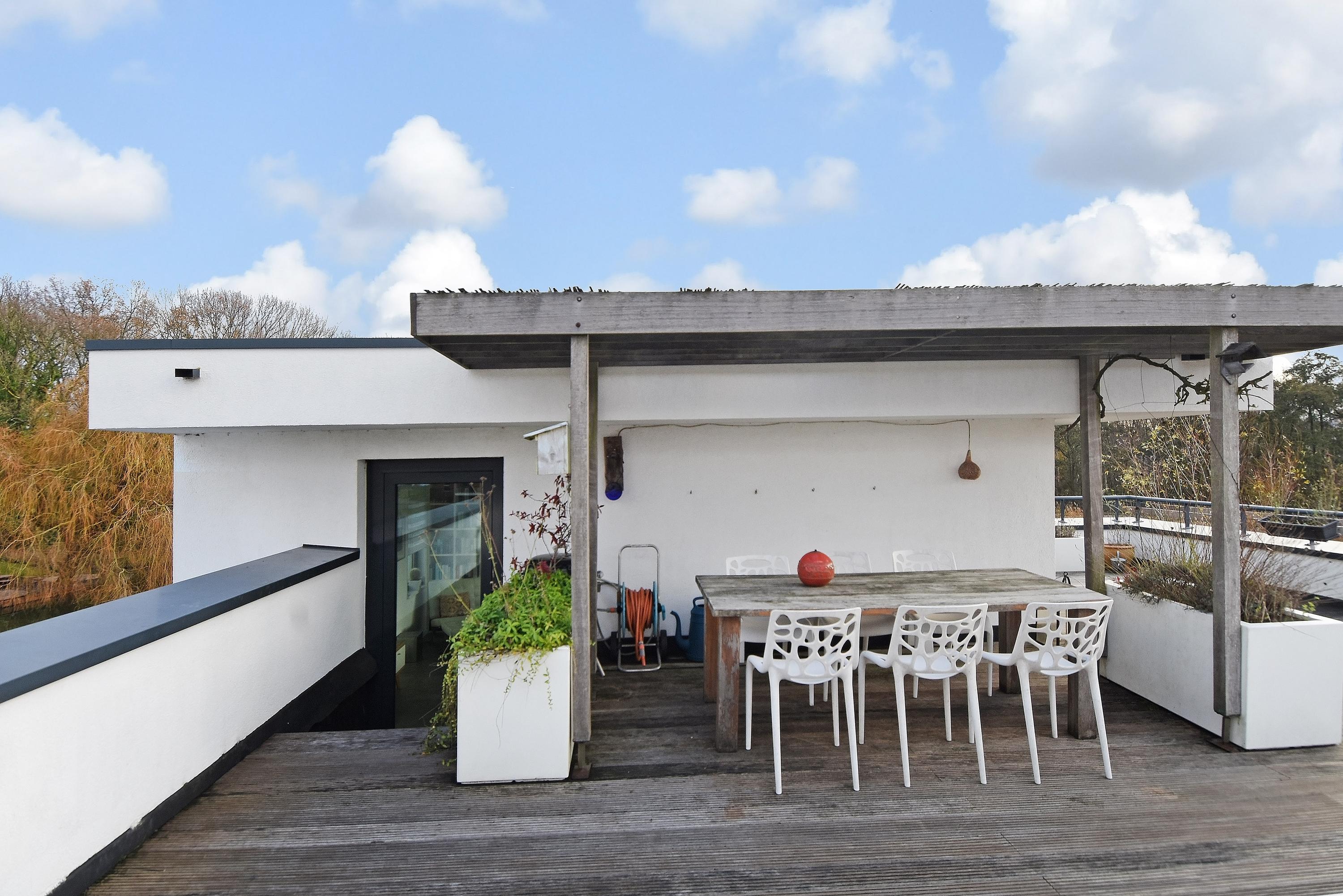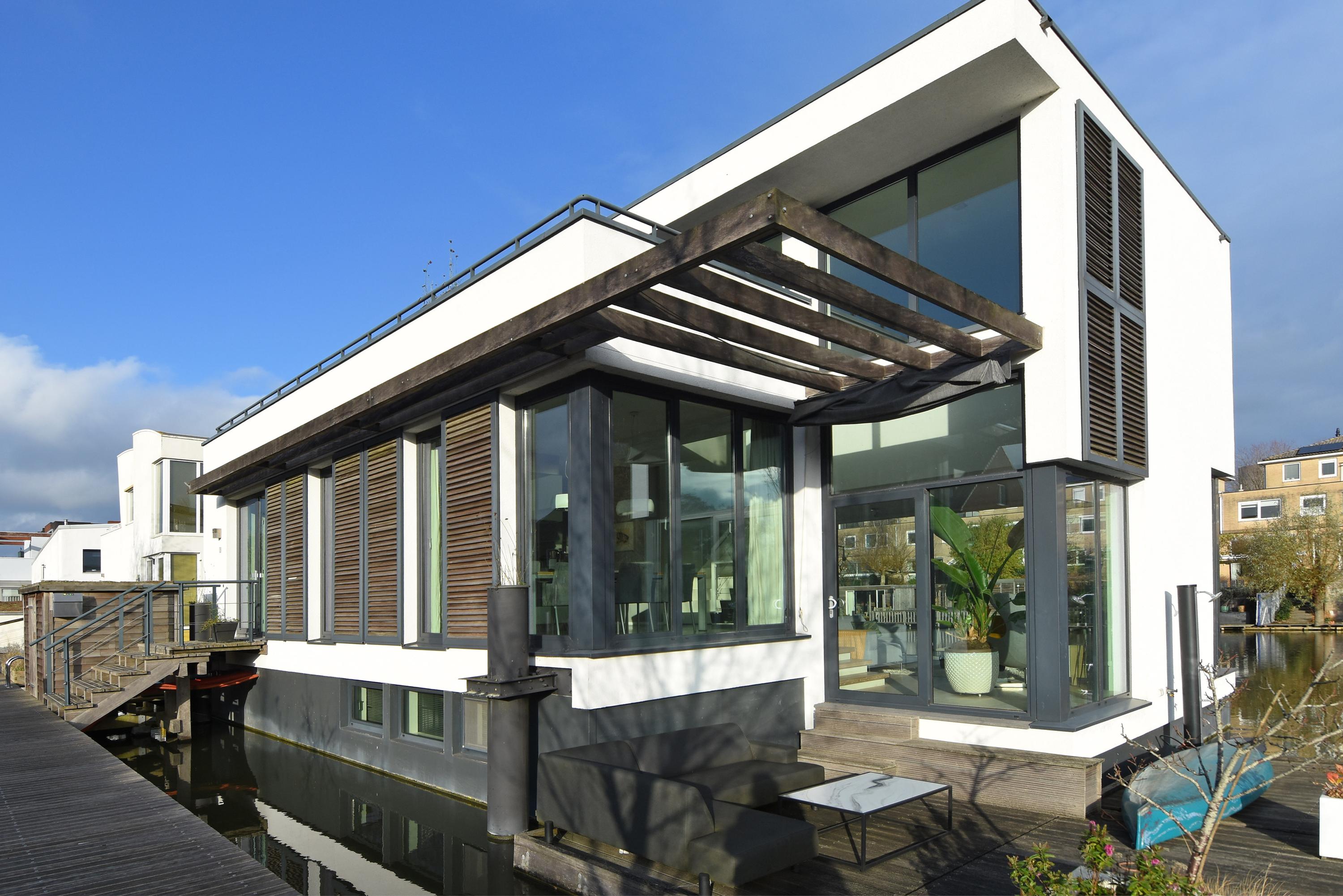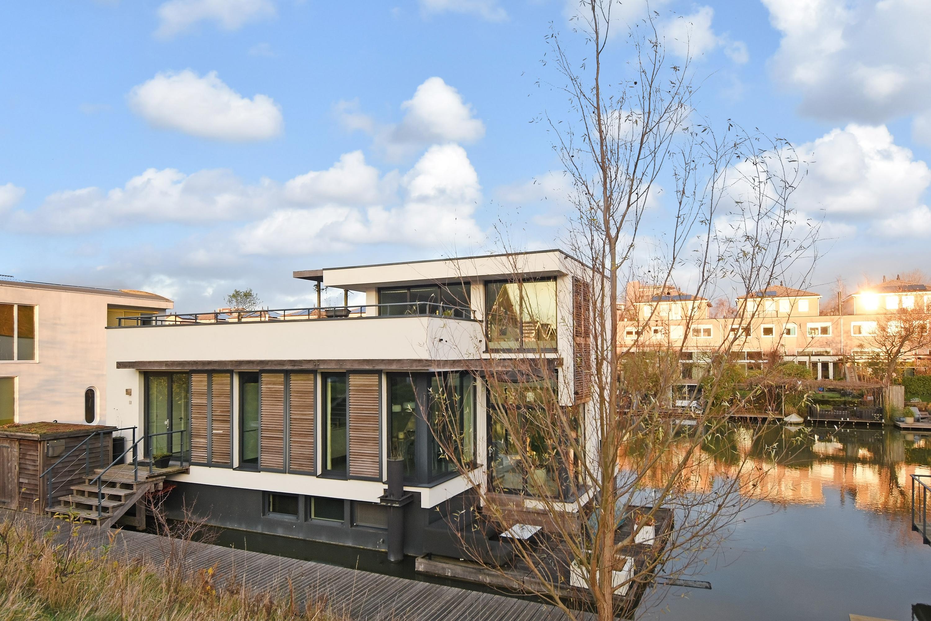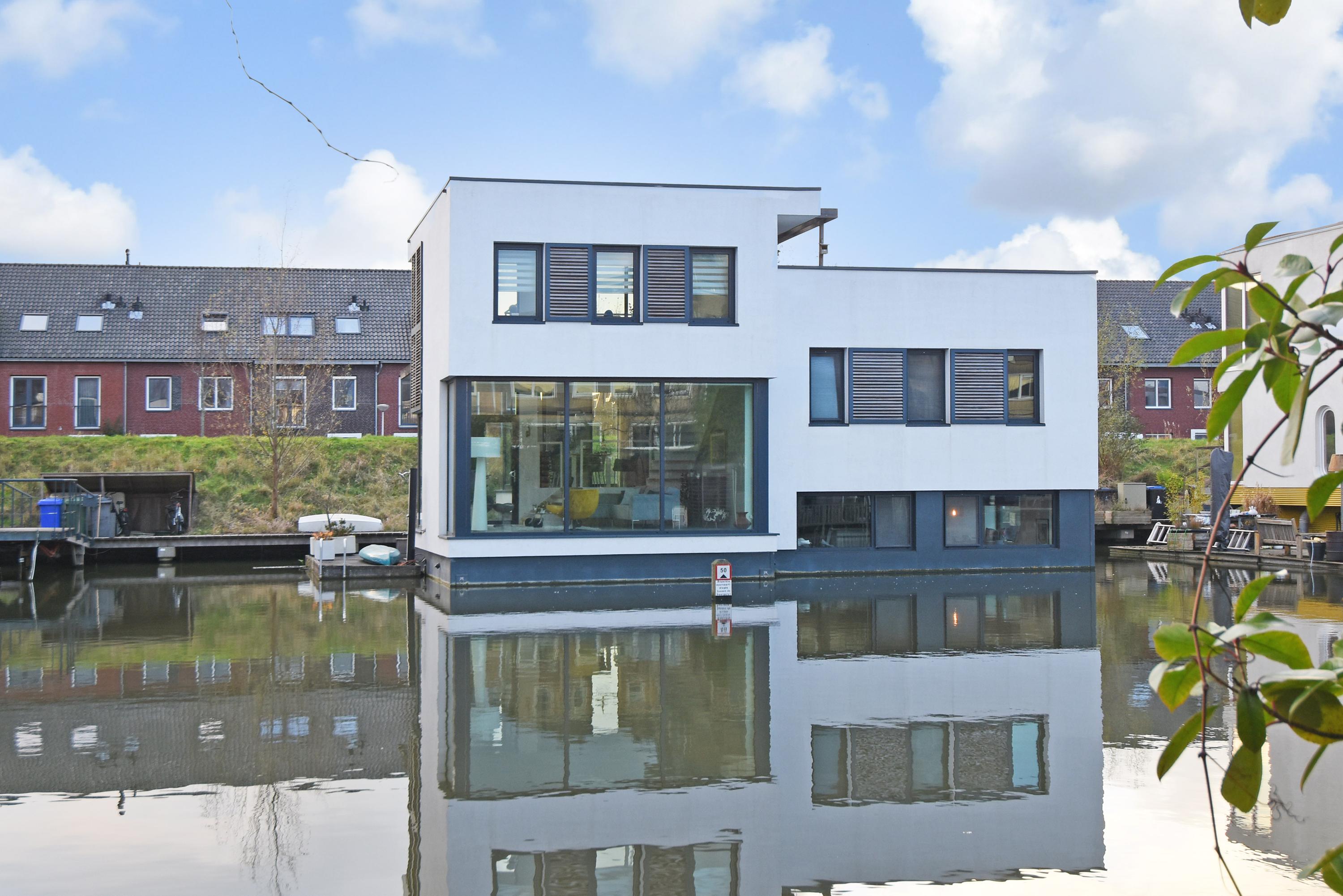 This charming, spacious and energy-efficient floating home is situated in a special location on the water, surrounded by peace and greenery. The property has a luxurious appearance, is well maintained and very practically laid out.