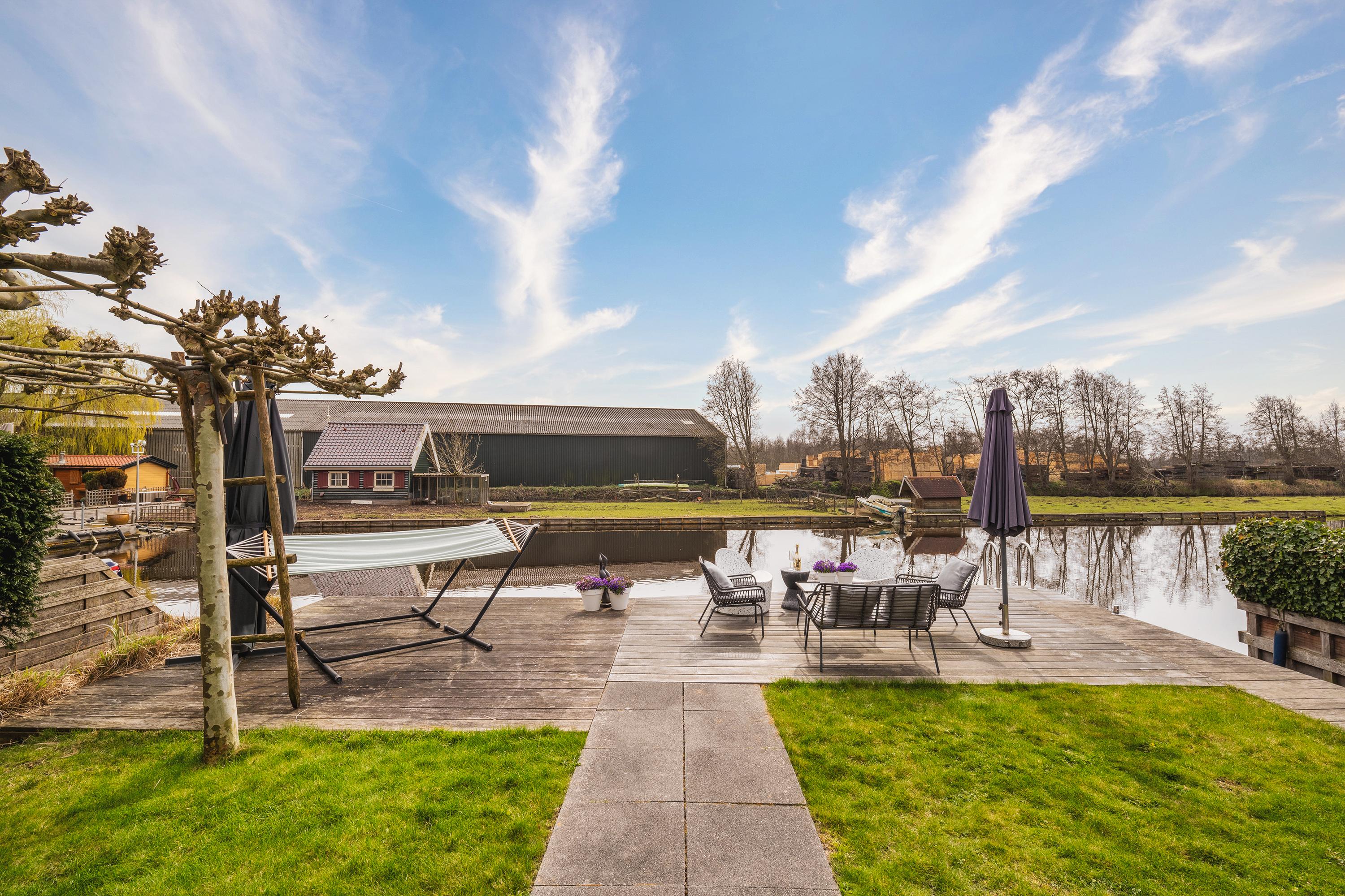 The garden is beautifully landscaped and thoughtfully designed. Located on the water with a private mooring for a sloop and a swimming ladder to enjoy the open water directly. Whether you are lying in the hammock or sitting on the terrace by the water, the view of the water and Het Twiske never gets boring. The garden has drip irrigation for optimal watering and atmospheric lighting with 12V spots. Under the canopy with louvered tilting roof and glass sliding doors (with integrated drainage function), you can enjoy it all year round.