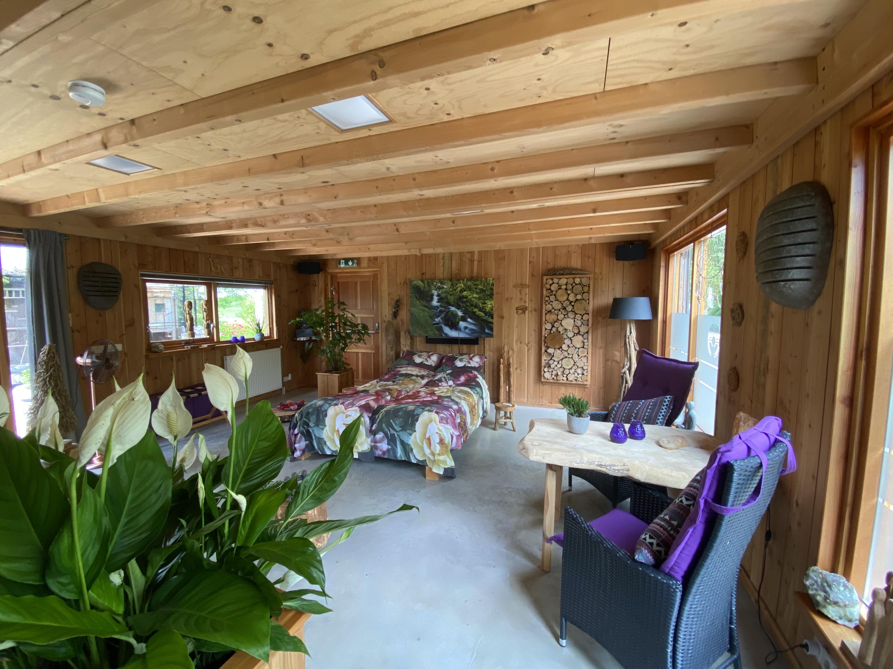 Multifunctional and fully insulated outbuilding from 2016 with full amenities suitable for guest accommodation, B&B, independent office/practice/workspace, etc. Layout as follows:
