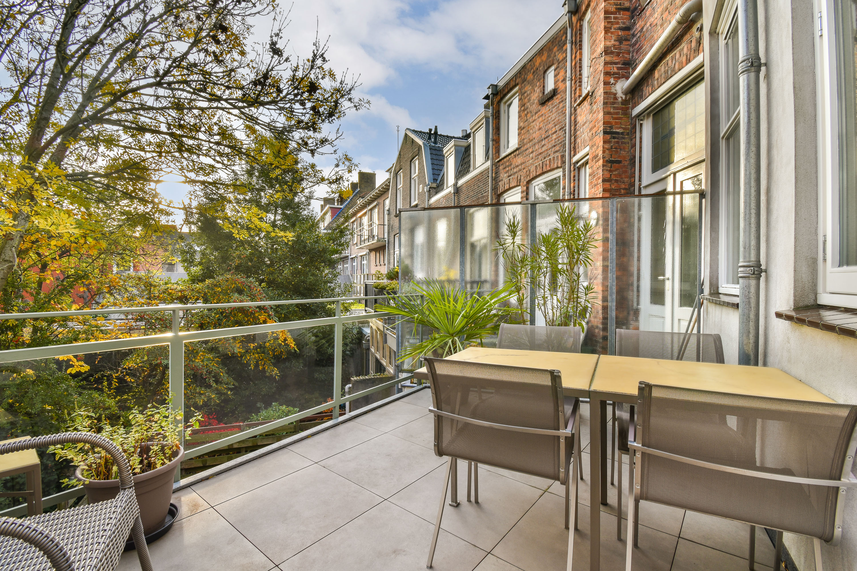 An intimate, east-facing terrace—perfect for enjoying a morning coffee while overlooking the mature greenery and the historic city centre.