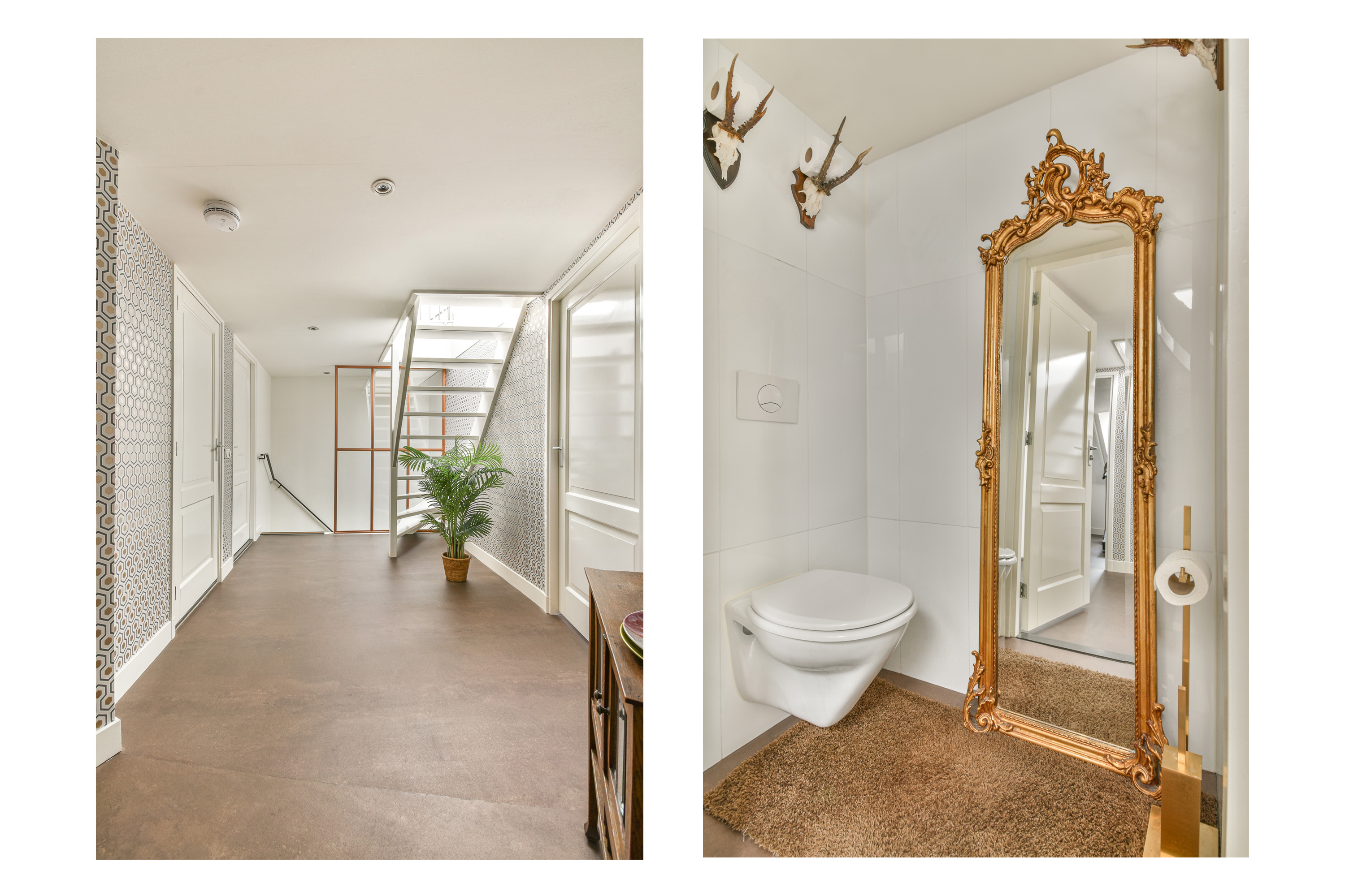 A spacious entrance hall on the ground floor provides a refined welcome and grants access to the staircase leading to the main living level.