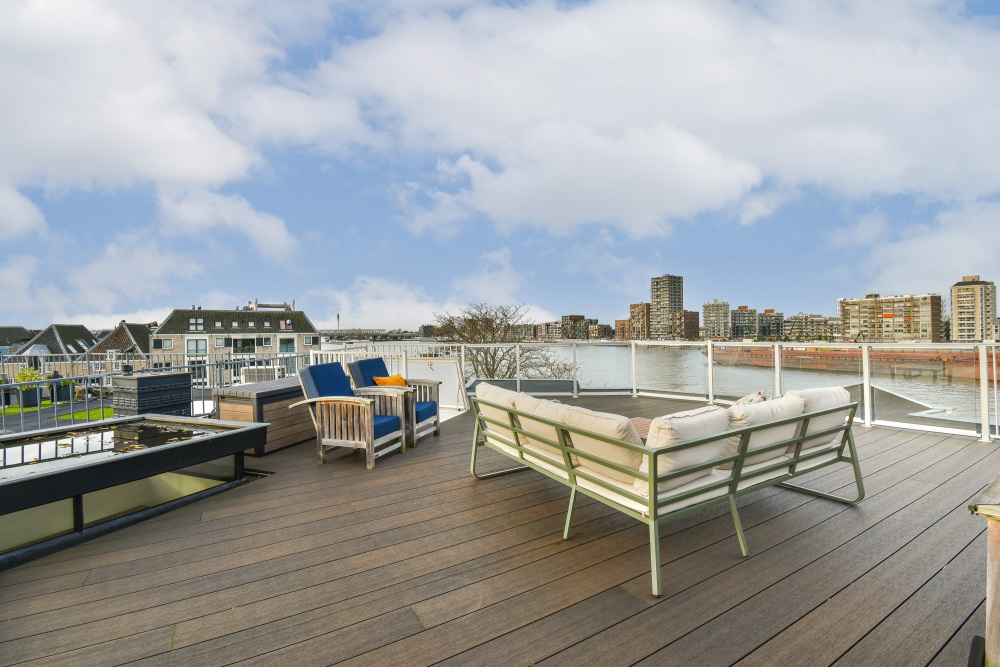 Words scarcely do justice to the panoramic view from this extraordinary terrace: the river’s expanse, the superb sun orientation, and the magnificent skyline of Dordrecht’s historic inner city form a truly unforgettable setting. This is a place that must be experienced in person.